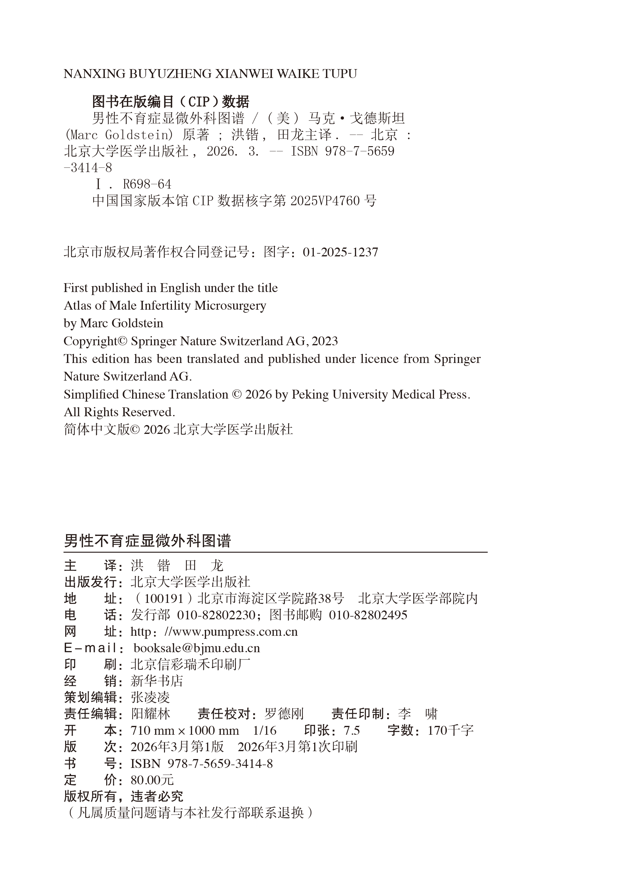 男性不育症显微外科图谱 洪锴 田龙 主译 北医社
