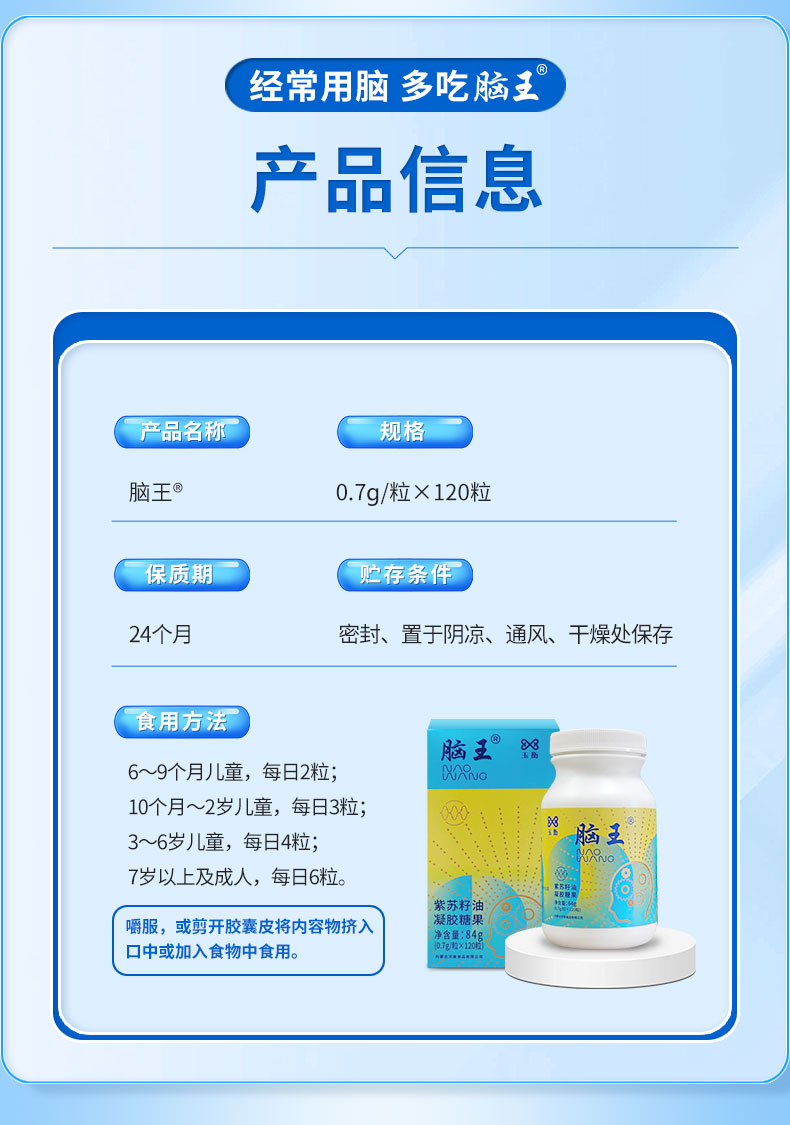脑王大脑营养青少年孩子记忆力无腥味食用方便120粒
