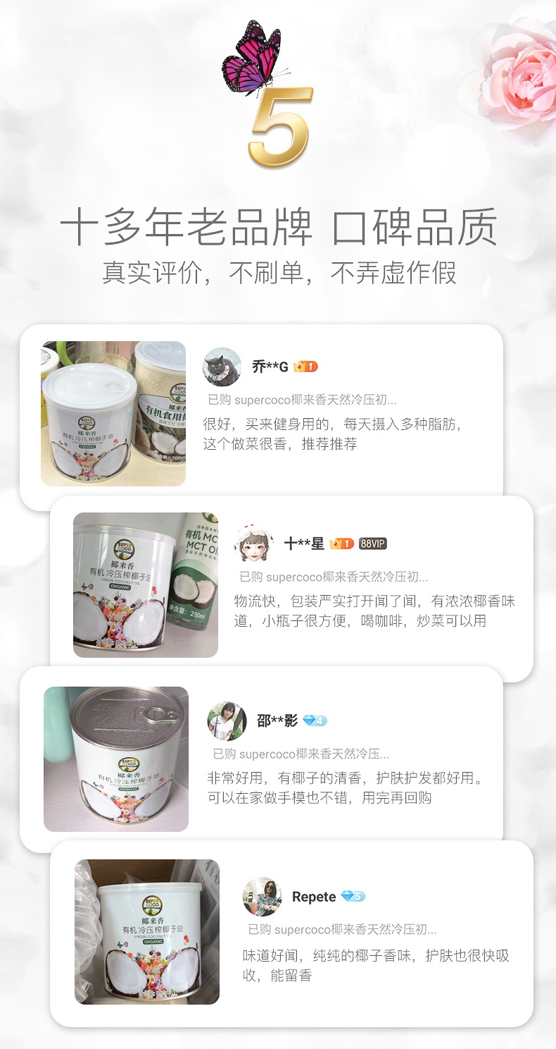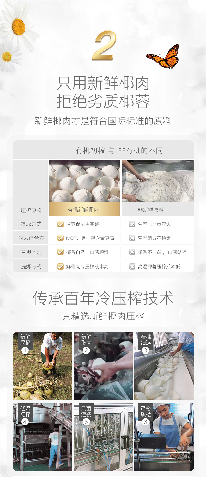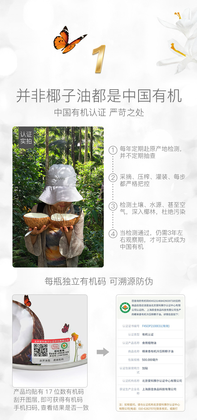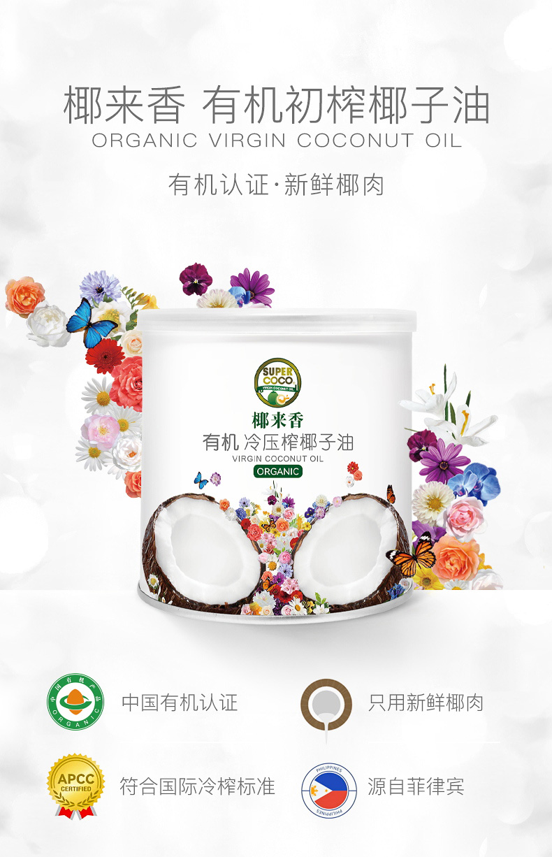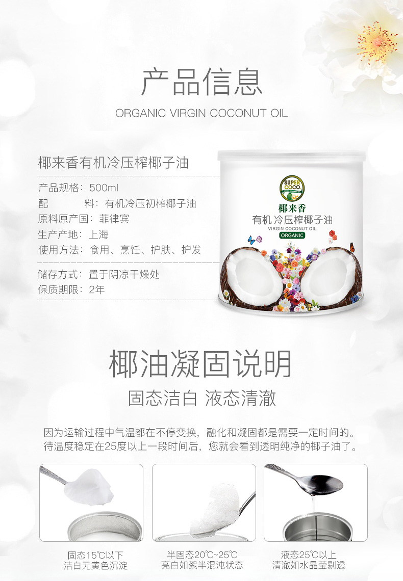 【椰来香】菲律宾进口原料 有机冷压榨椰子油500ml 有椰香 烹饪食用油炒菜