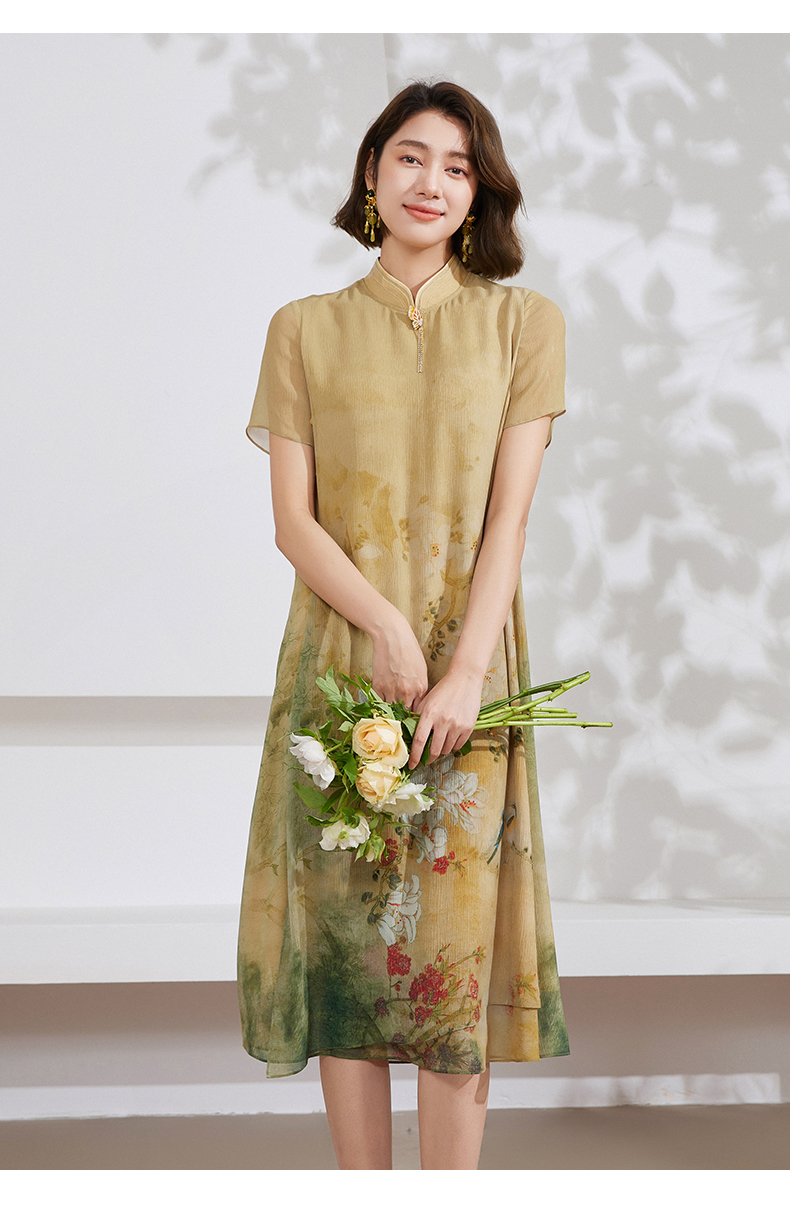 乔万尼真丝连衣裙100%桑蚕丝新中式国风设计EM2E778