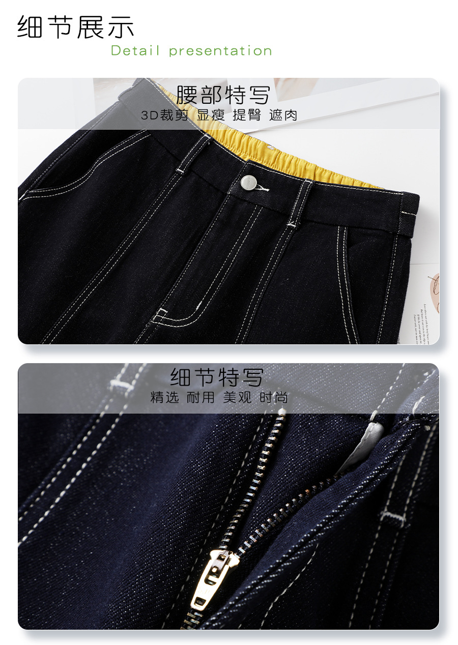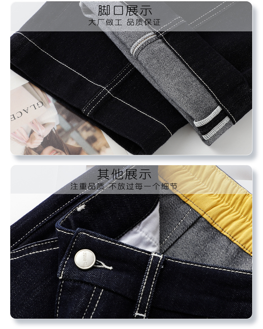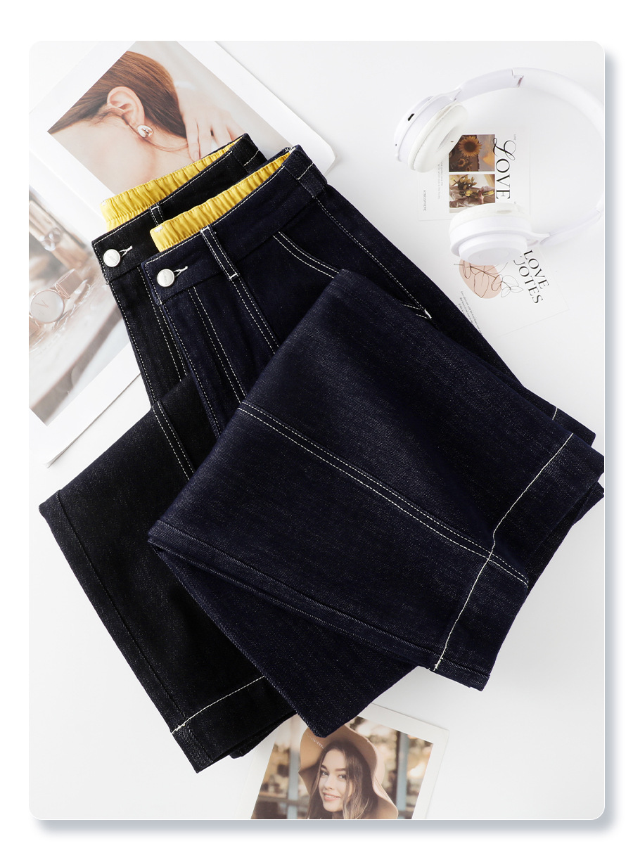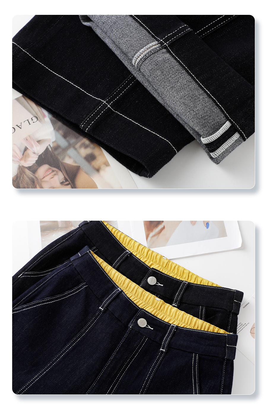 丁摩 丹宁蓝哈伦牛仔裤女春秋季高腰显瘦窄版九分弯刀裤5ZF-87002