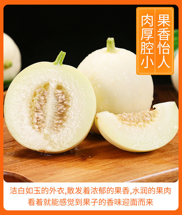 【产品规格】白皮阎良甜瓜:5斤彩箱装(约4-6枚左右),9斤家庭装(约6-8枚左右)。