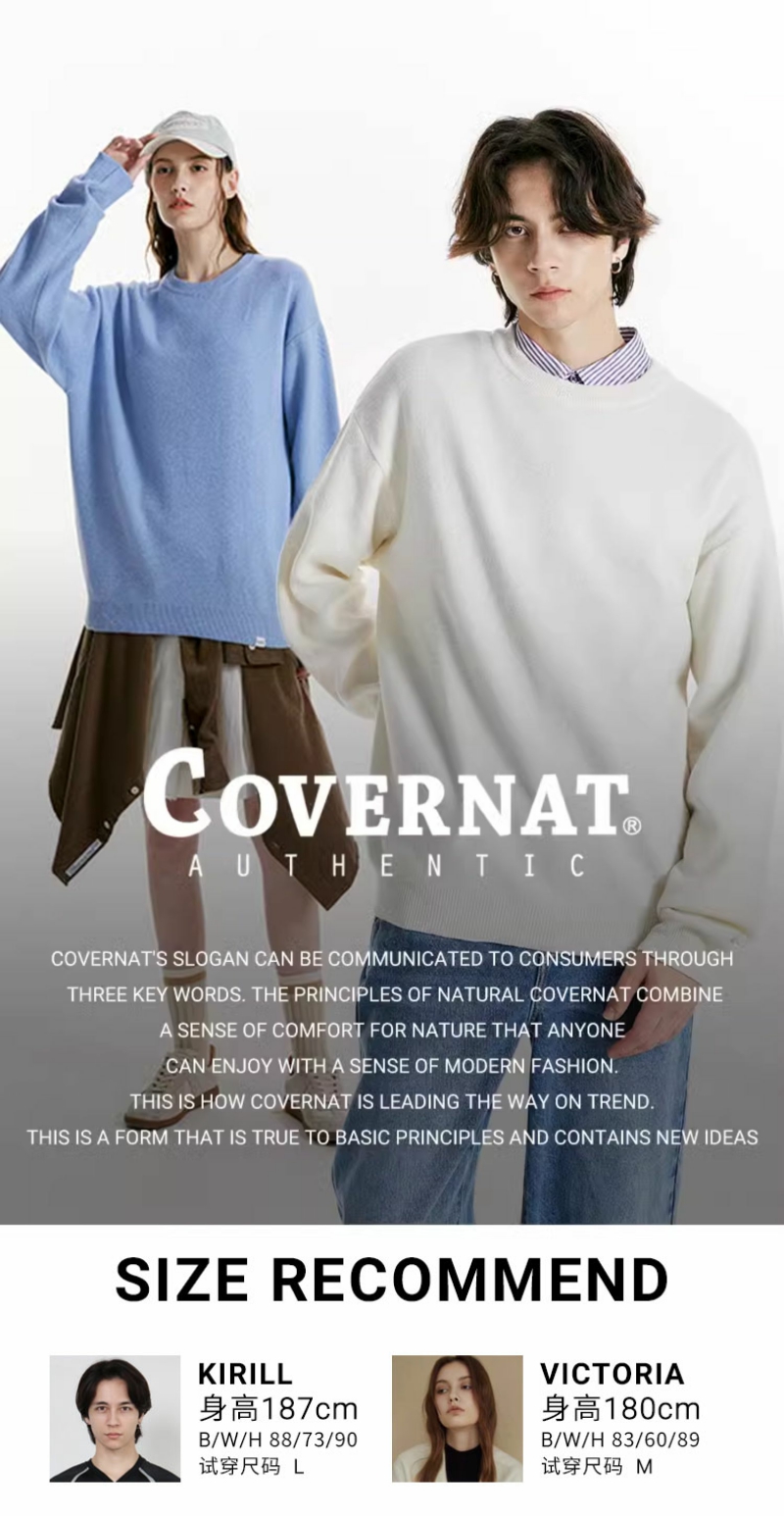 Covernat韩国潮牌24秋冬款圆领套头针织衫毛衣时尚百搭男女情侣款CO2303KT20