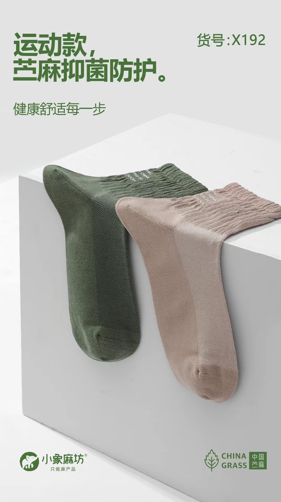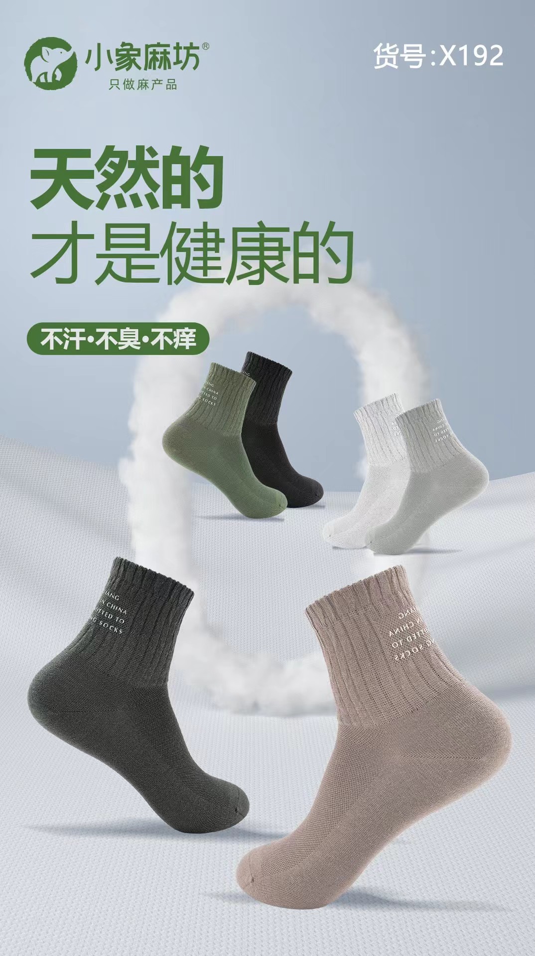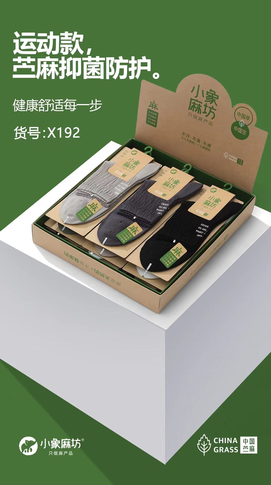 HJ-小象麻坊2024春夏新款 男烫印半网运动袜三双装-X192【ZB】