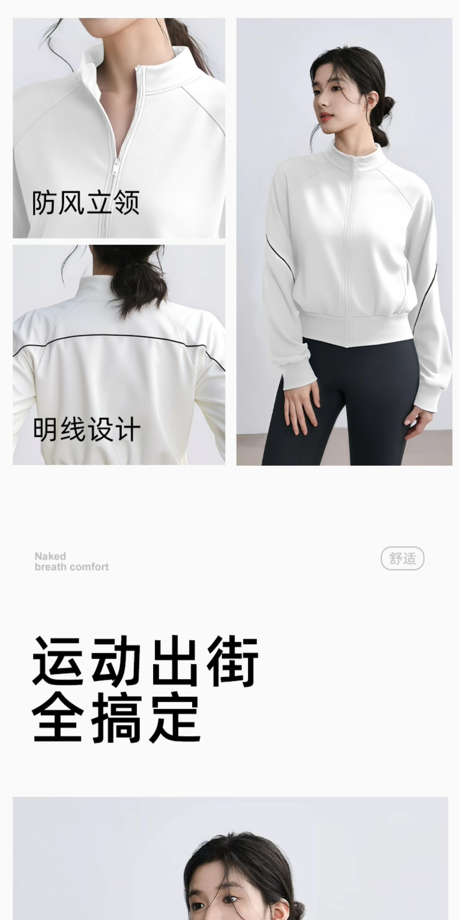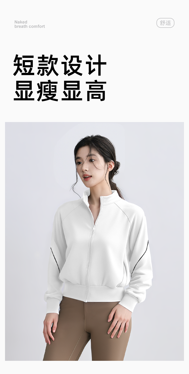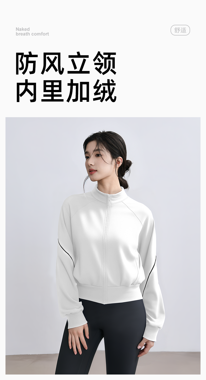 跃牌【瑜堂系列】秋冬撞色条加绒瑜伽服立领保暖修身运动外套女JYMW194