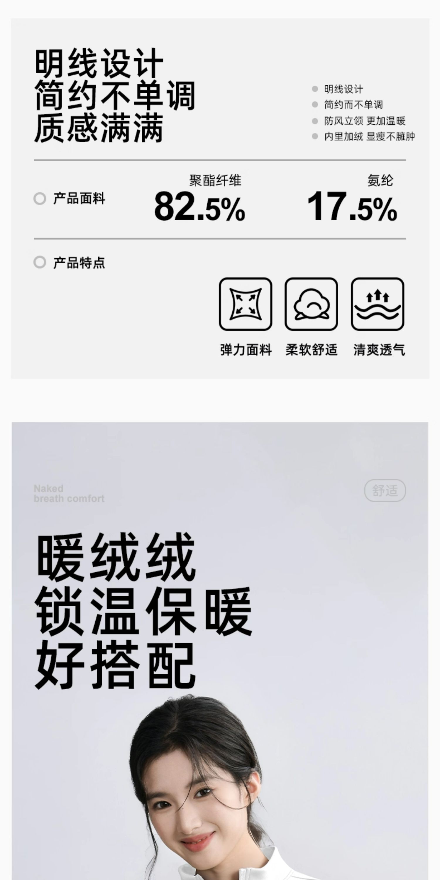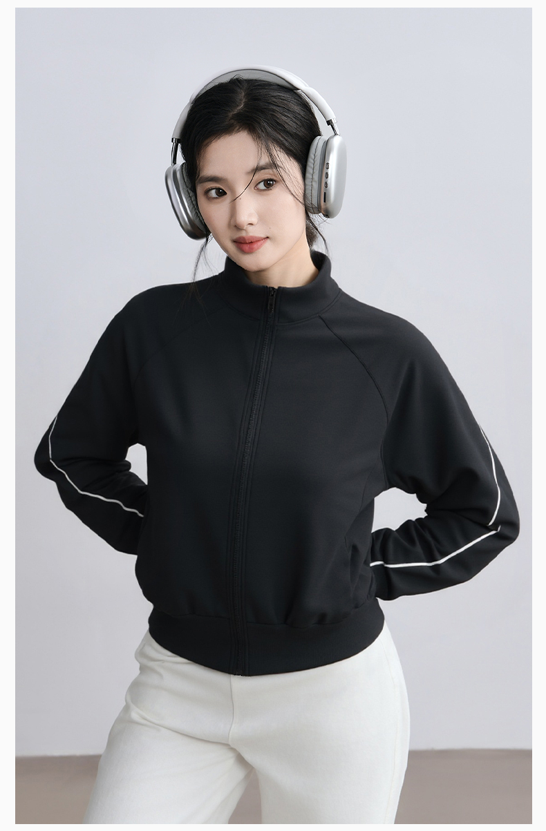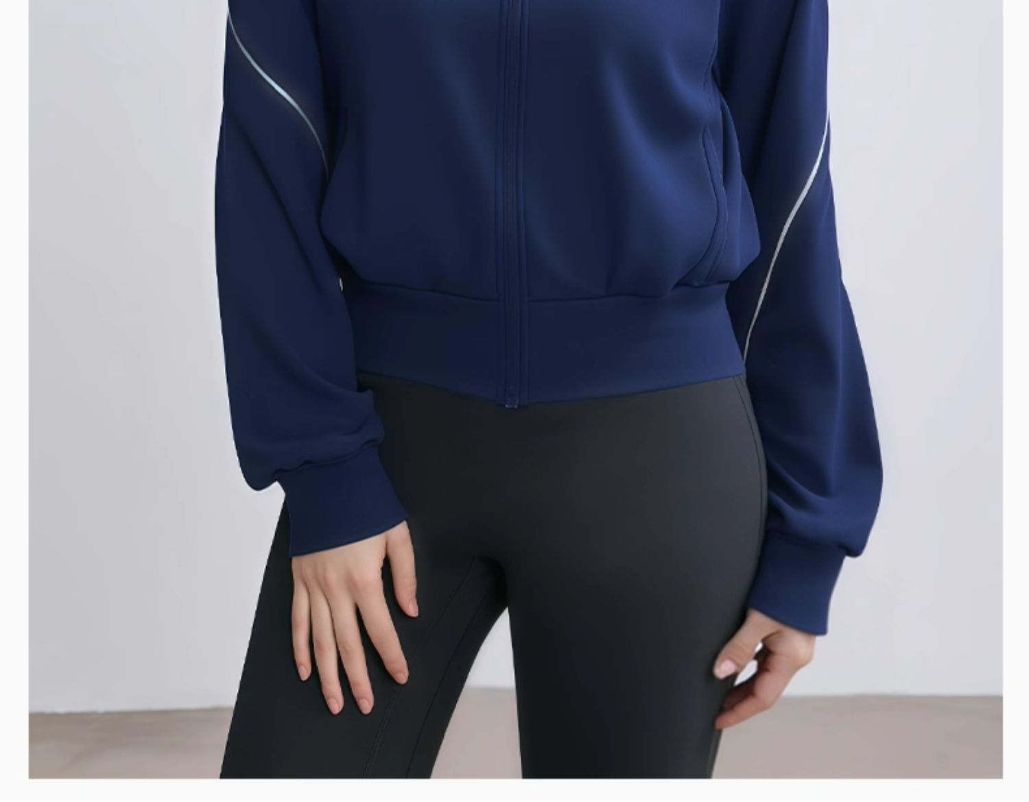 跃牌【瑜堂系列】秋冬撞色条加绒瑜伽服立领保暖修身运动外套女JYMW194