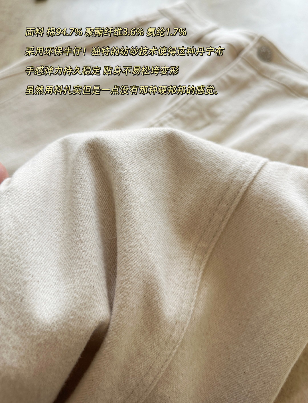 遇到好看的白裤子太难太难了!!反正就是人生裤子 闭眼收吧~面料 棉94.7% 聚酯纤维3.6% 氨纶1.7%