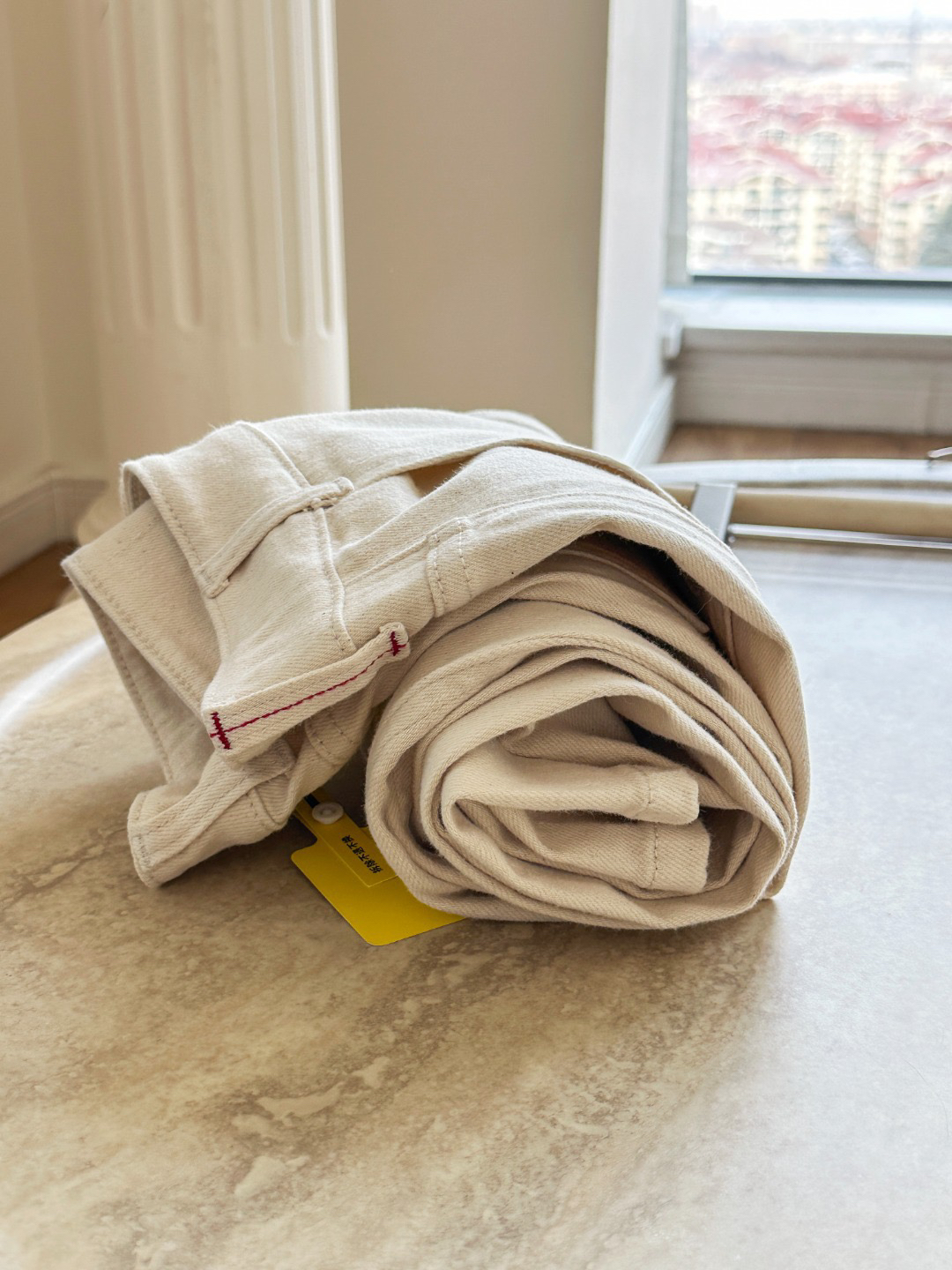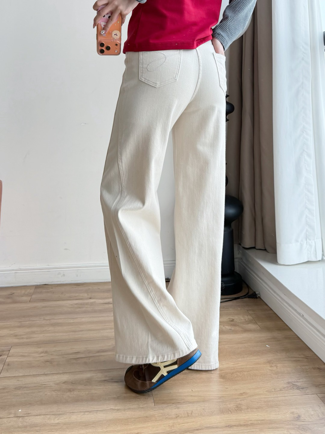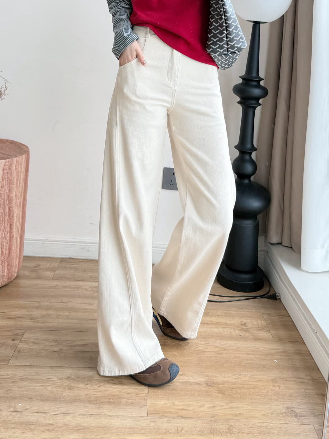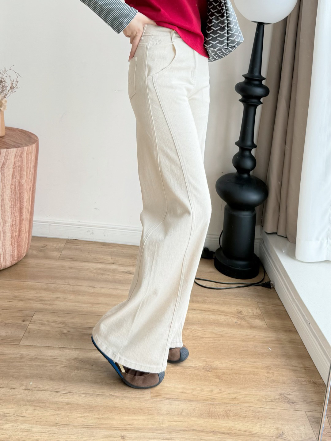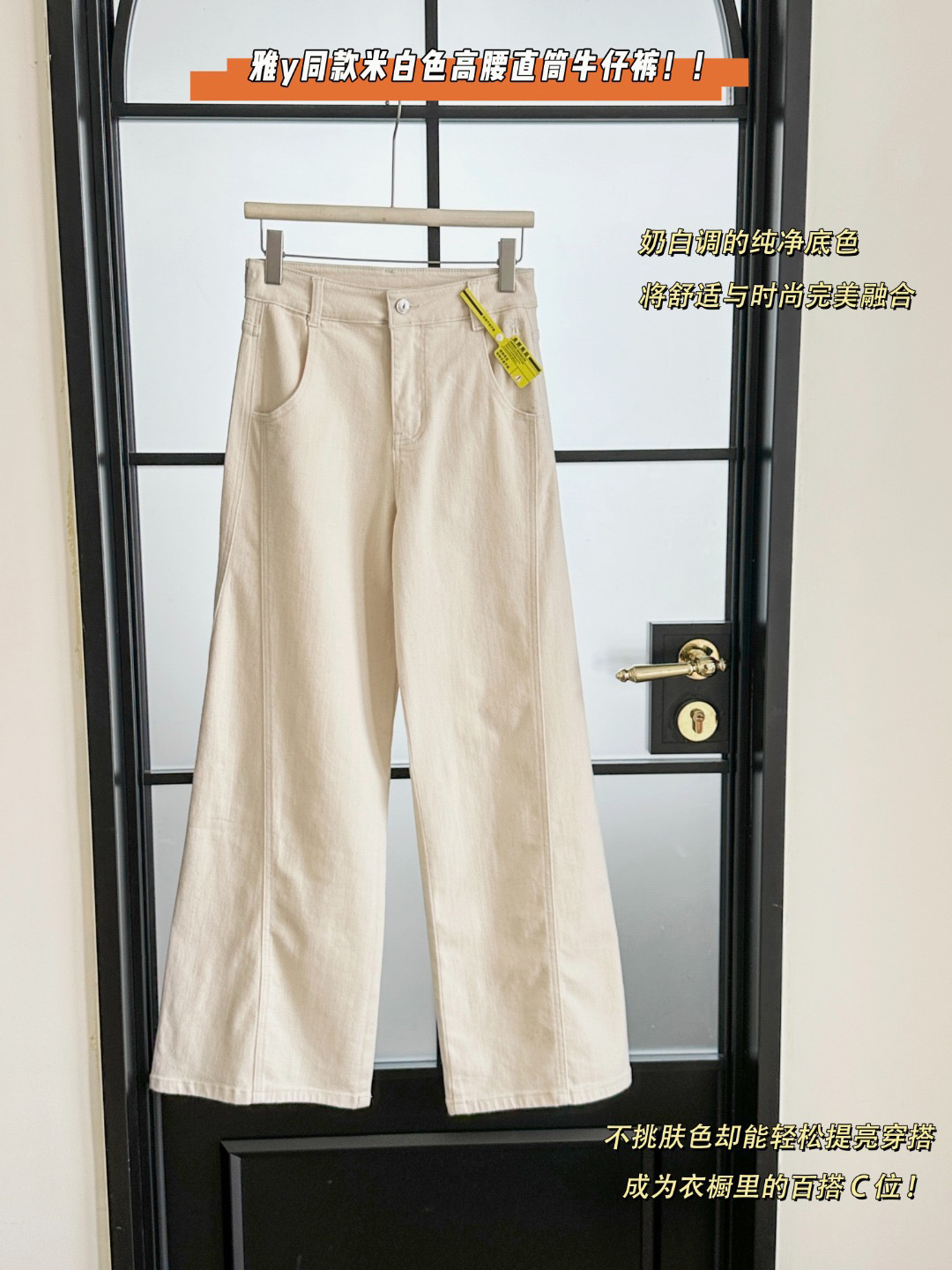 雅y同款米白色高腰直筒牛仔裤!!