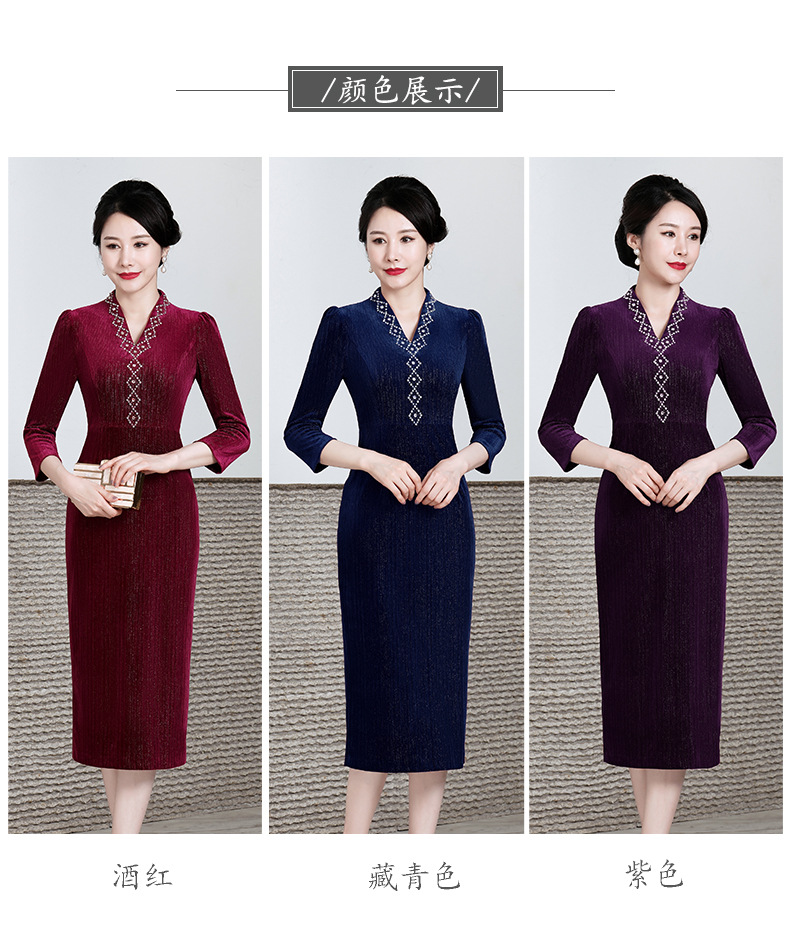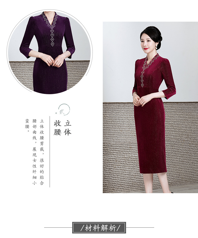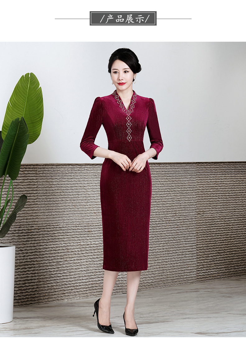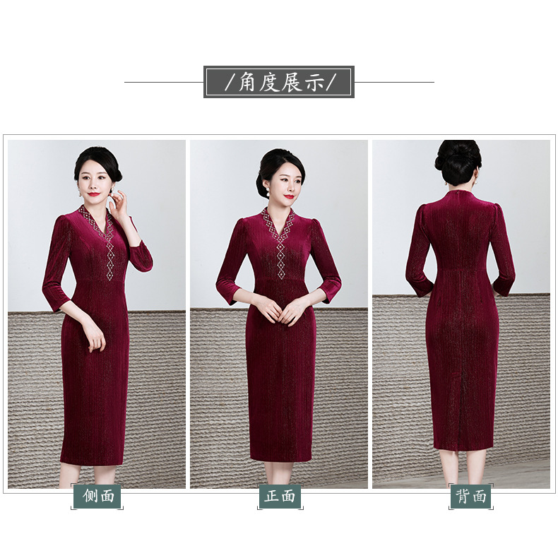 秋装新款修身丝绒旗袍连衣裙改良气质修身中长款钉珠HYX-22-7658
