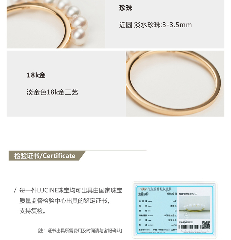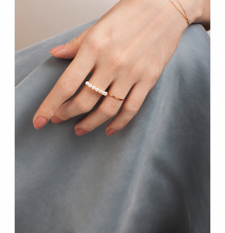 LUCINE鹿鸣珠宝 | 盈珍珠排戒戒指淡水珍珠mini珍珠18k金百搭