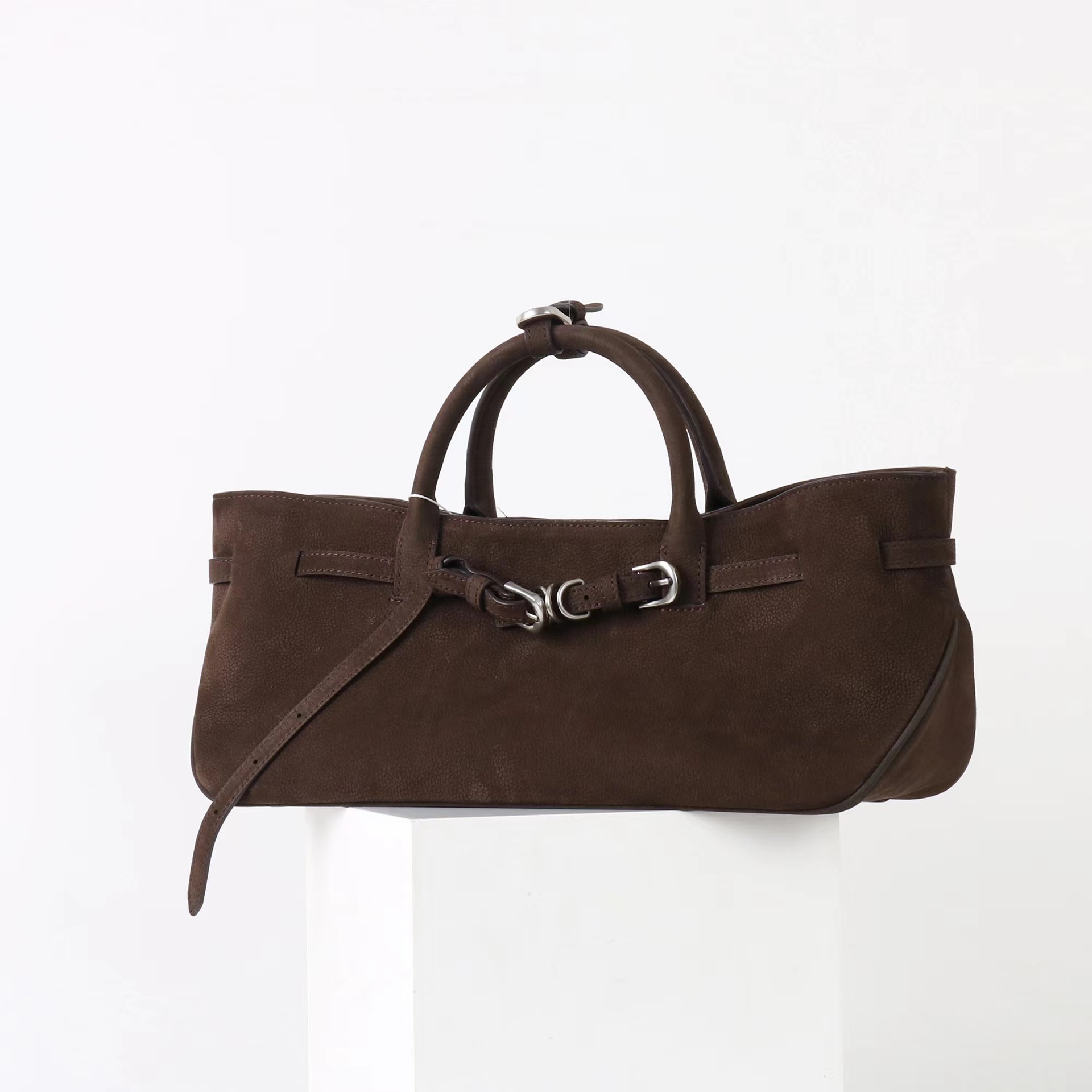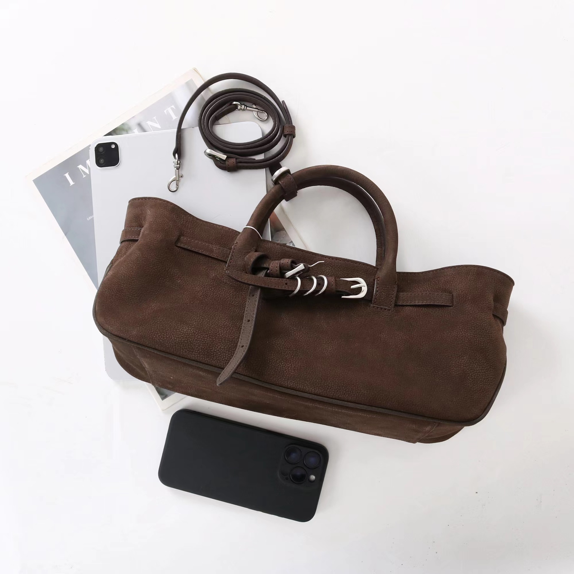 【秋冬精选】2025新款复古休闲麂皮包通勤百搭极简皮带扣设计斜挎女小众托特包