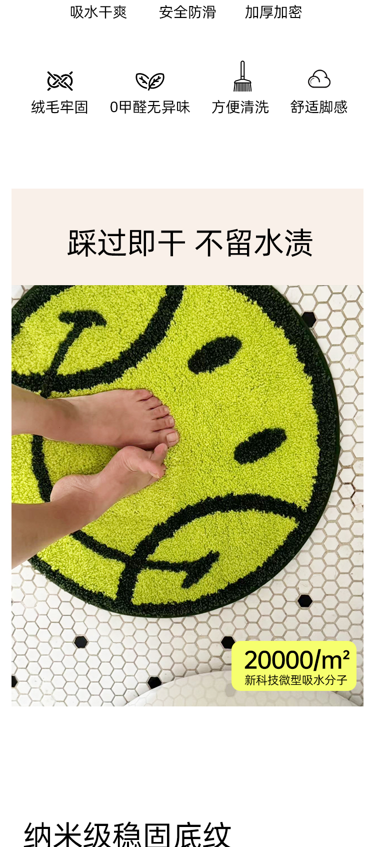 Smiley home 网球笑脸地垫超软卫生间浴室吸水速干脚垫【该商品不支持用券】