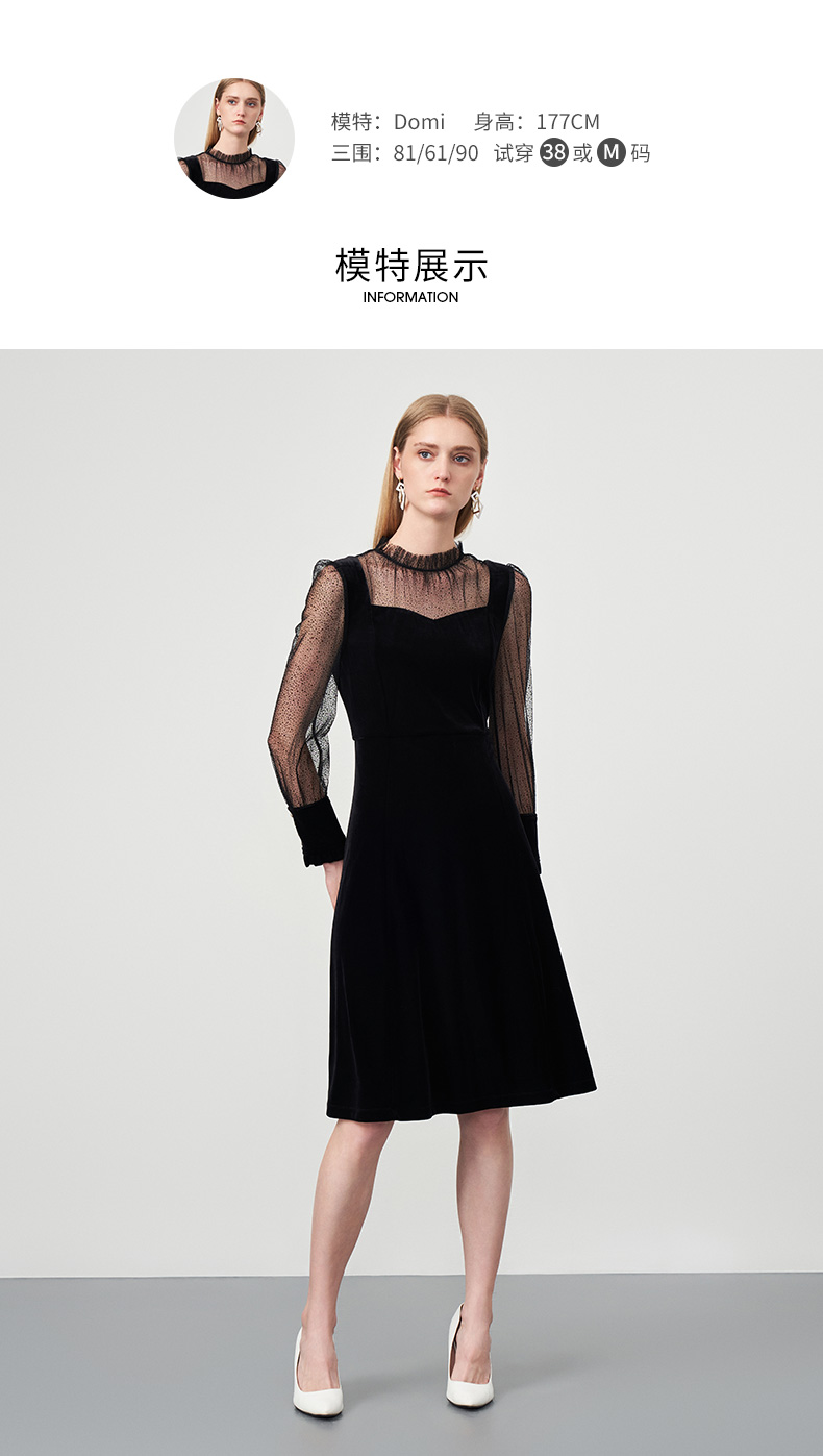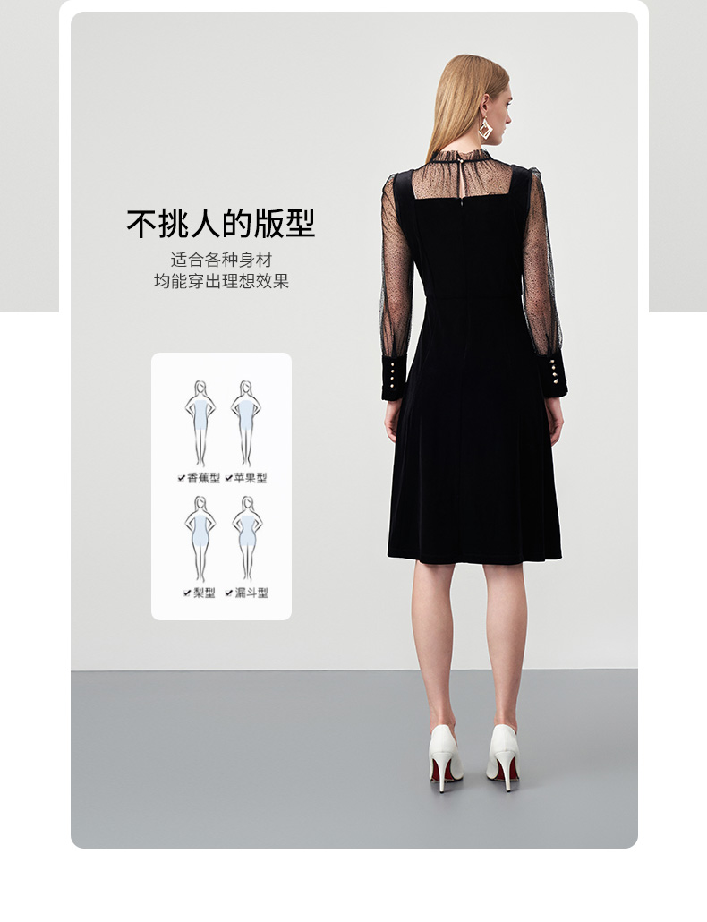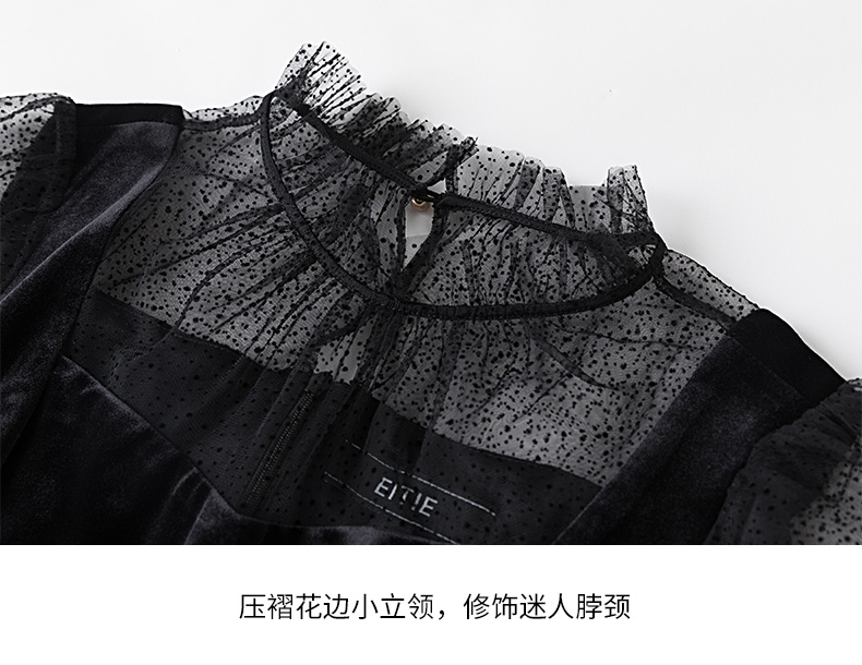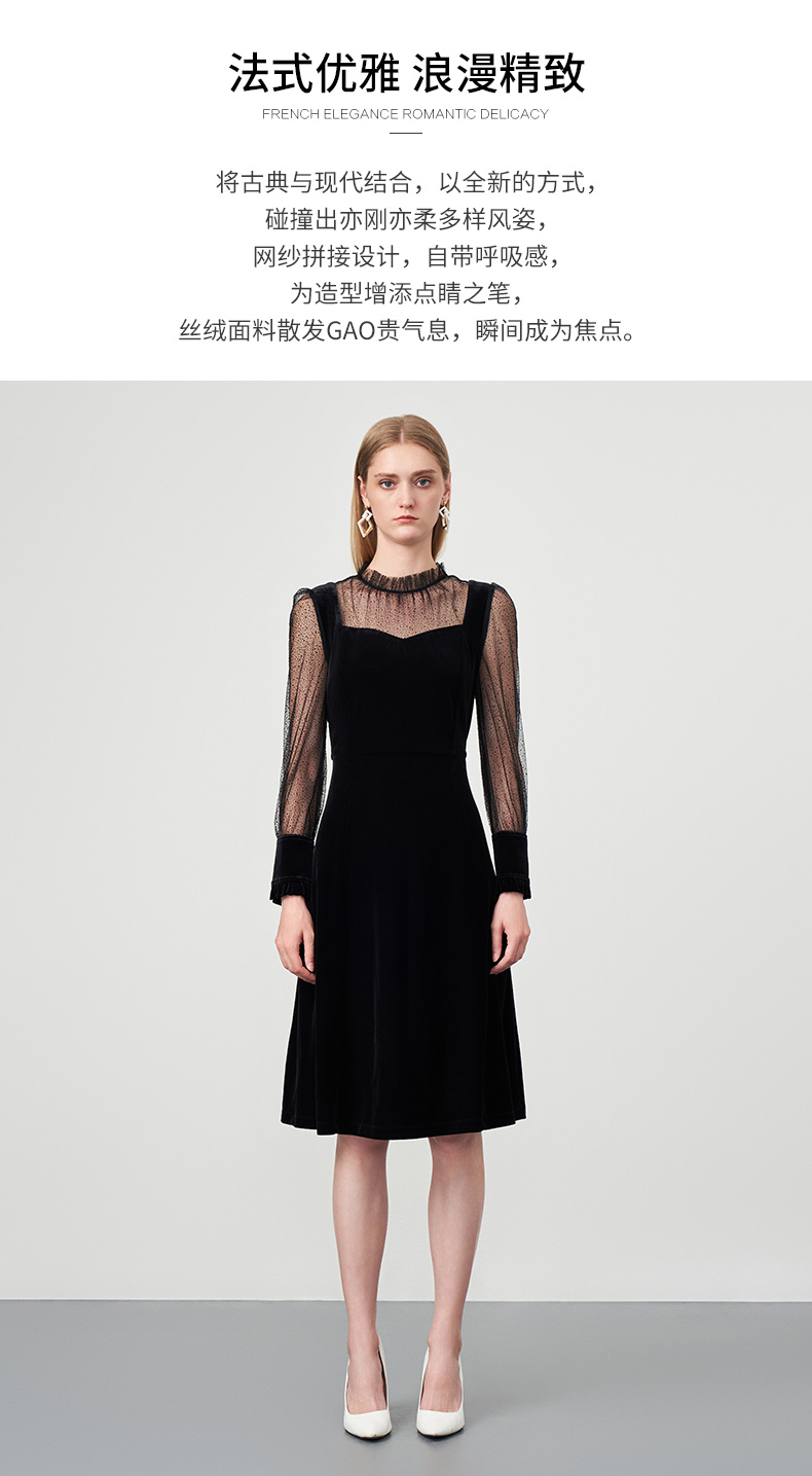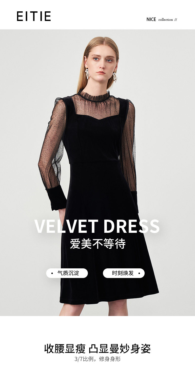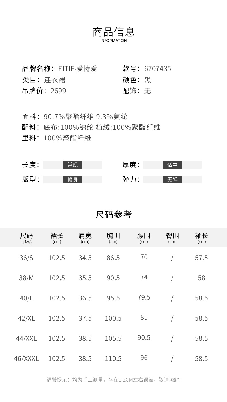 EITIE爱特爱秋款舒适简约镂空花边修身a字裙连衣6707435