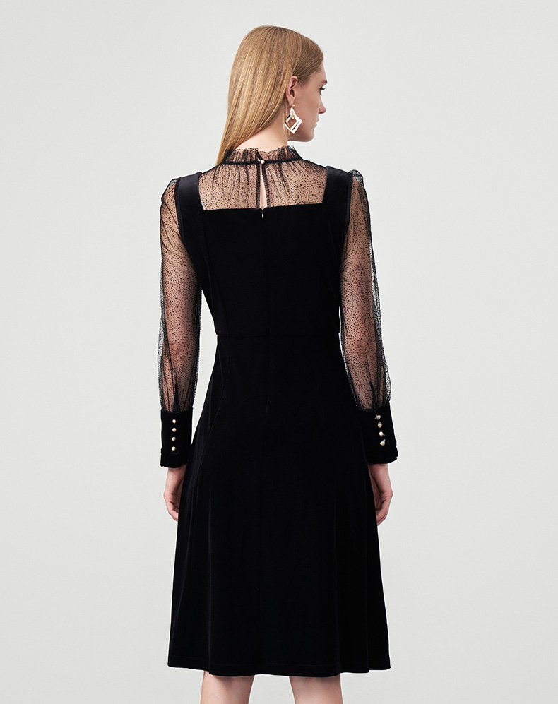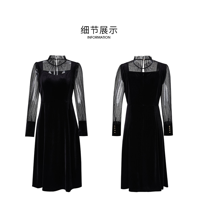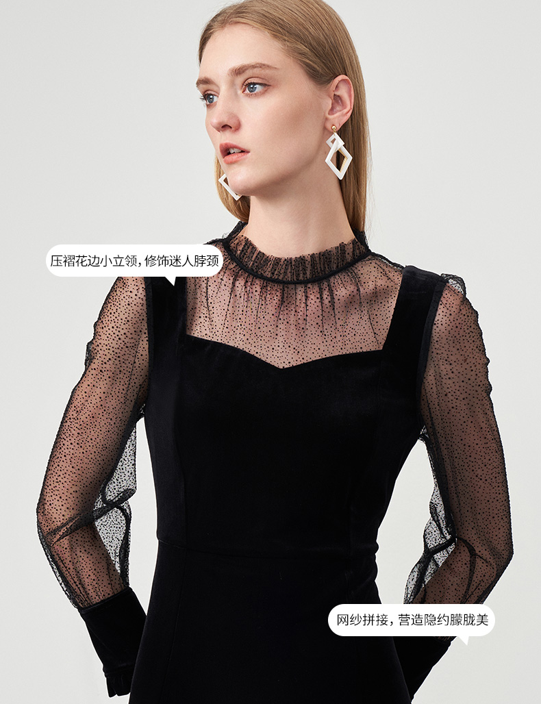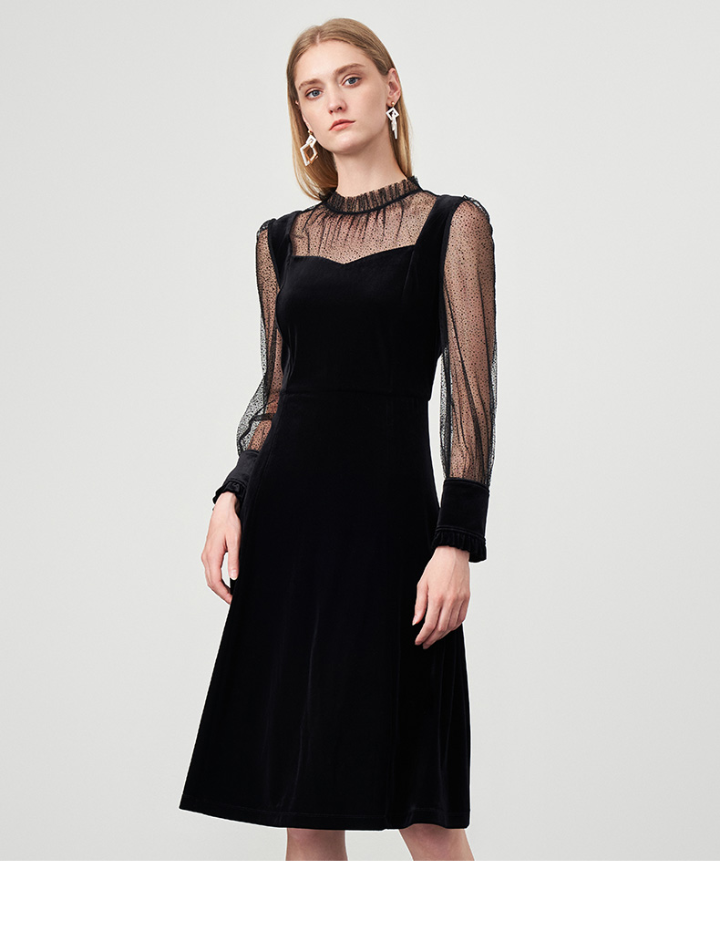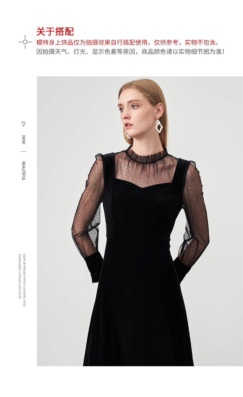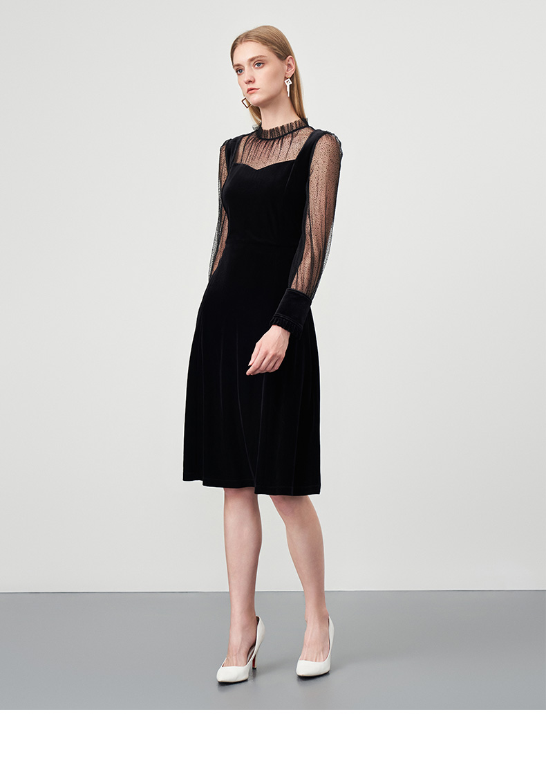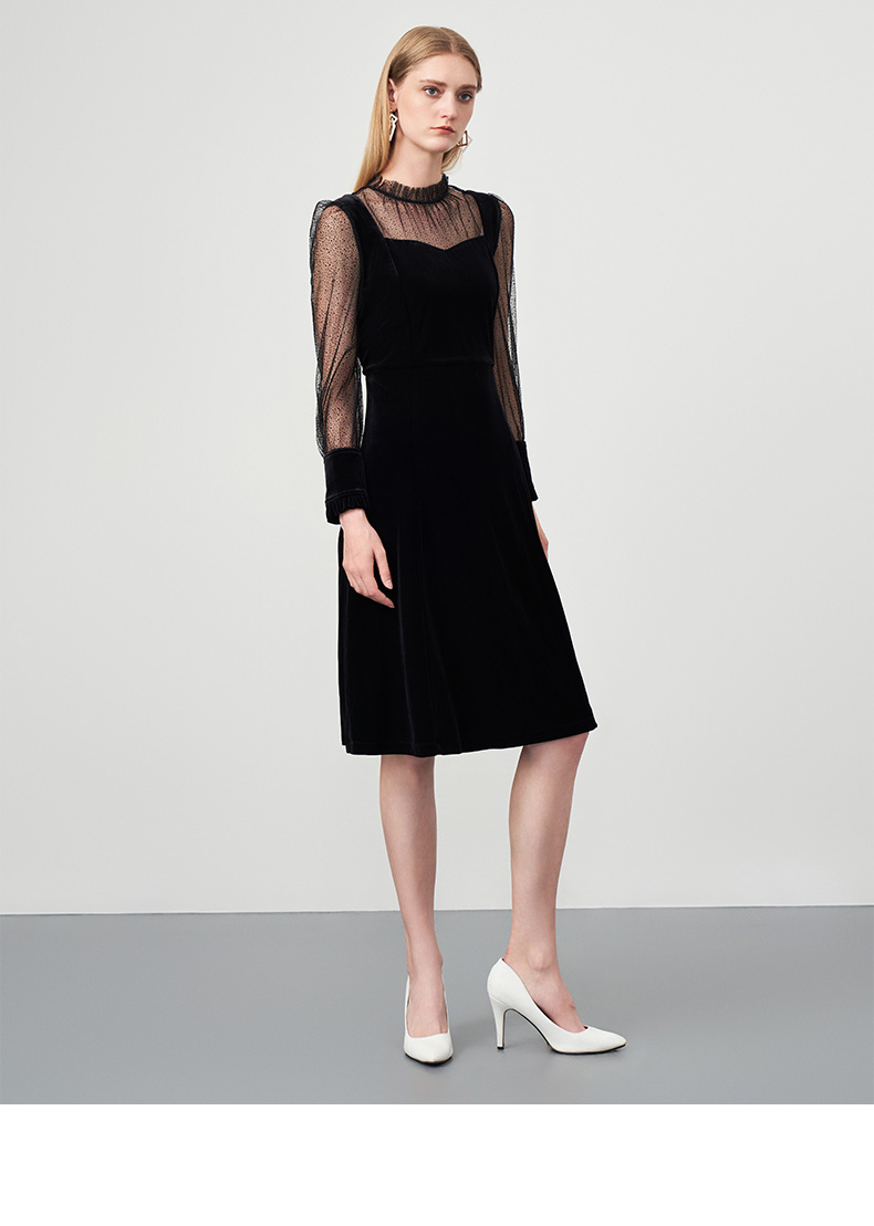 EITIE爱特爱秋款舒适简约镂空花边修身a字裙连衣6707435