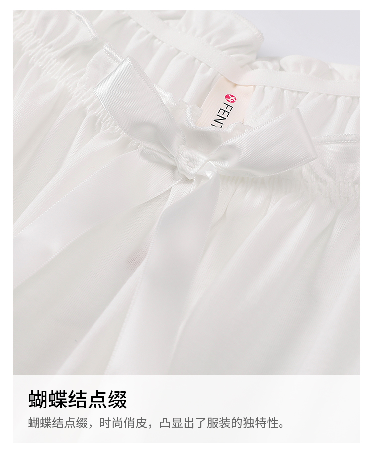 芬腾睡裙女夏纯棉甜美圆领套头家居服全棉白色短袖中裙换季春夏款