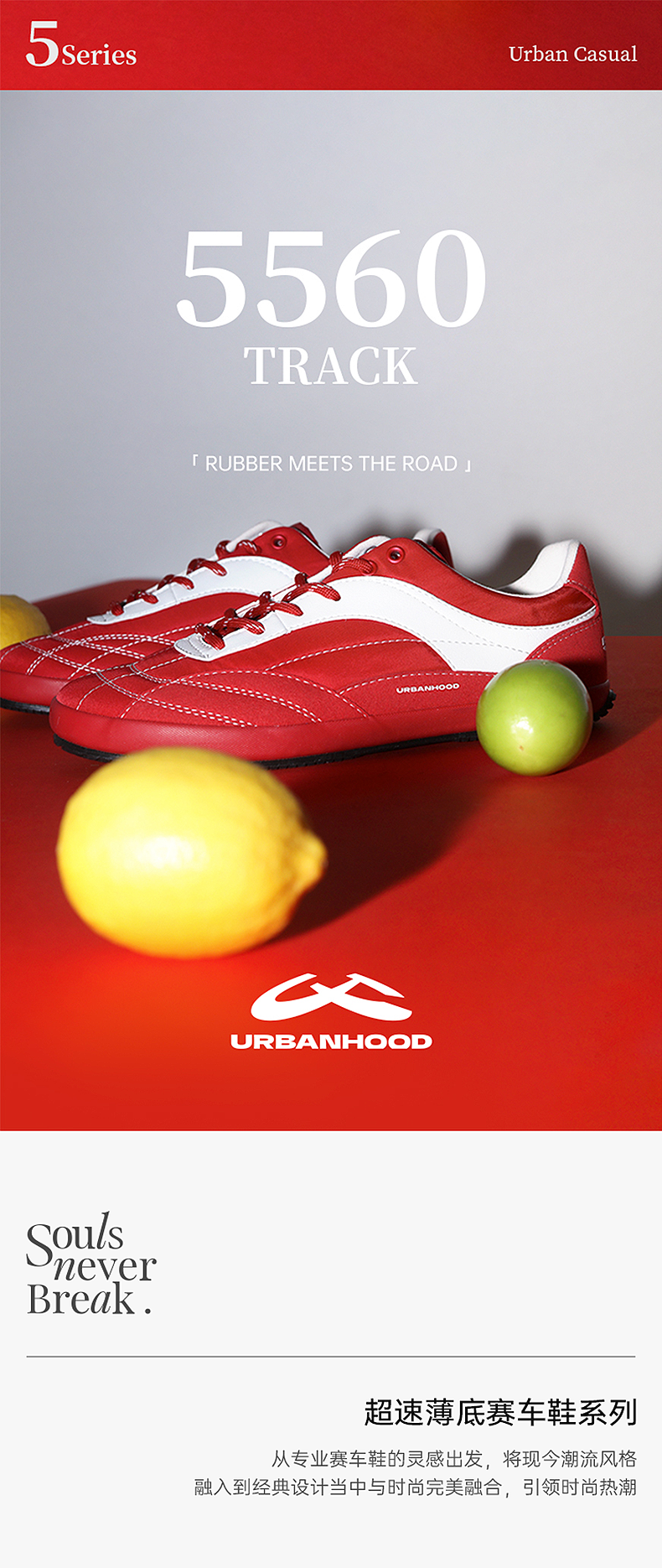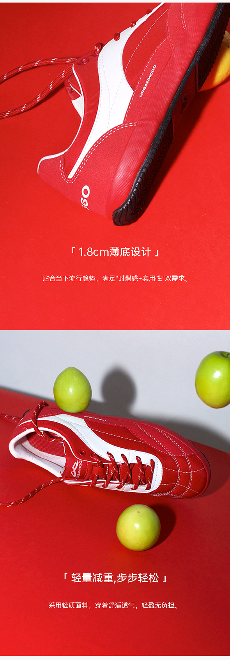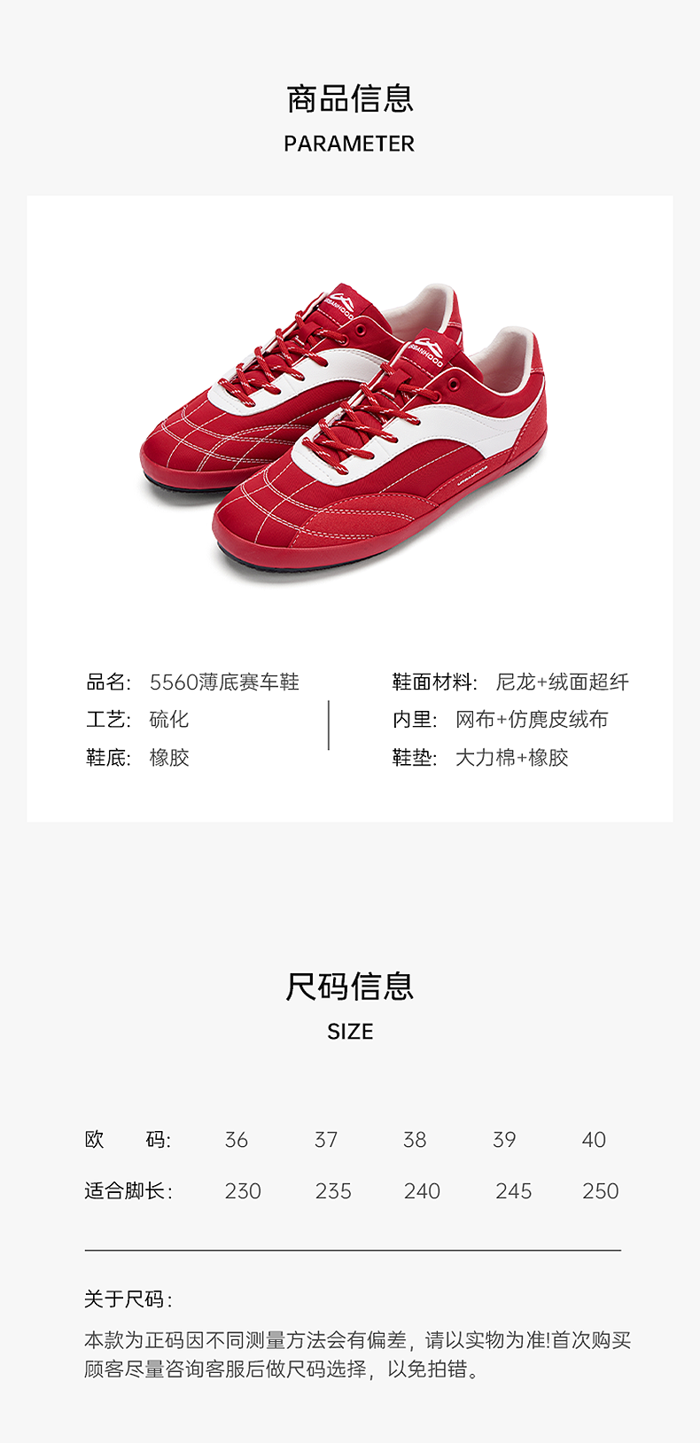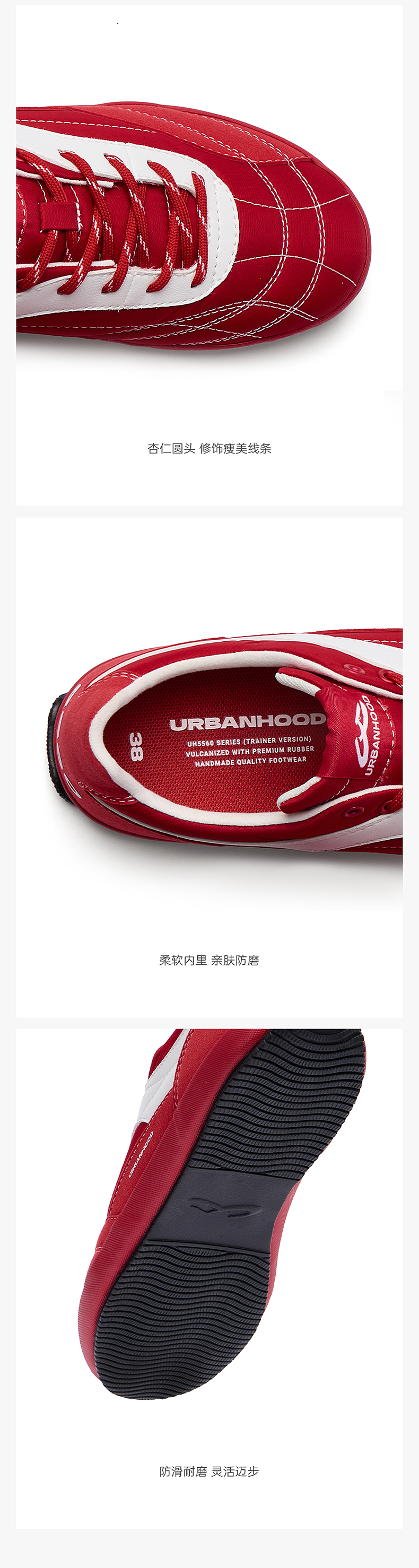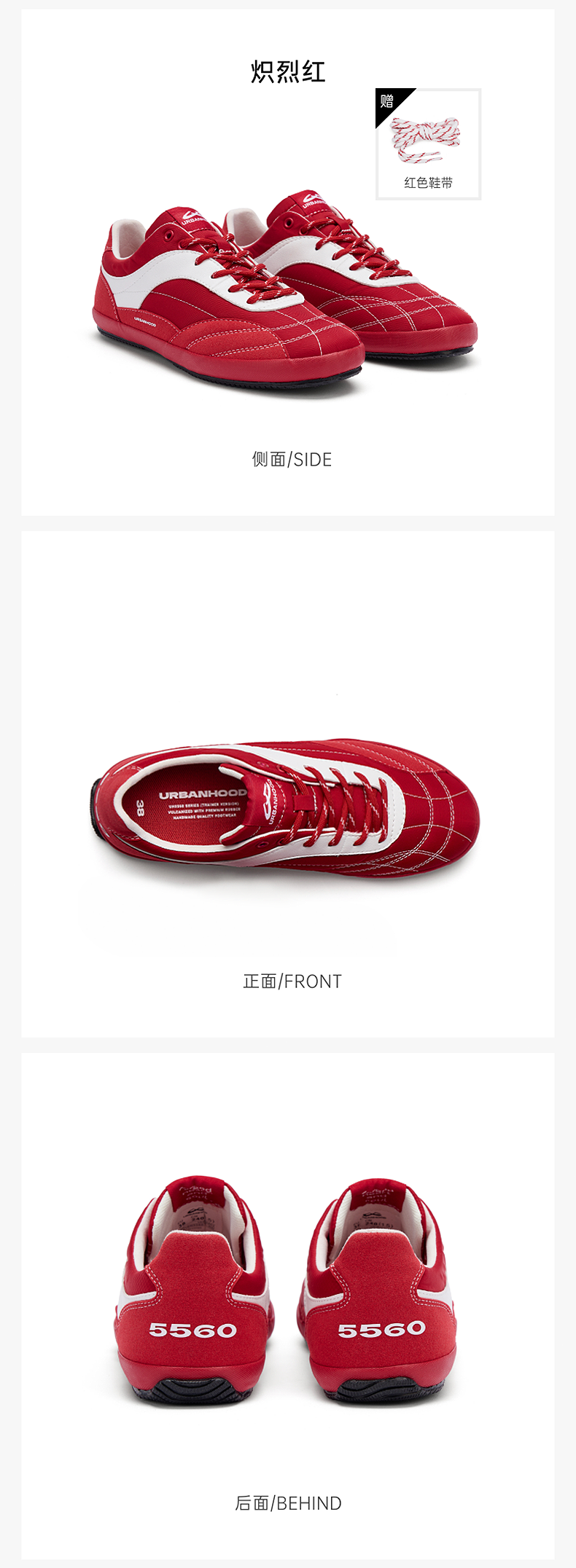 URBANHOOD 5560红色复古薄底赛车鞋德训鞋2.0
