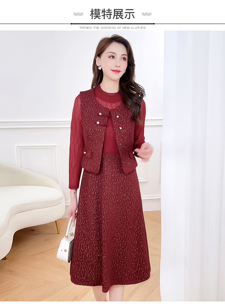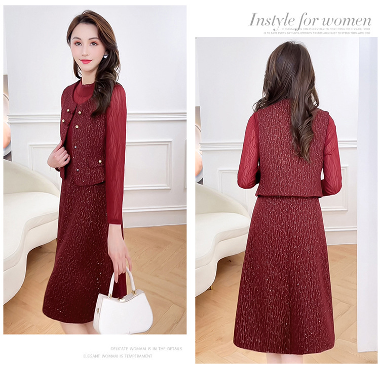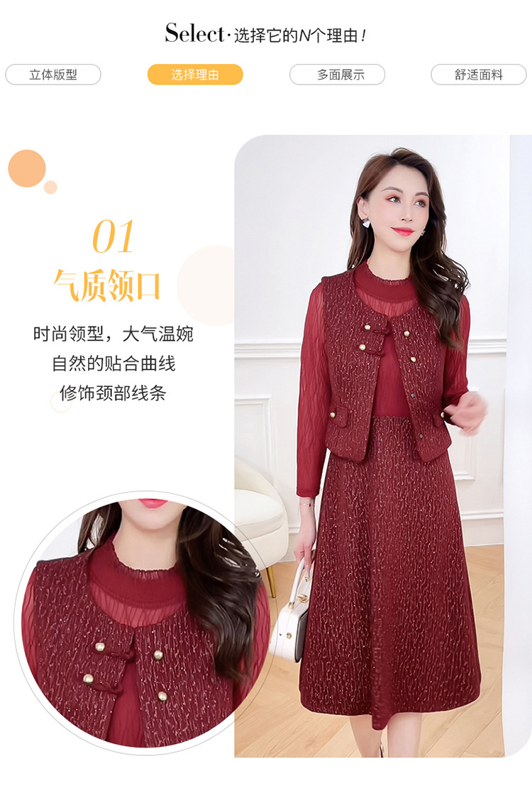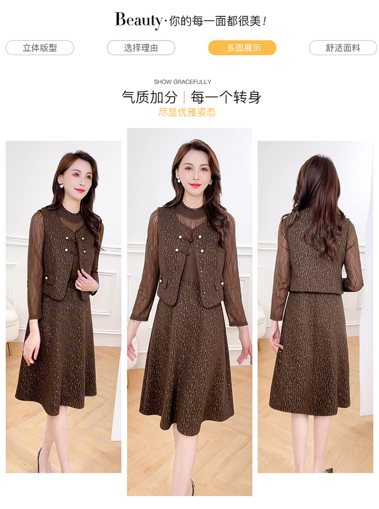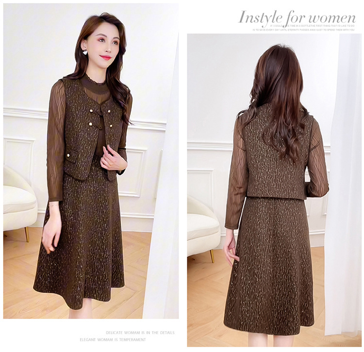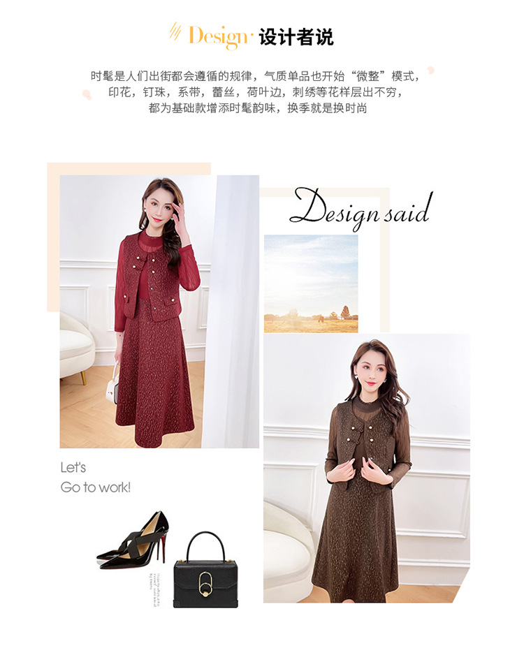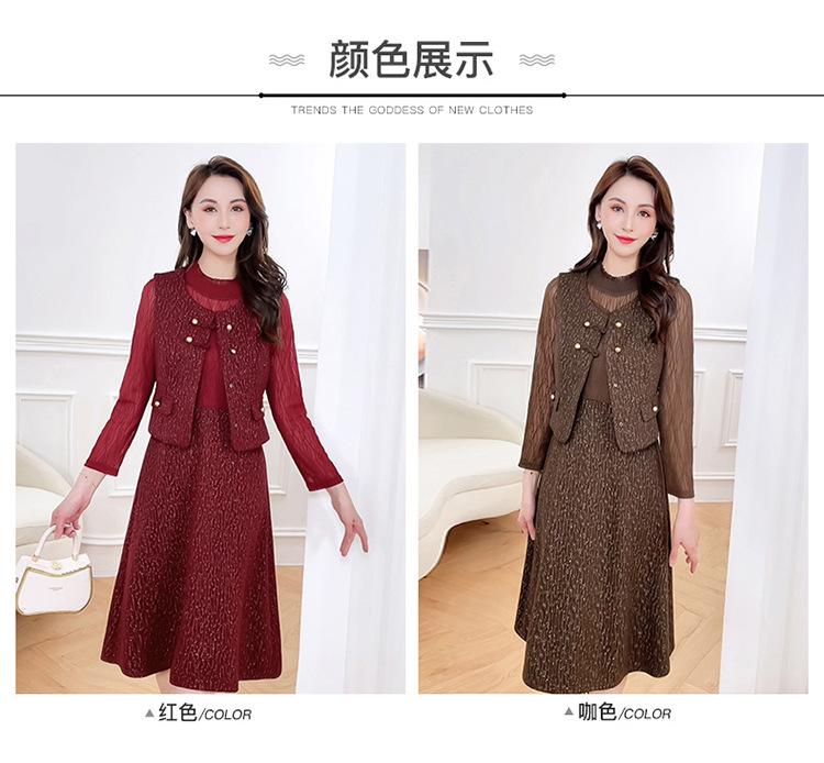QYM 246593-Y两件套马甲连衣裙背心套装气质裙