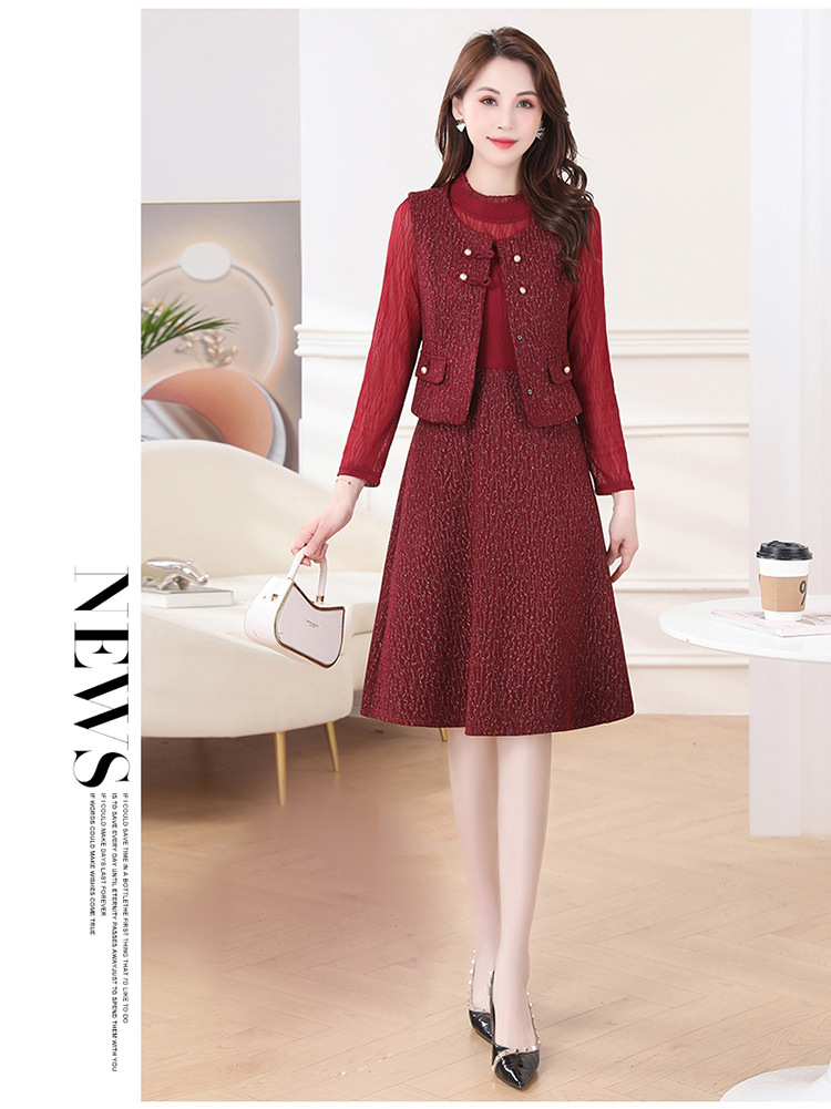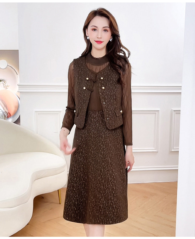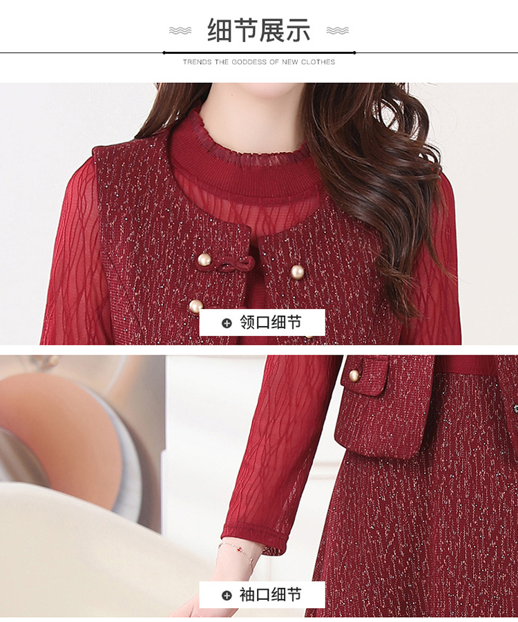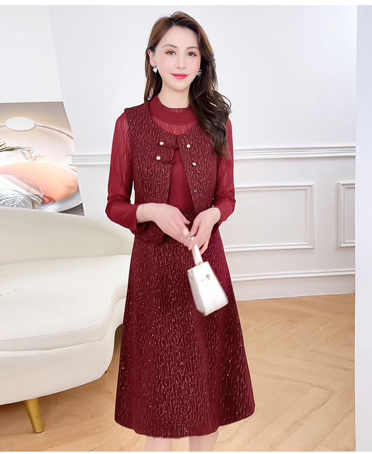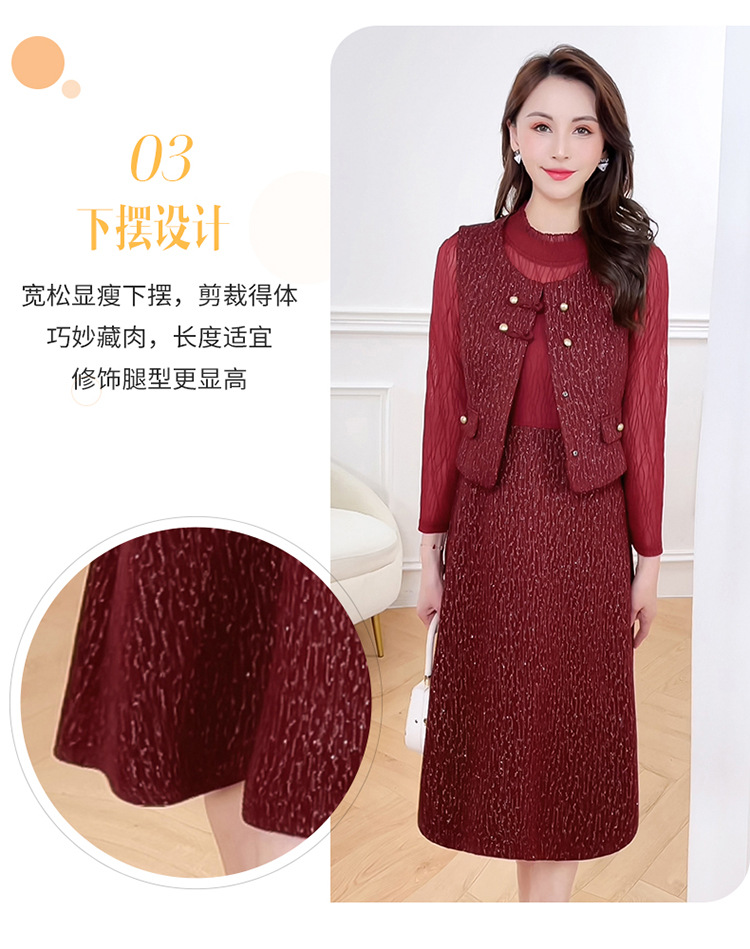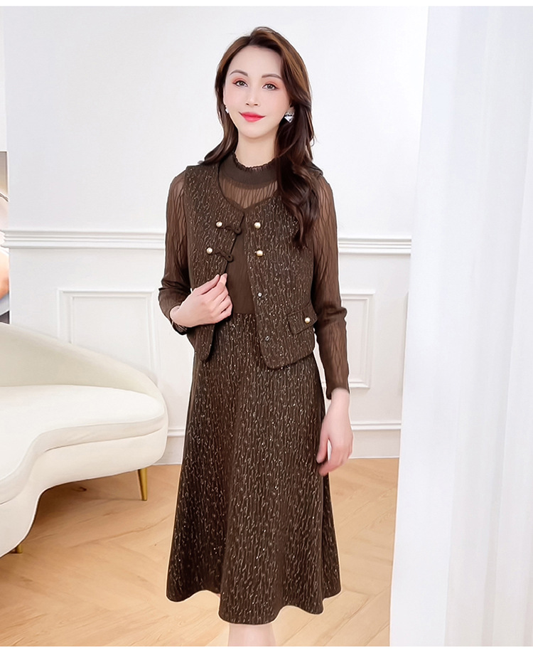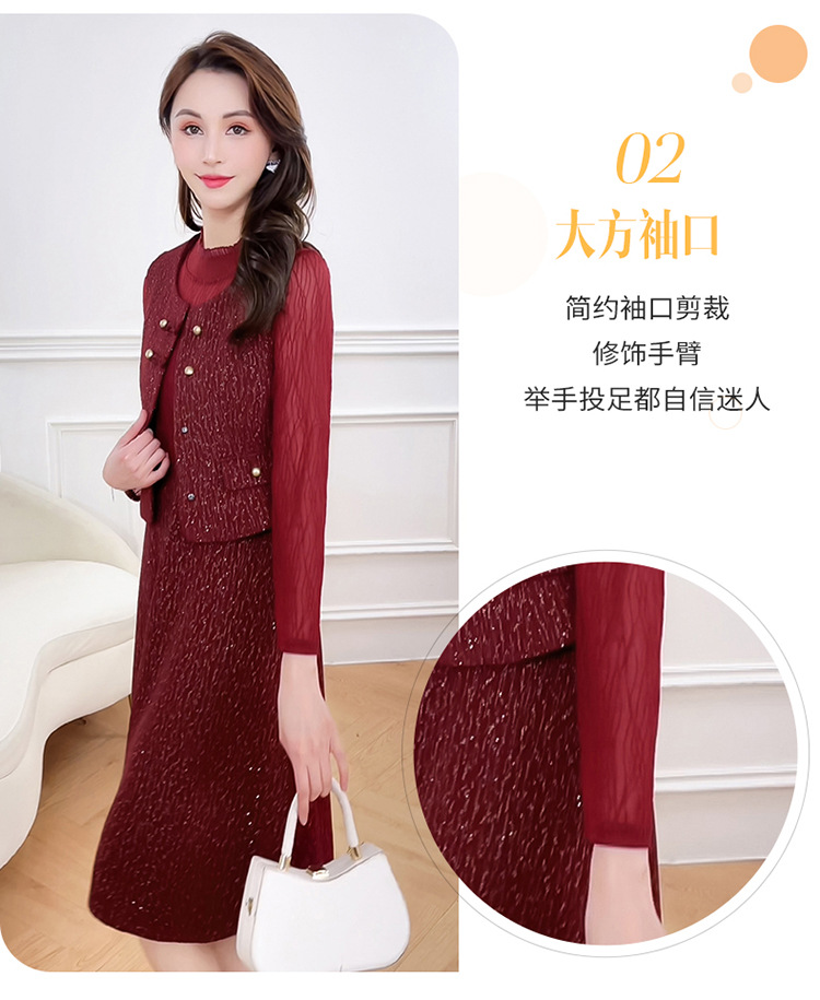 QYM 246593-Y两件套马甲连衣裙背心套装气质裙