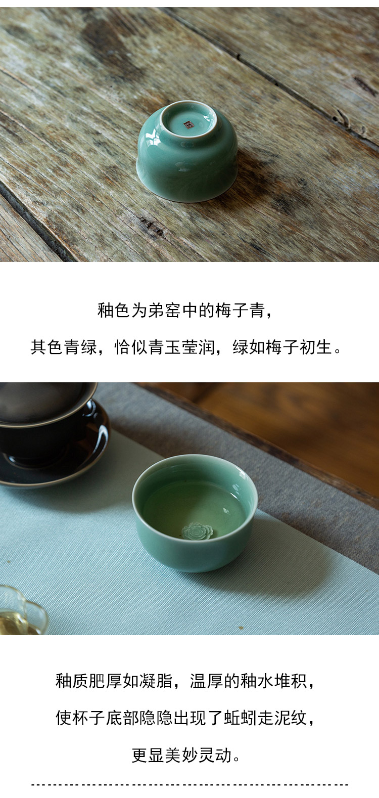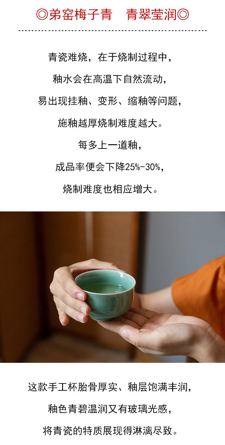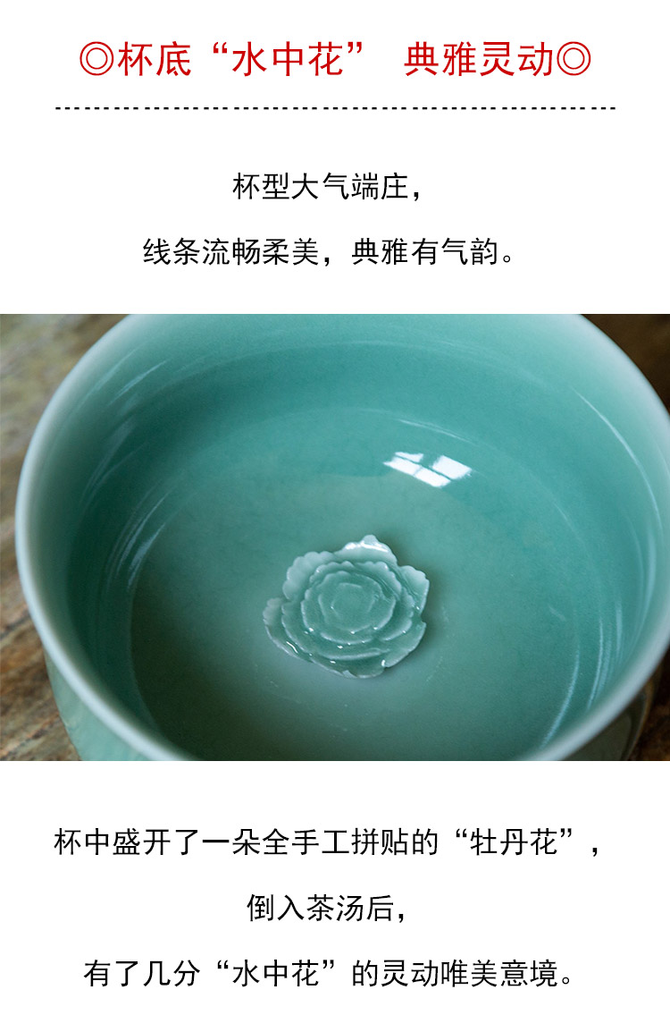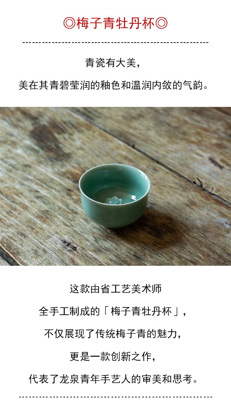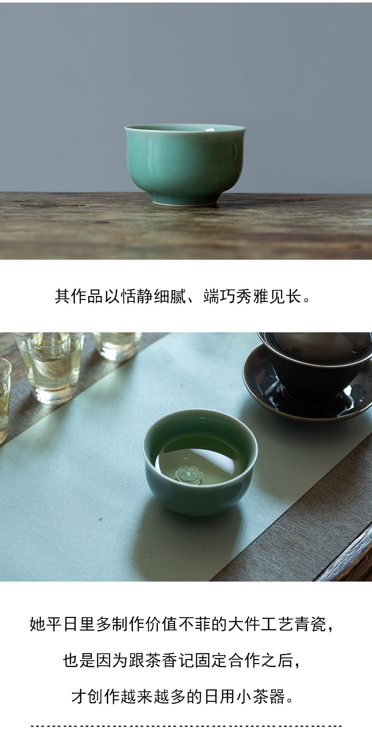 茶香记 龙泉青瓷张英英手工杯梅子青牡丹杯110m青碧莹润茶杯品杯
