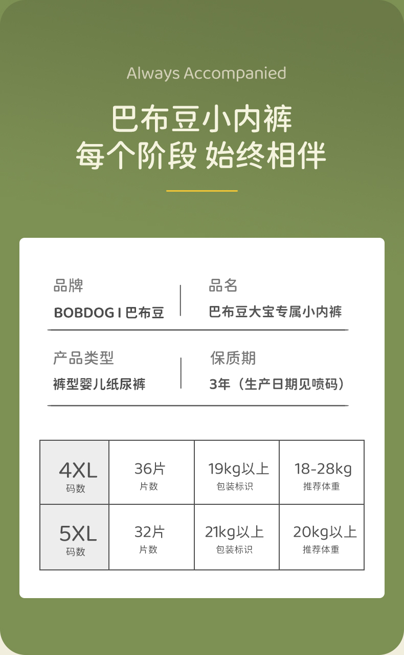 专为大宝设计 巴布豆大宝专用小内裤拉拉裤4XL42片 5XL36片