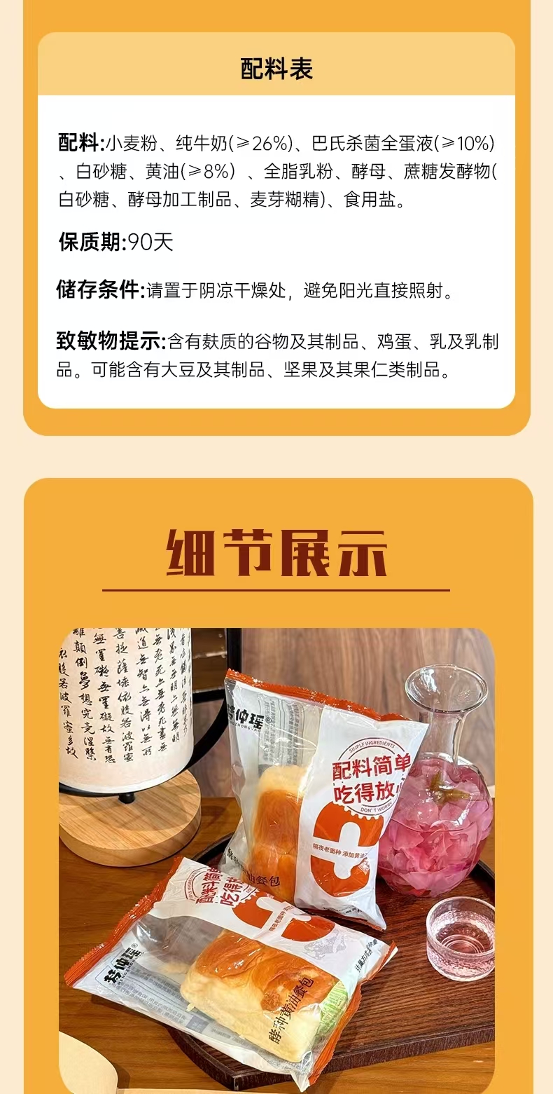 香软蓬松 好吃不腻 | 梦仲瑶酵种黄油餐包 纯牛奶和面 早餐面包 428g*2袋