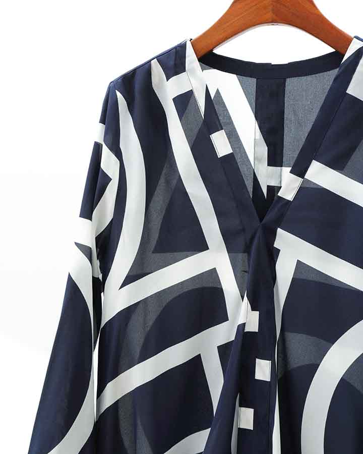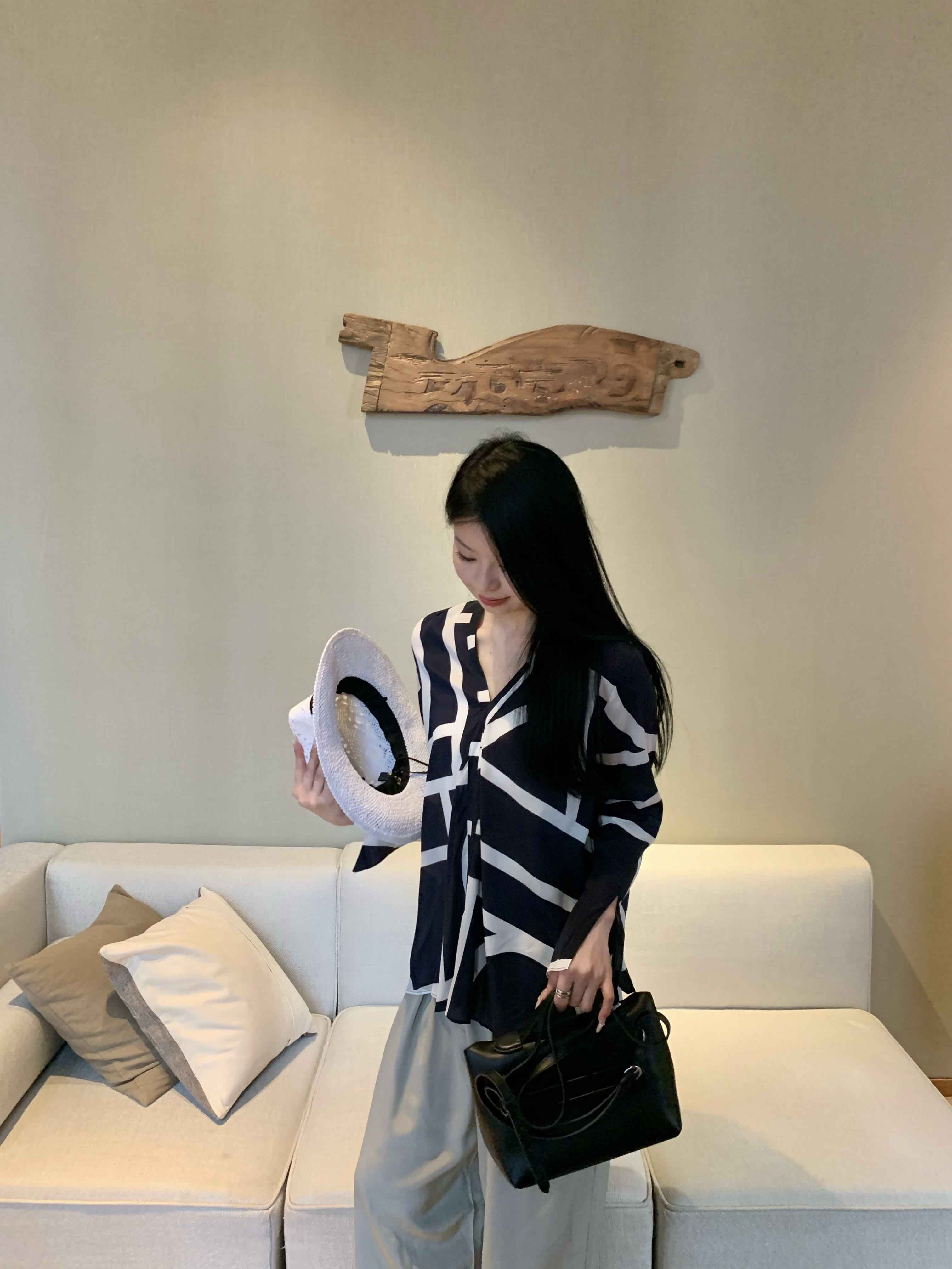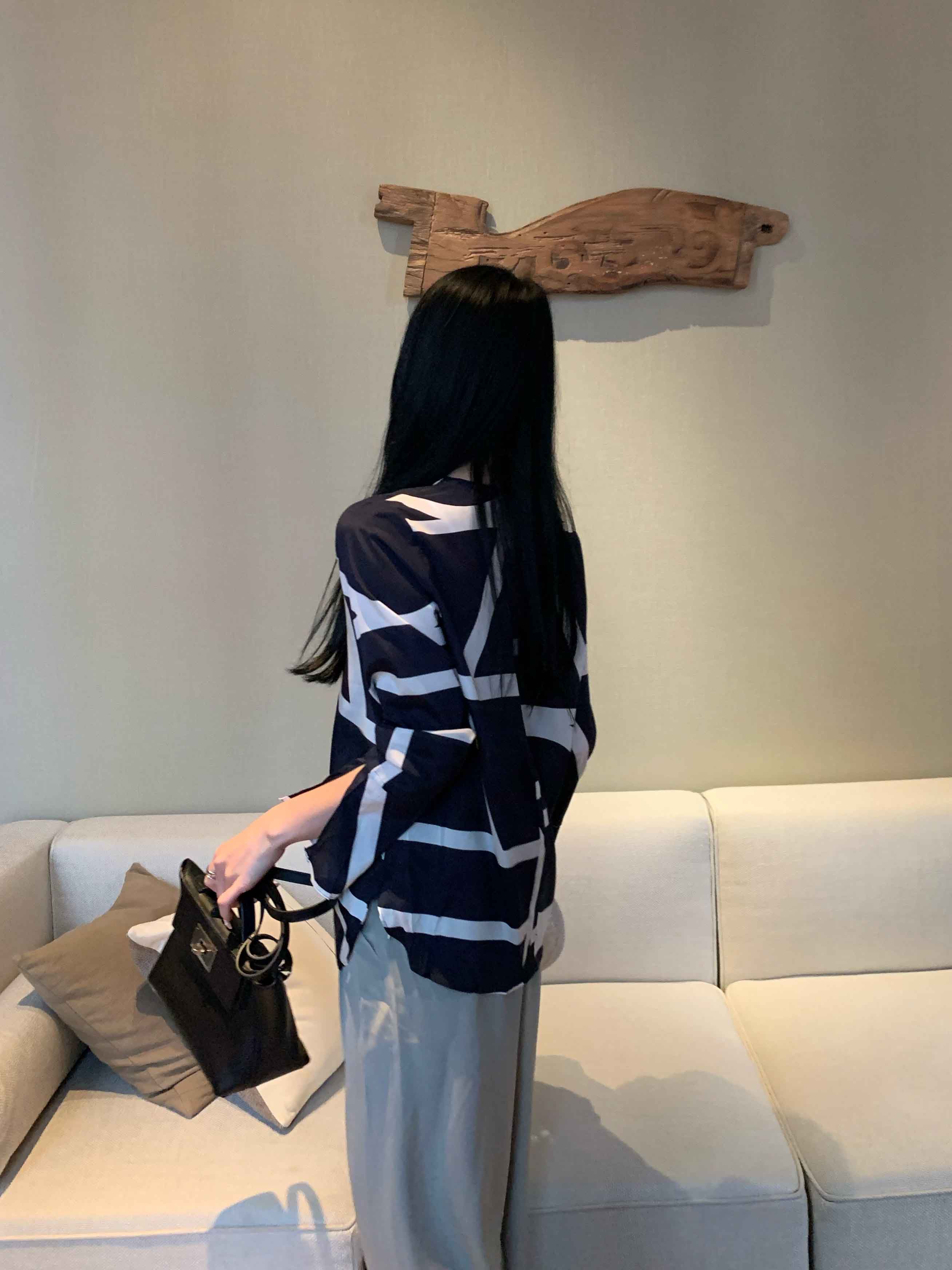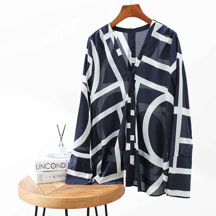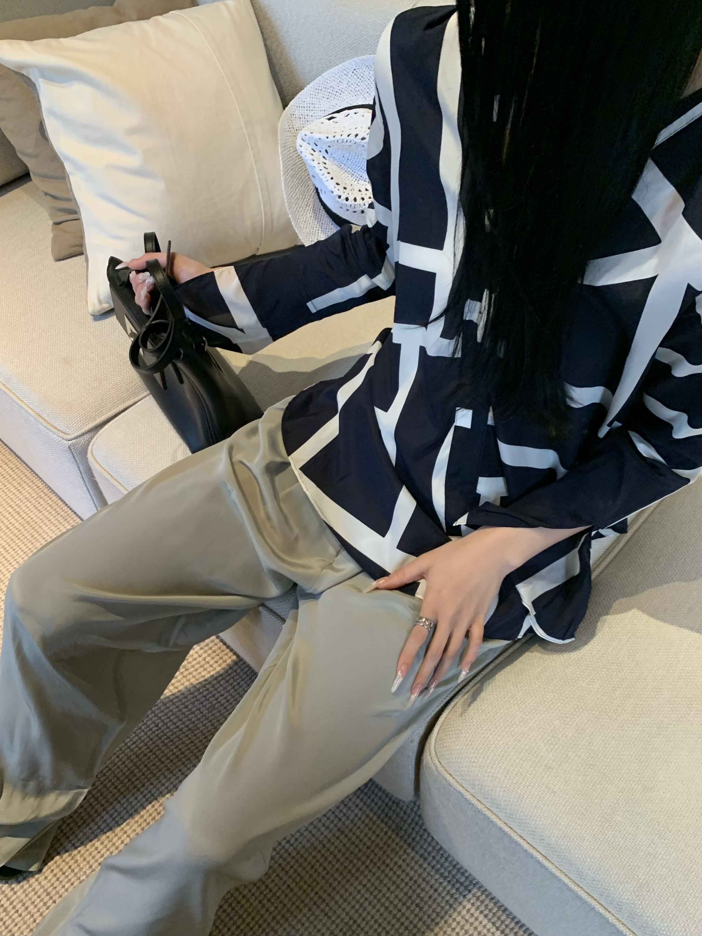 顺丰包邮洛诗琳14647春夏新款设计感字母印花真丝V领衬衫女0780