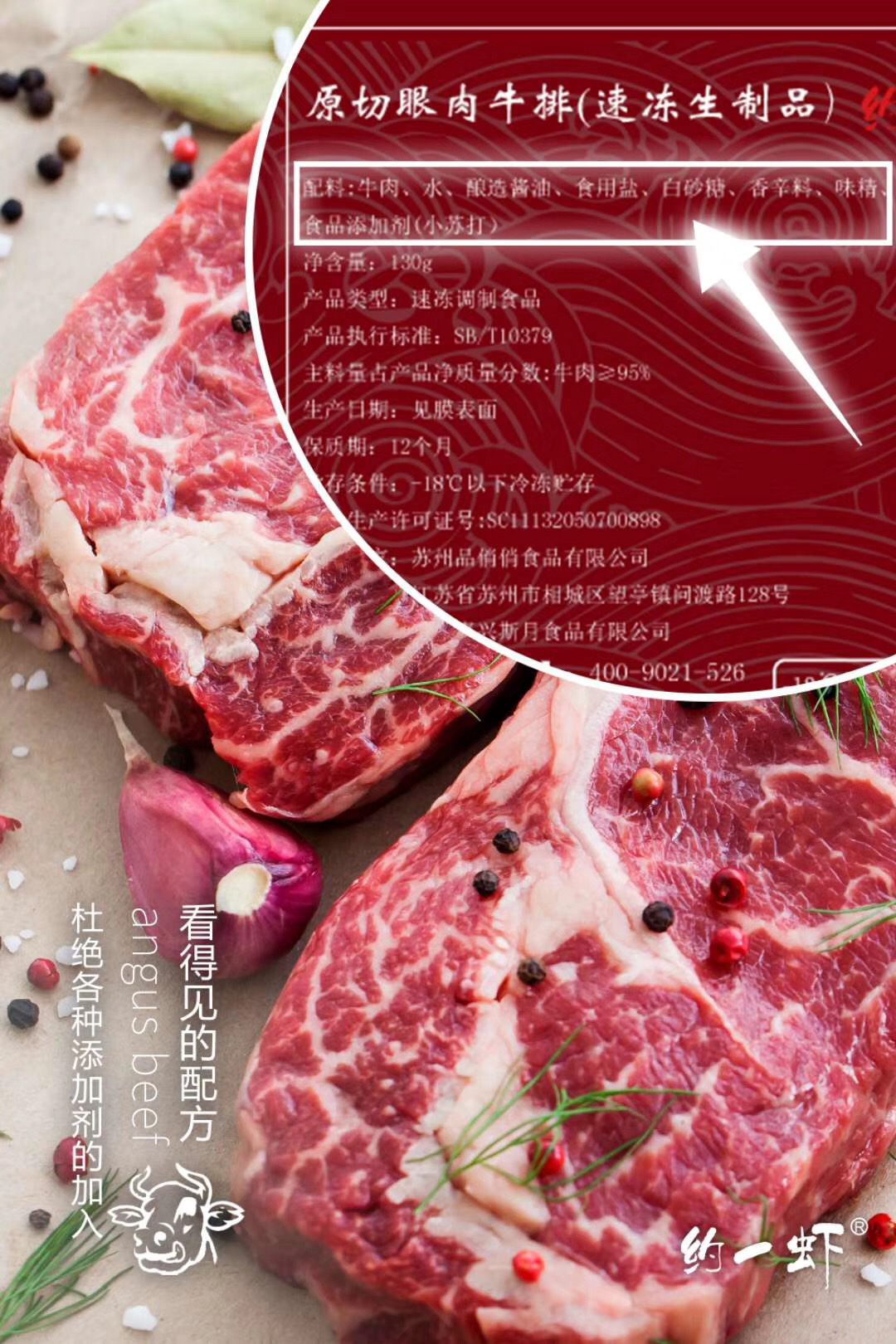 #牛排#越少的配方,越接近牛肉的本味!越少的配方,越减少甚至杜绝各种添加剂的加入。"约一虾"的牛排的配方表只加入了腌制牛排必须的:水(是一种溶剂,用来溶解后面的调料)和香辛料及部分调料,不含:转氨酶、卡拉胶、防腐剂等等,跟市面上大部分低价牛排完全不一样。