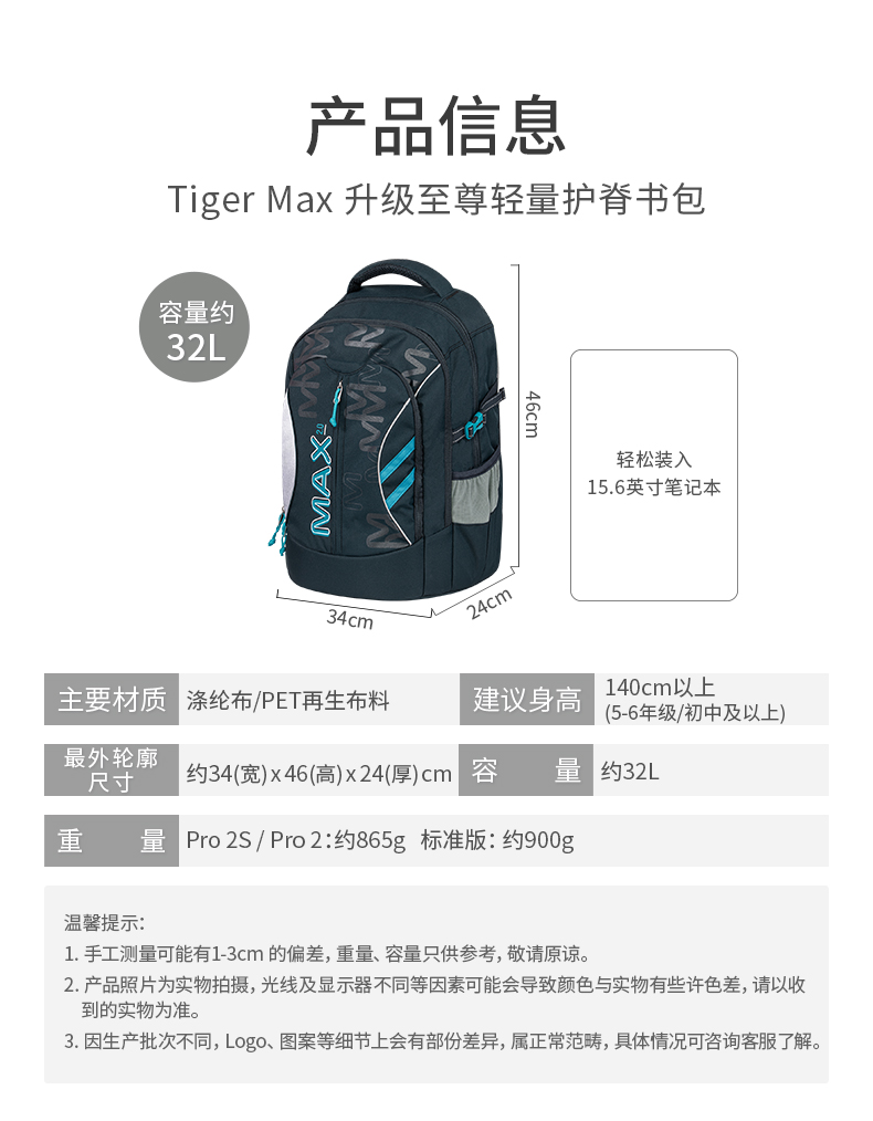 tigerfamily虎米 5-6年级/初中及以上男女书包小学生轻便初高中护脊减负双肩包升级至尊系列