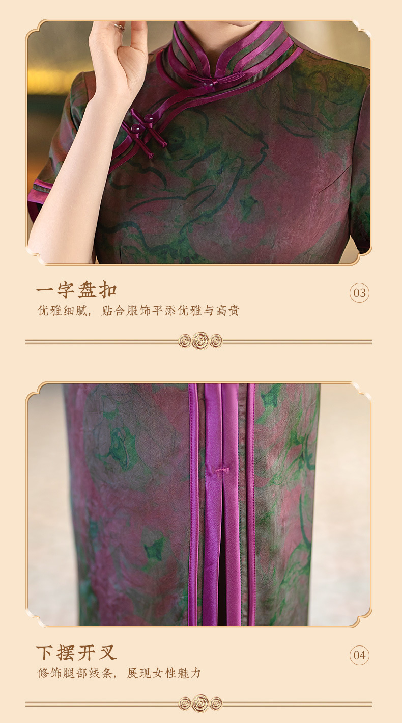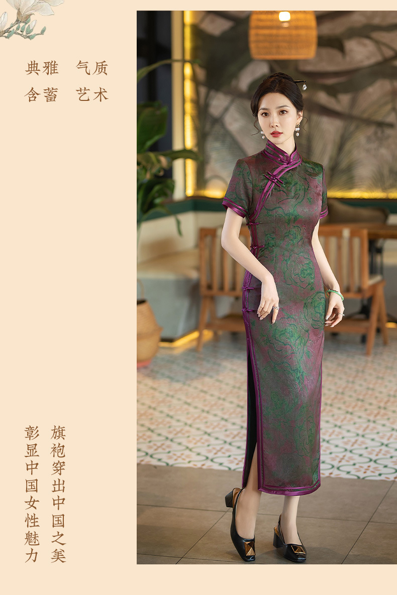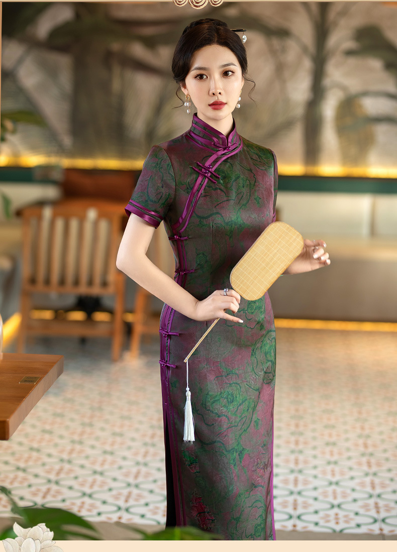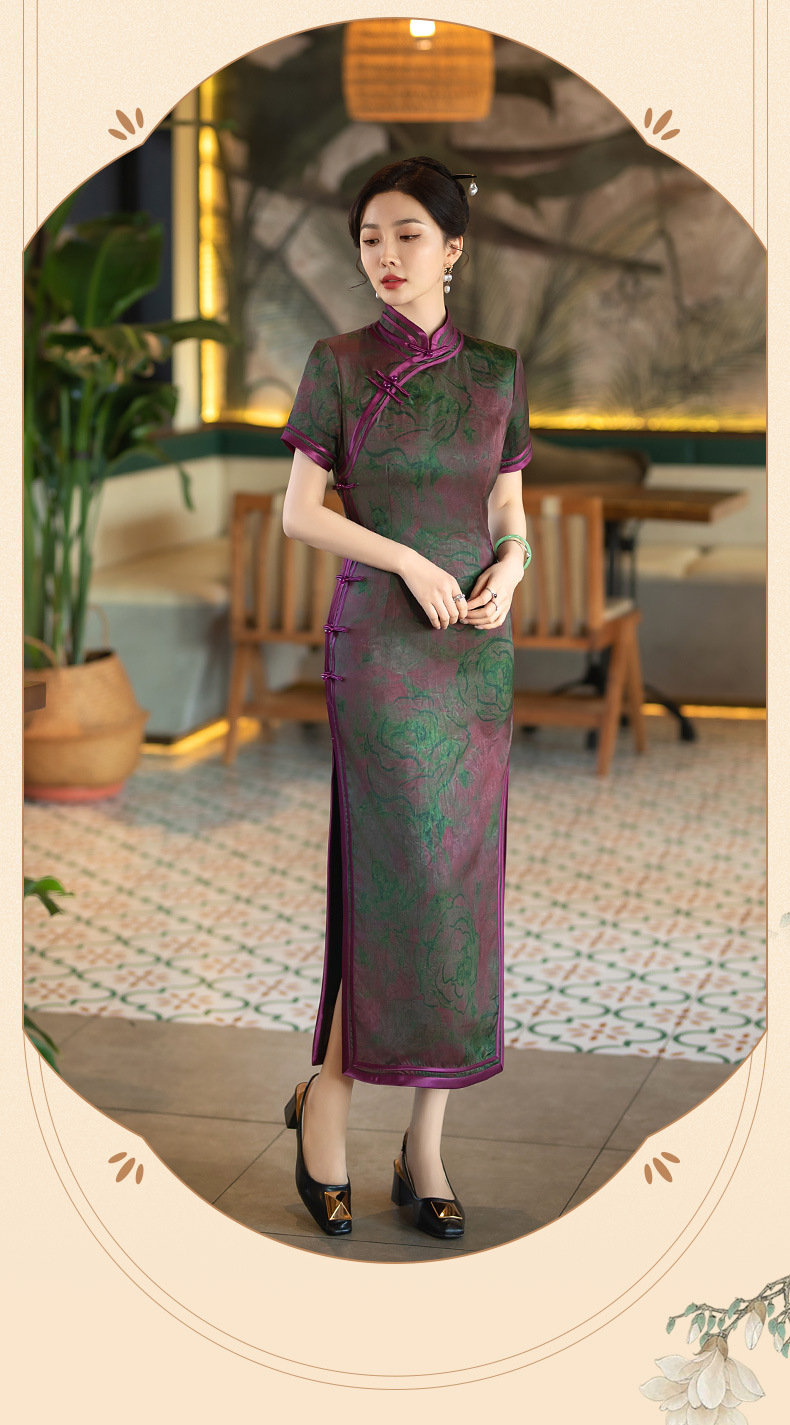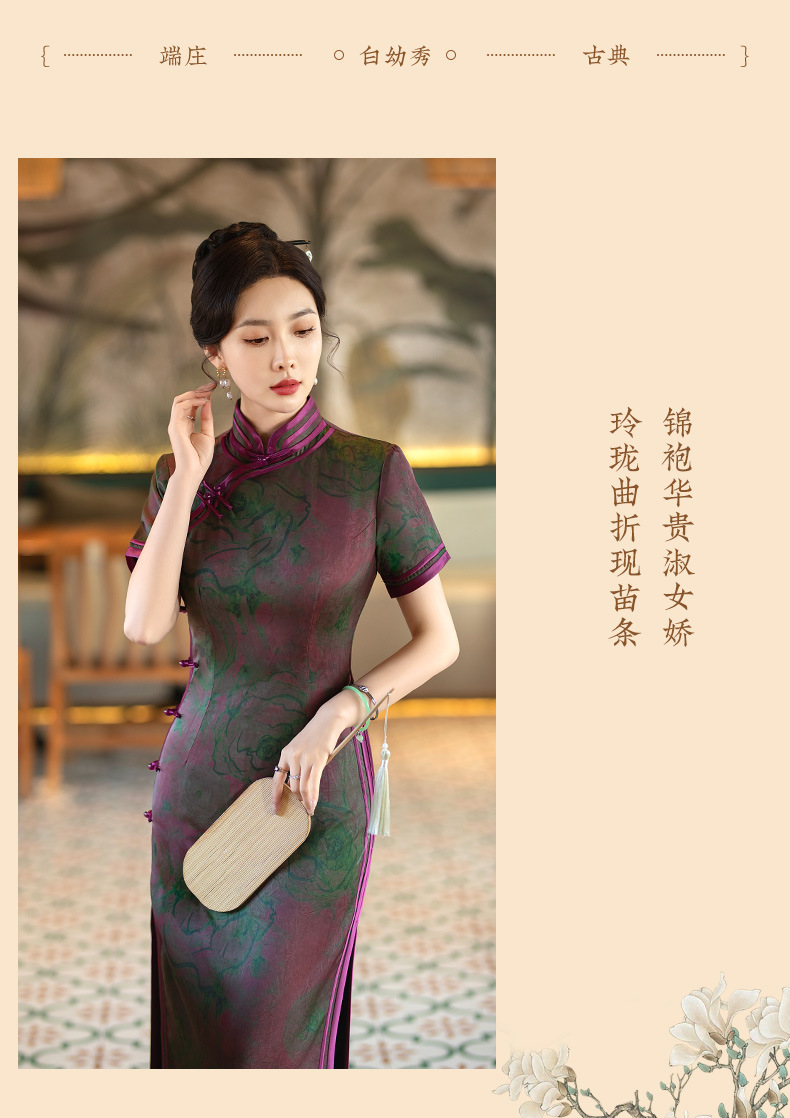 STF-C3186新款春夏季女士长款修身真丝旗袍中长款日常服C3186