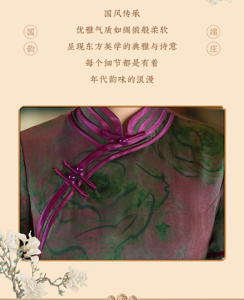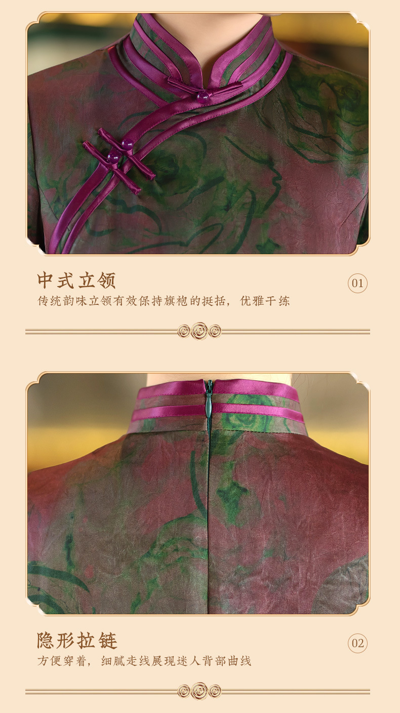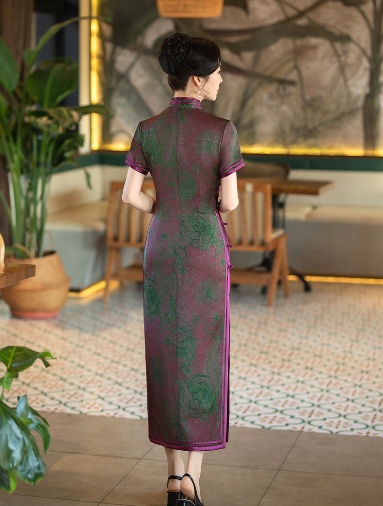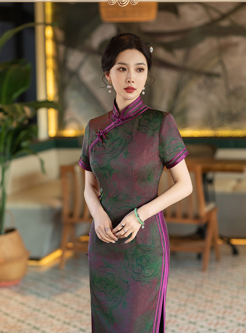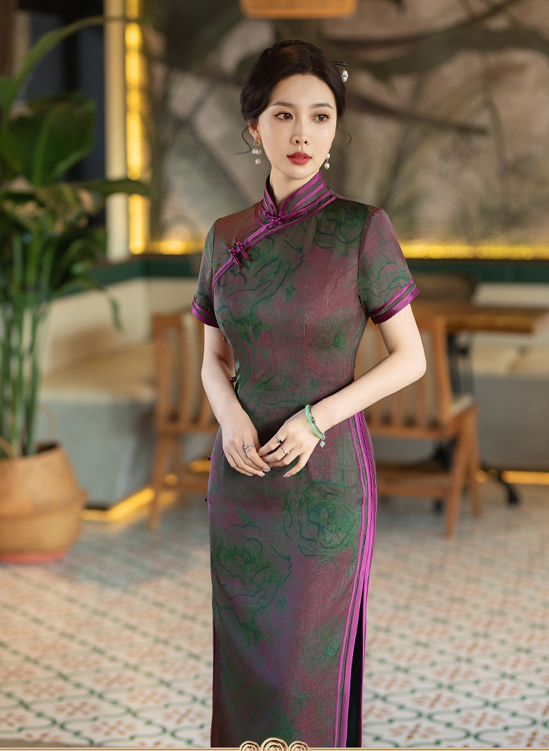 STF-C3186新款春夏季女士长款修身真丝旗袍中长款日常服C3186