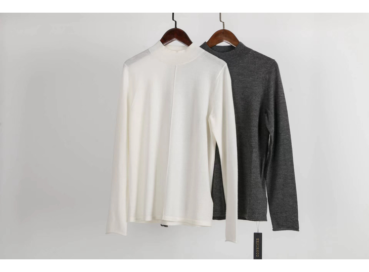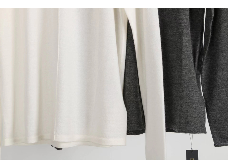 纯羊绒已经很舒服了,而我们这件还是“精纺”纱线非常细腻, 再说一句是“康赛妮”品牌的纱线。