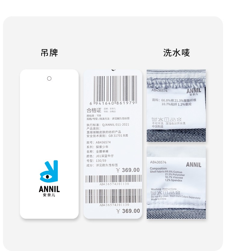 男童防褪色牛仔单裤安奈儿童装实体店同款AB436574