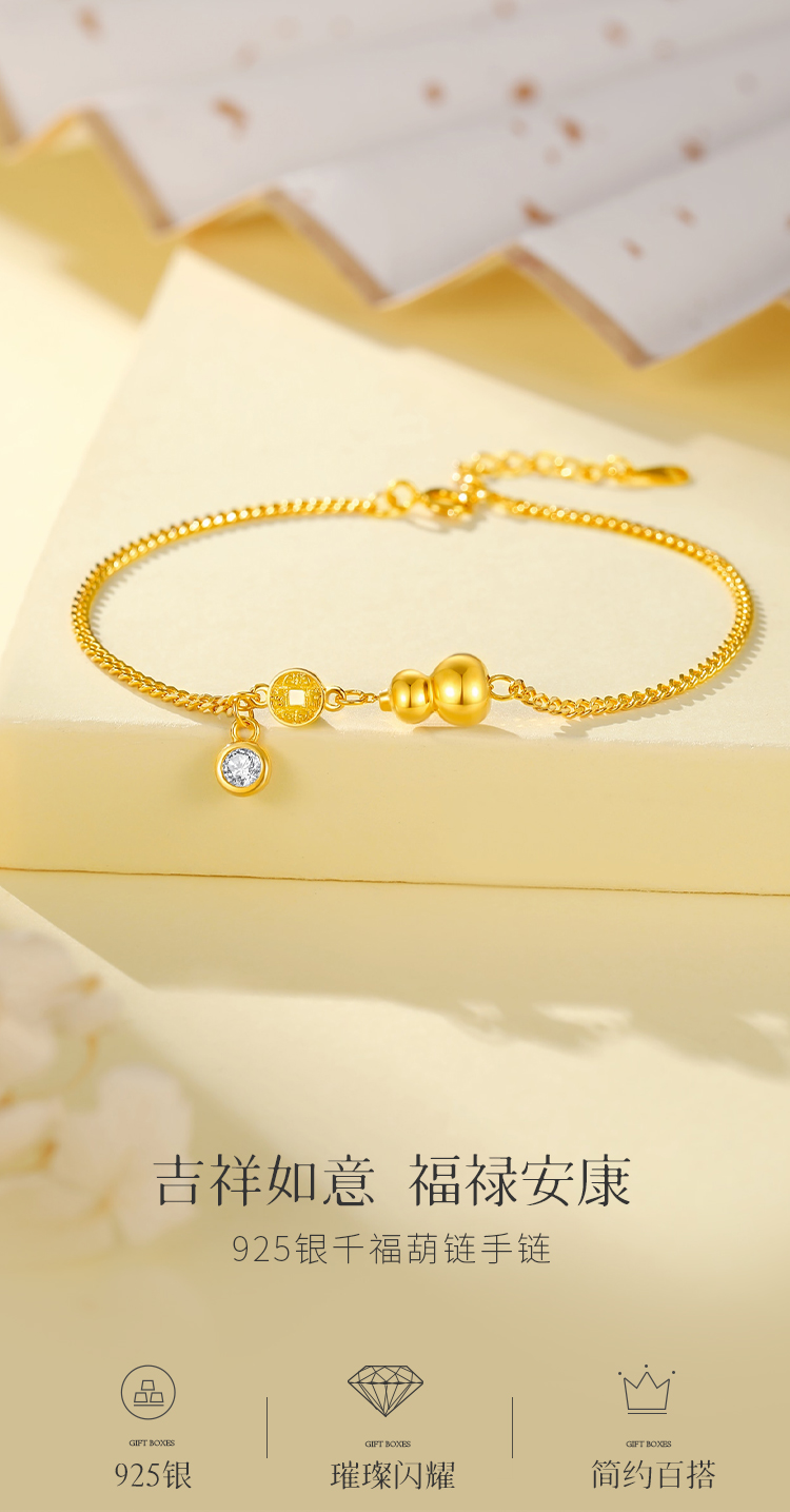 Winy S925银千福葫链手链送女朋友/老婆/闺蜜生日节日礼物