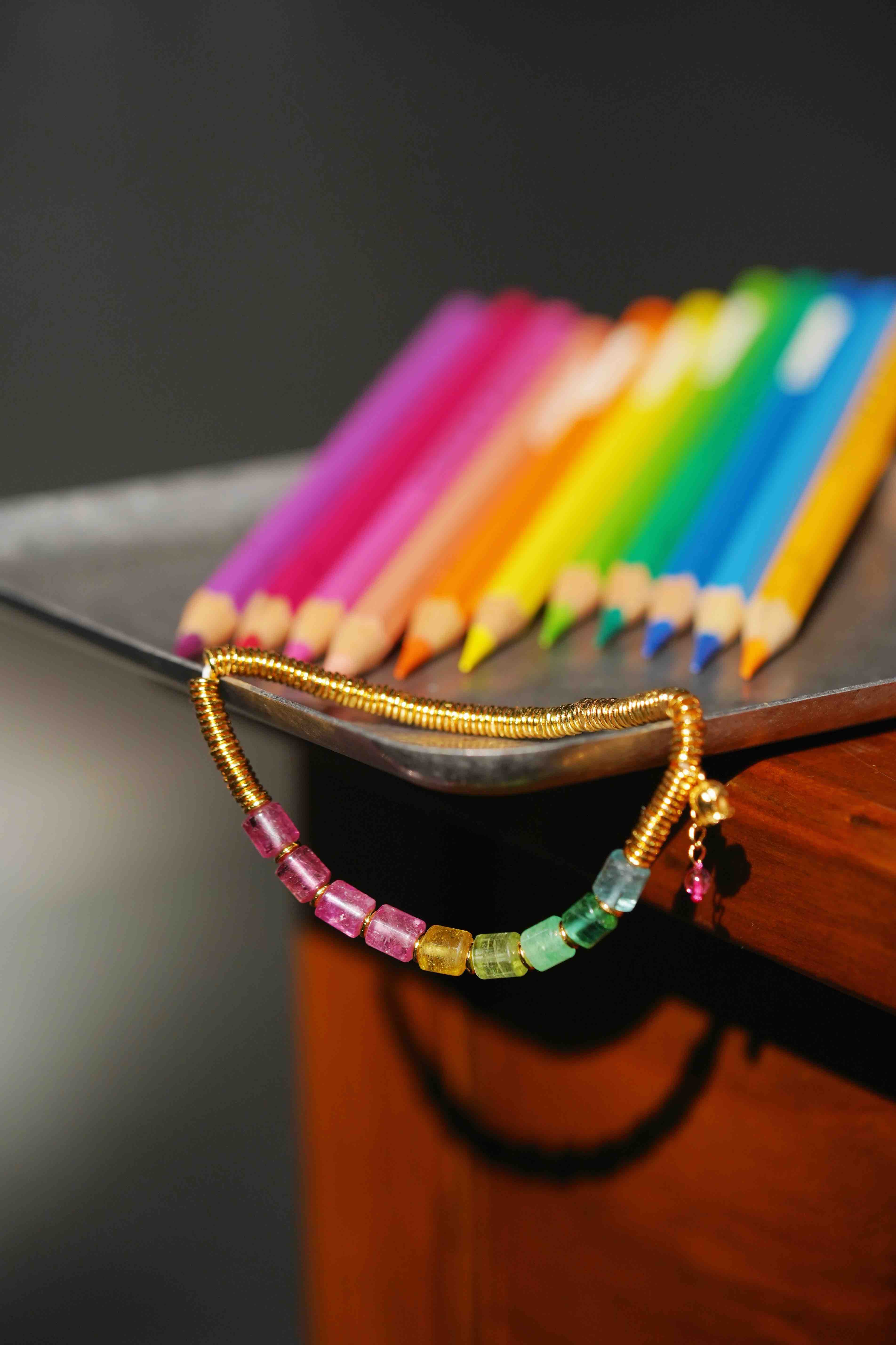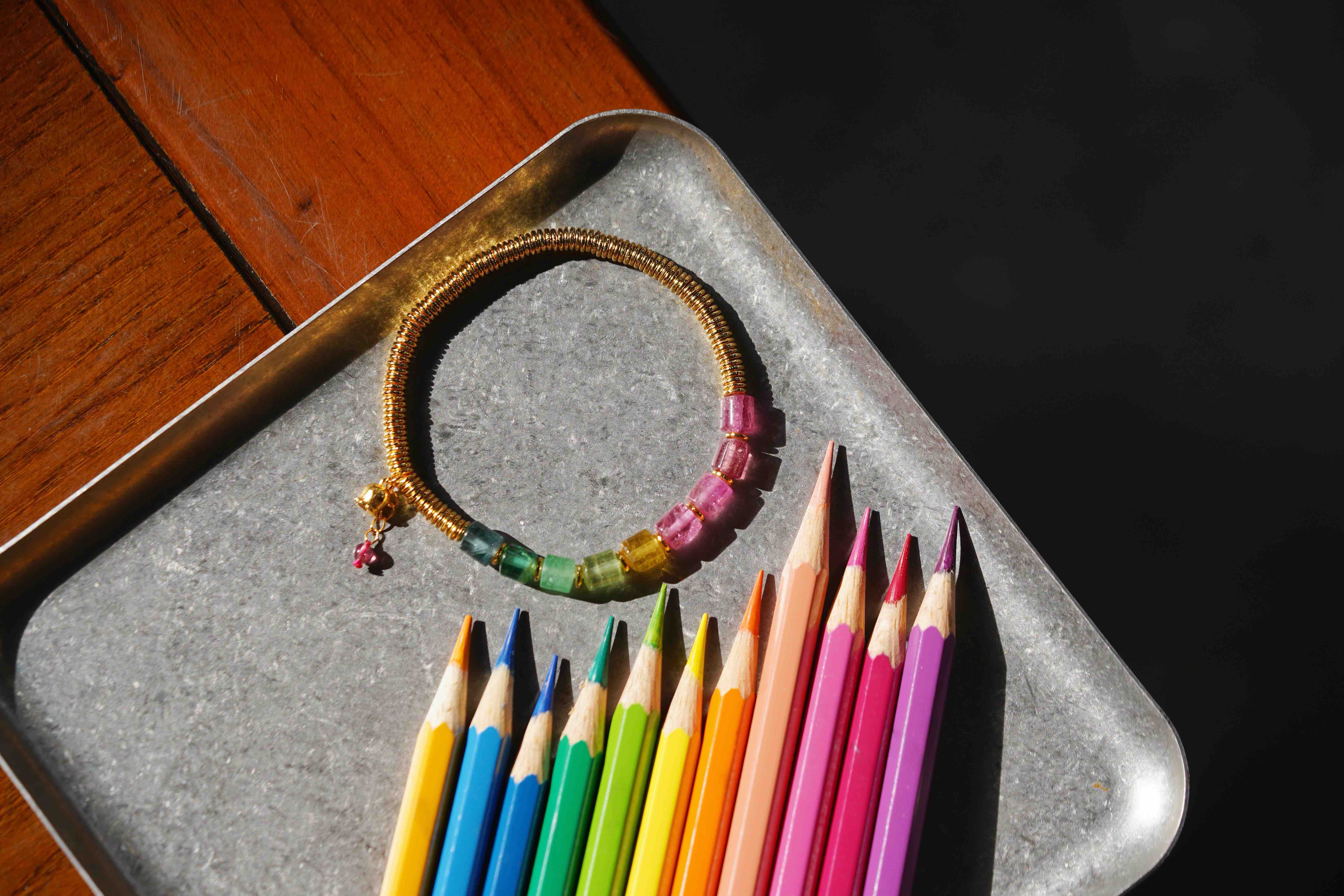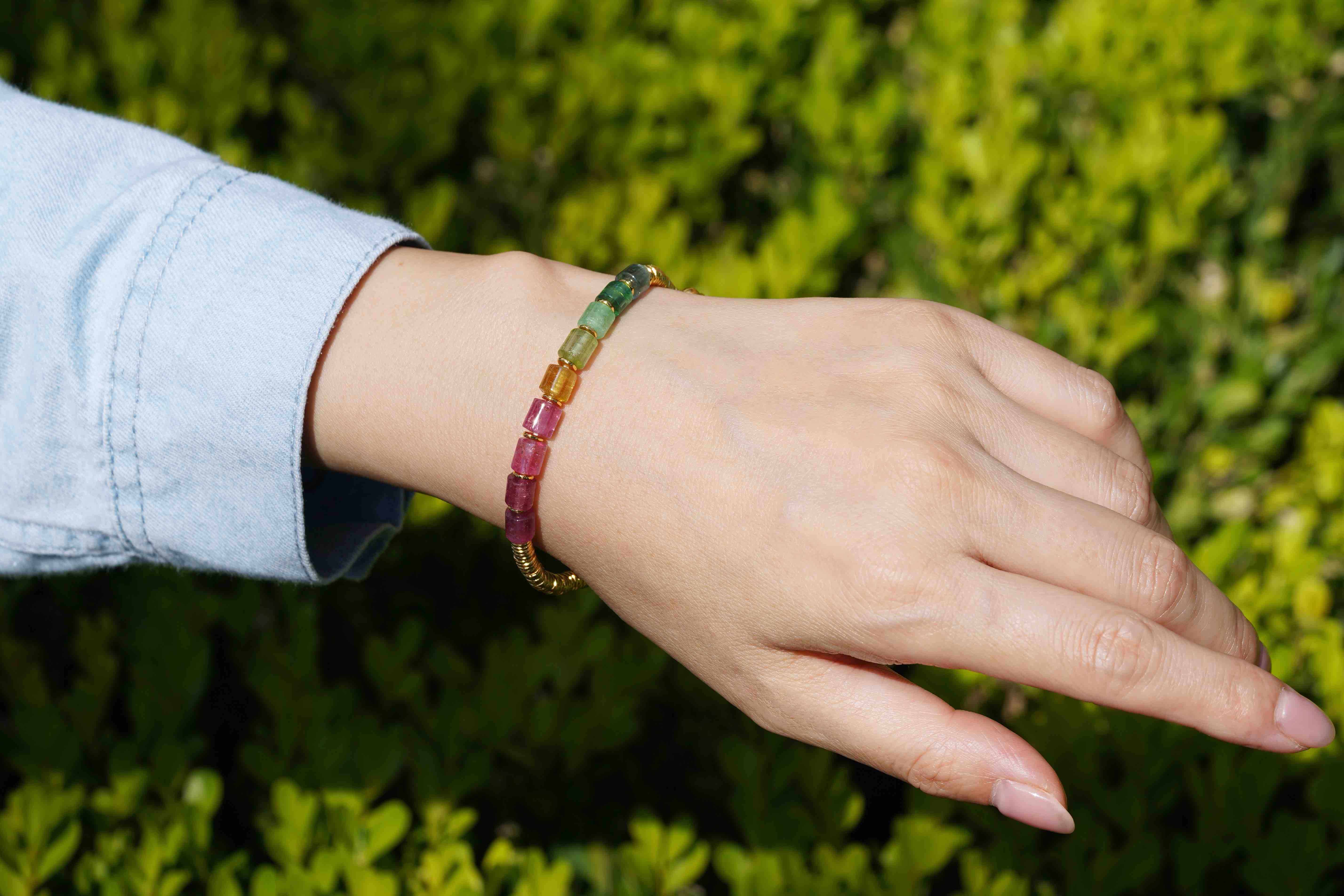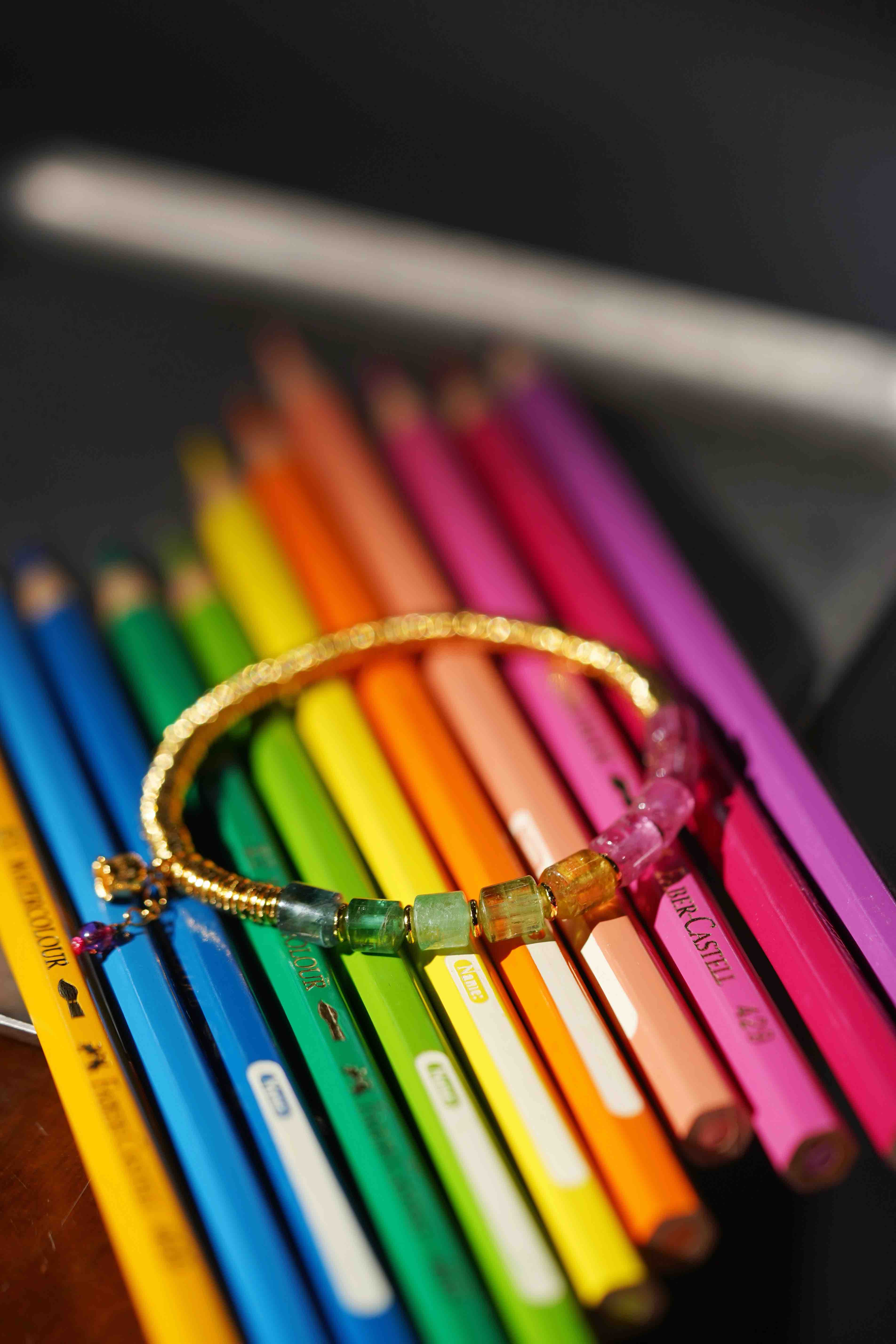 彩虹碧玺银环手串