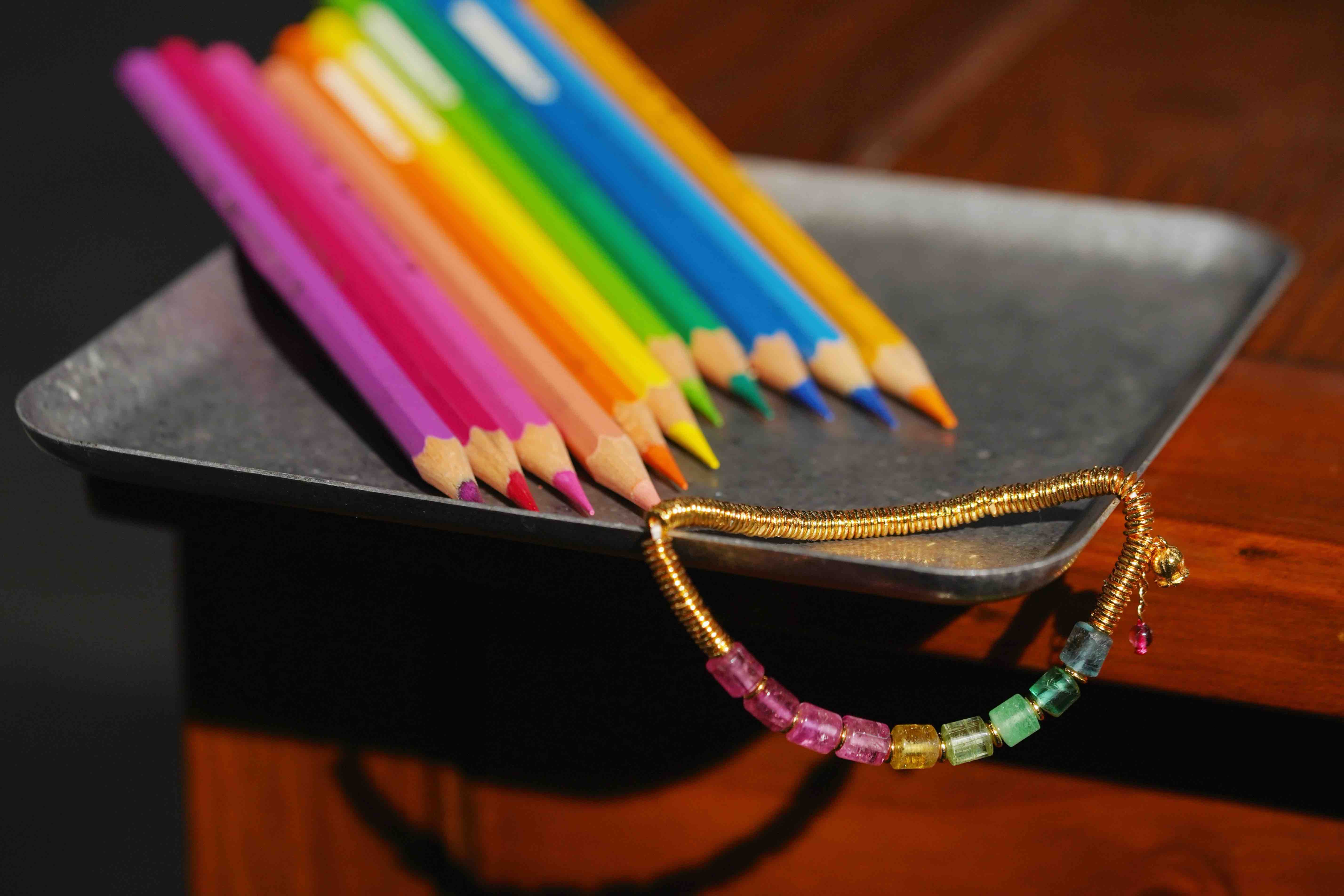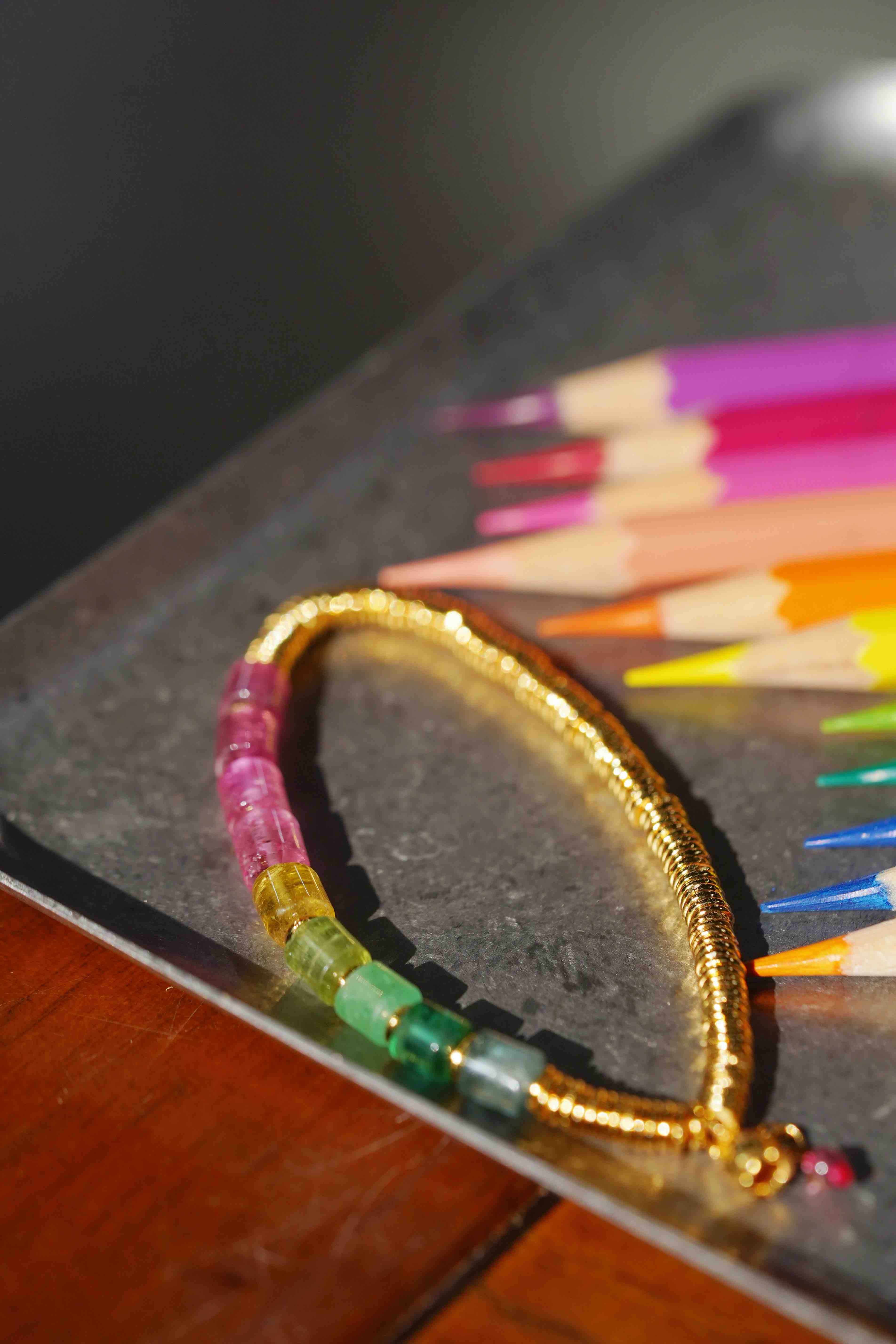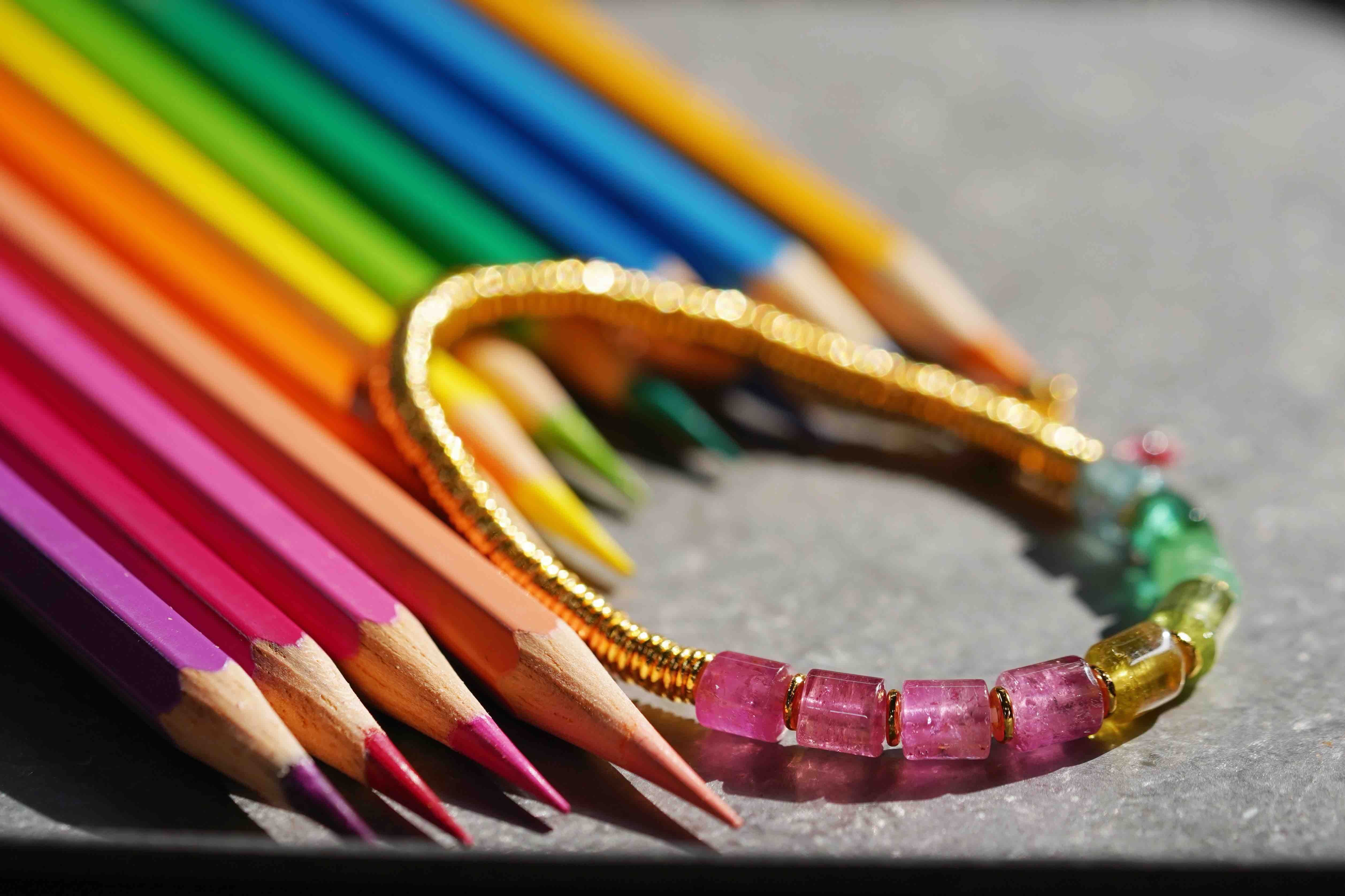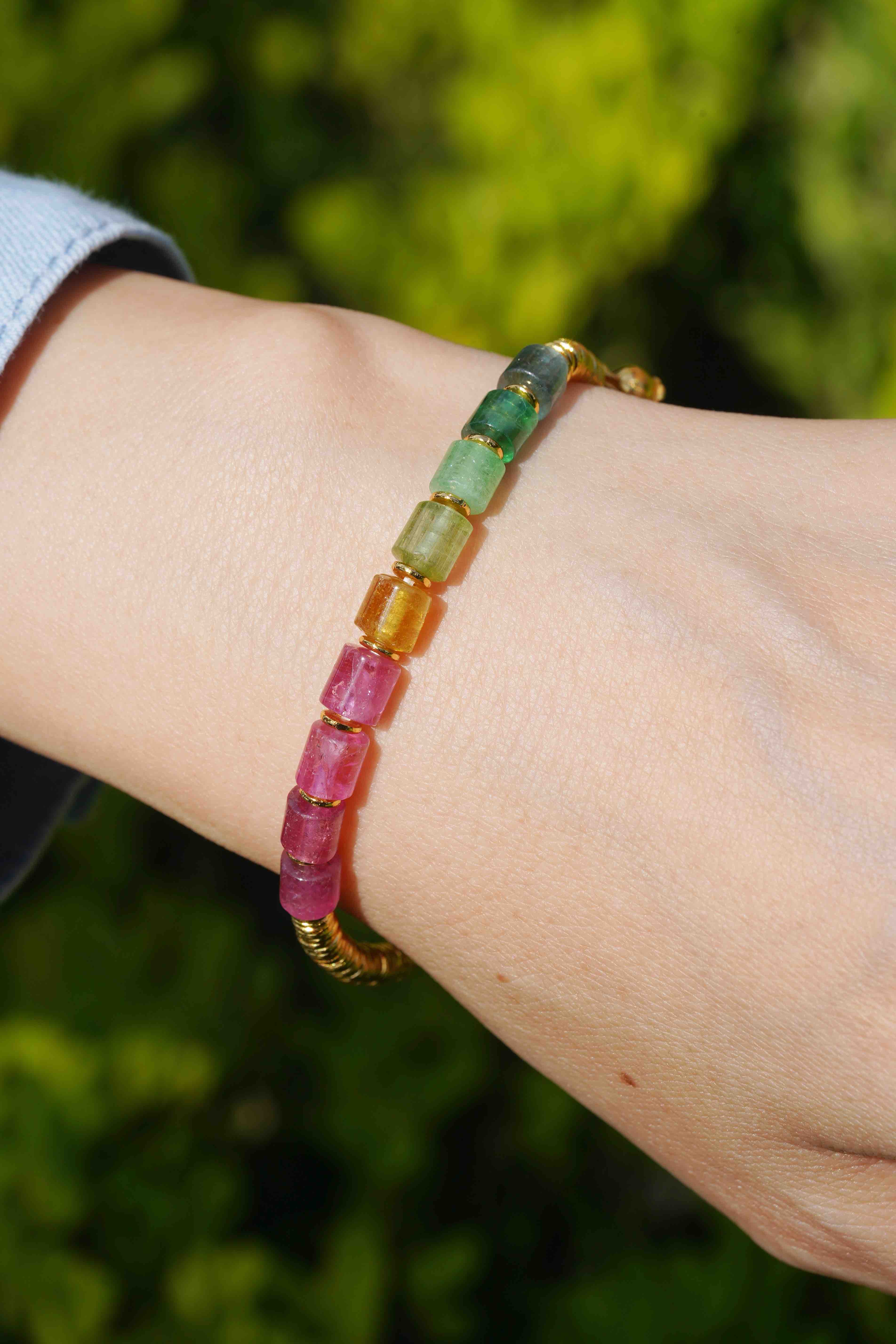 彩虹碧玺银环手串