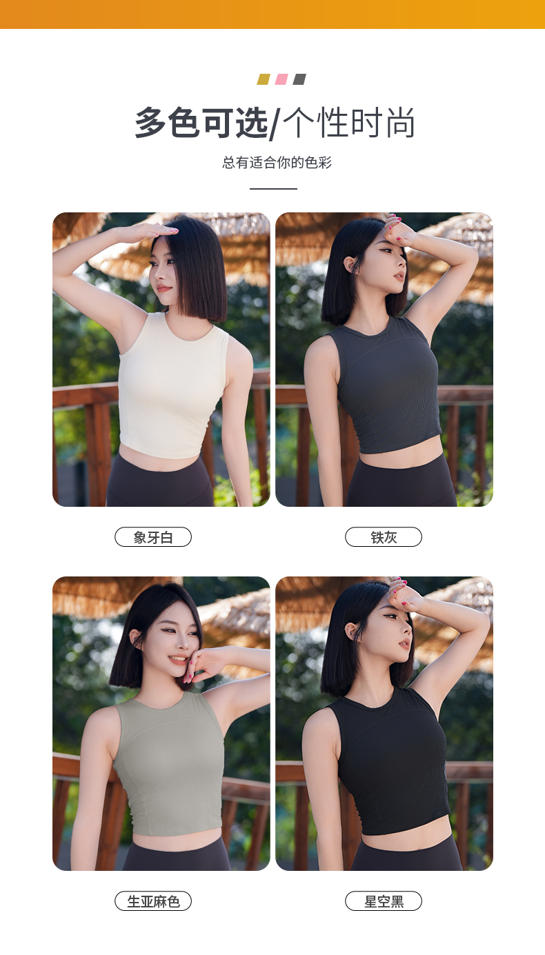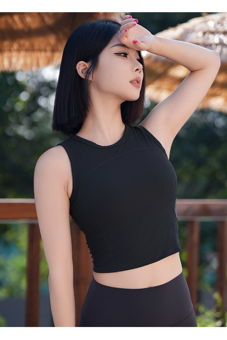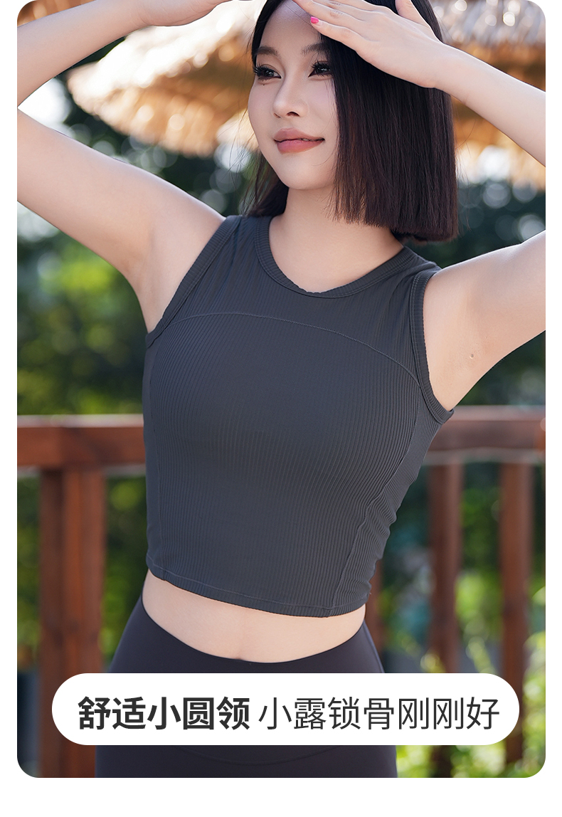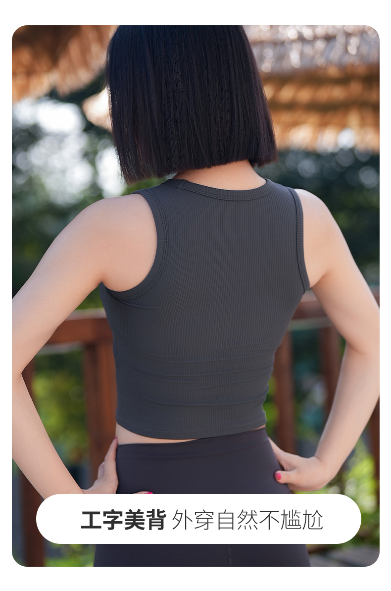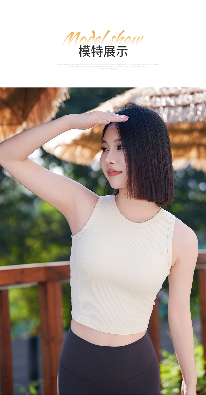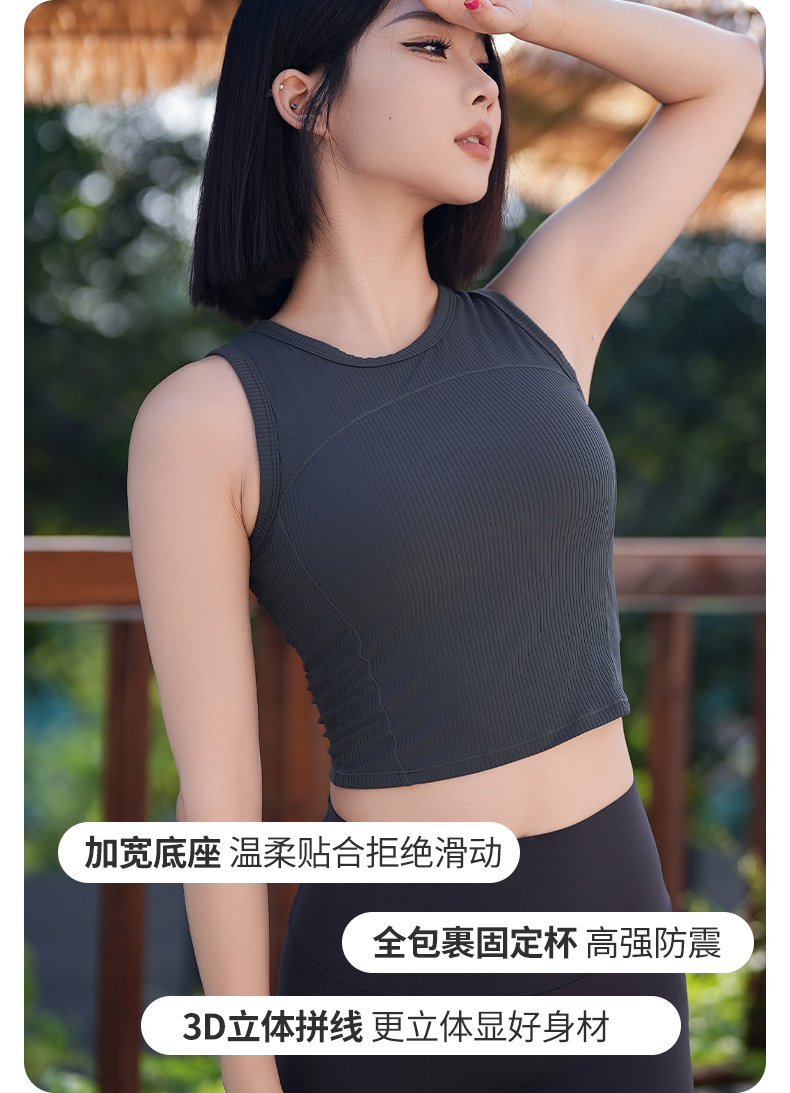 跃牌【安琪拉系列】速干带胸垫防震螺纹瑜伽背心BX035