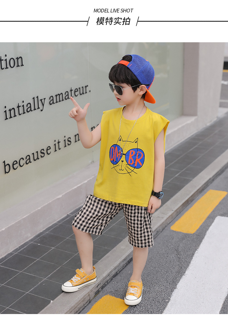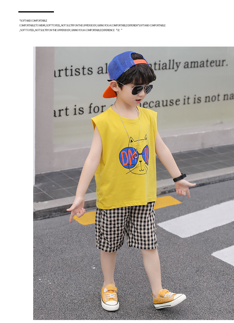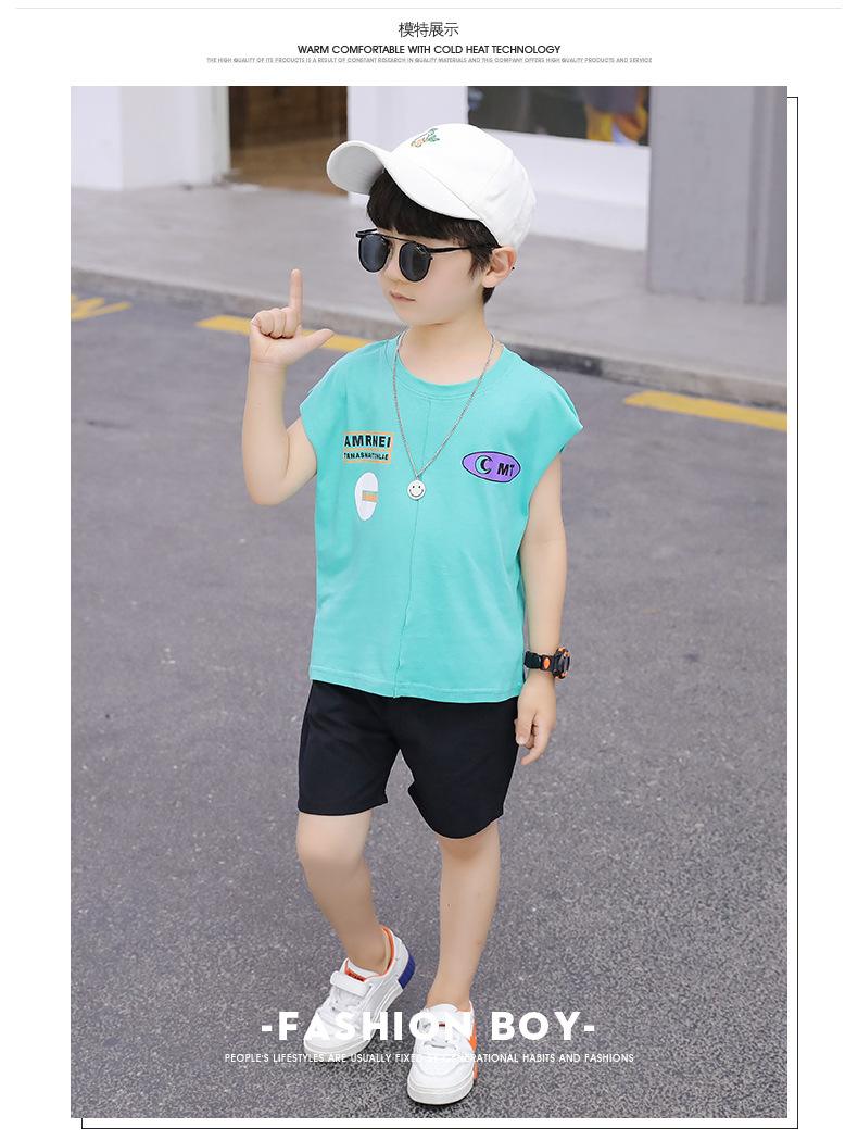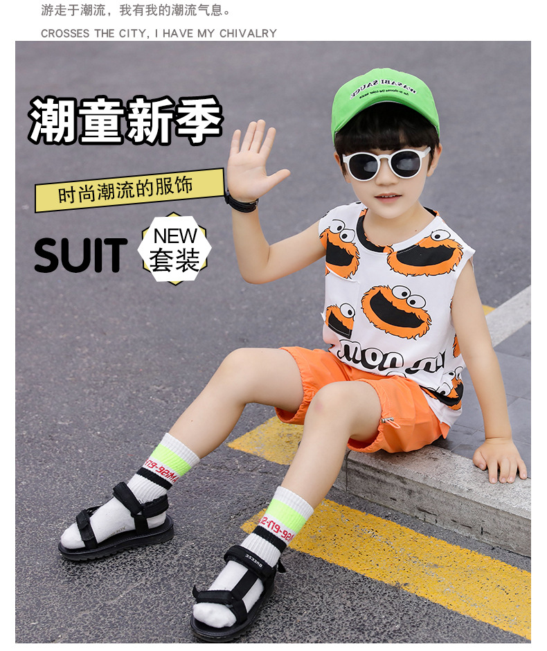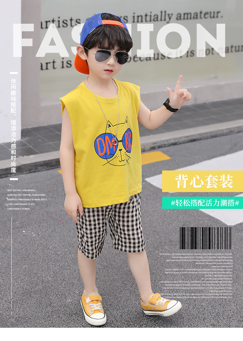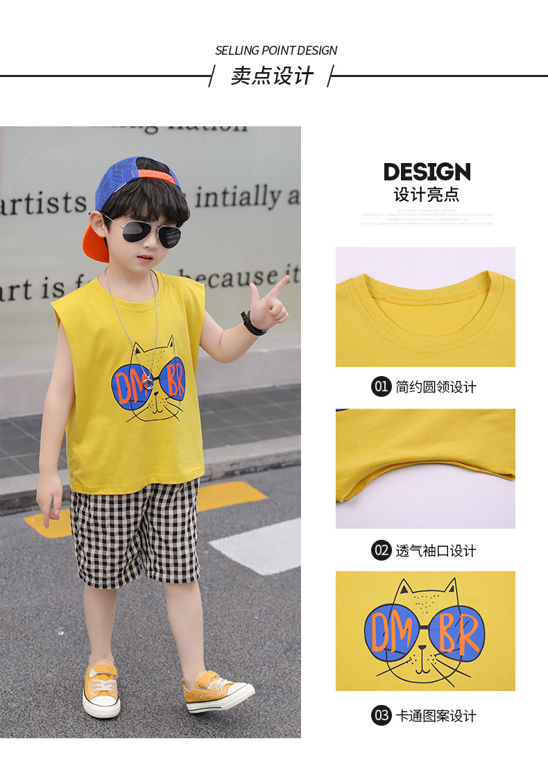 XR-475A夏新款儿童运动套装 卡通无袖背心中小童韩版潮