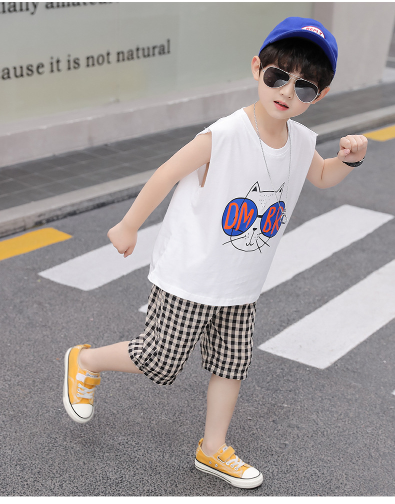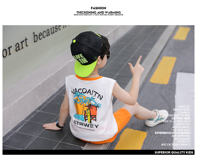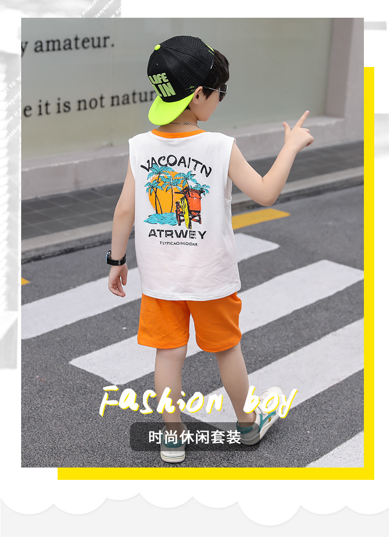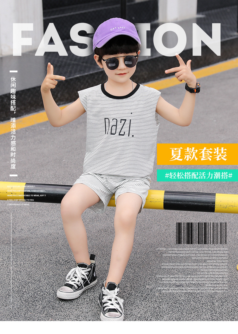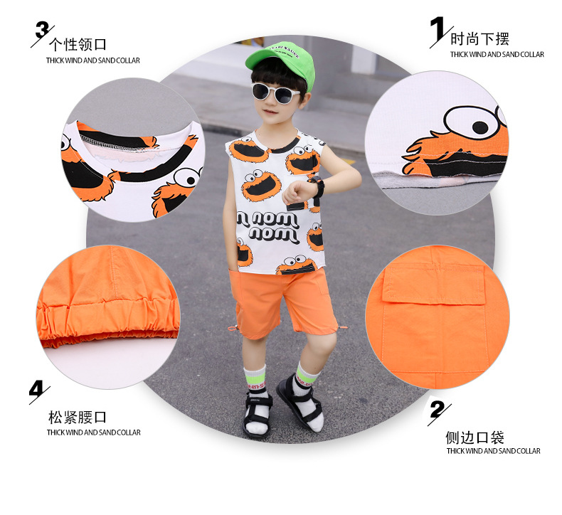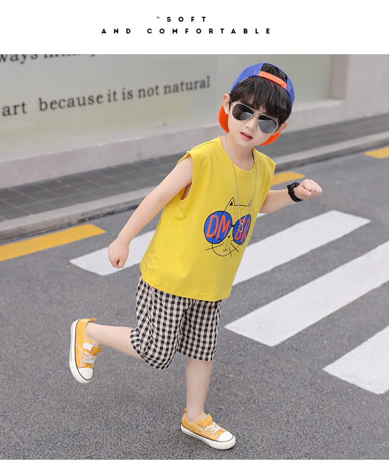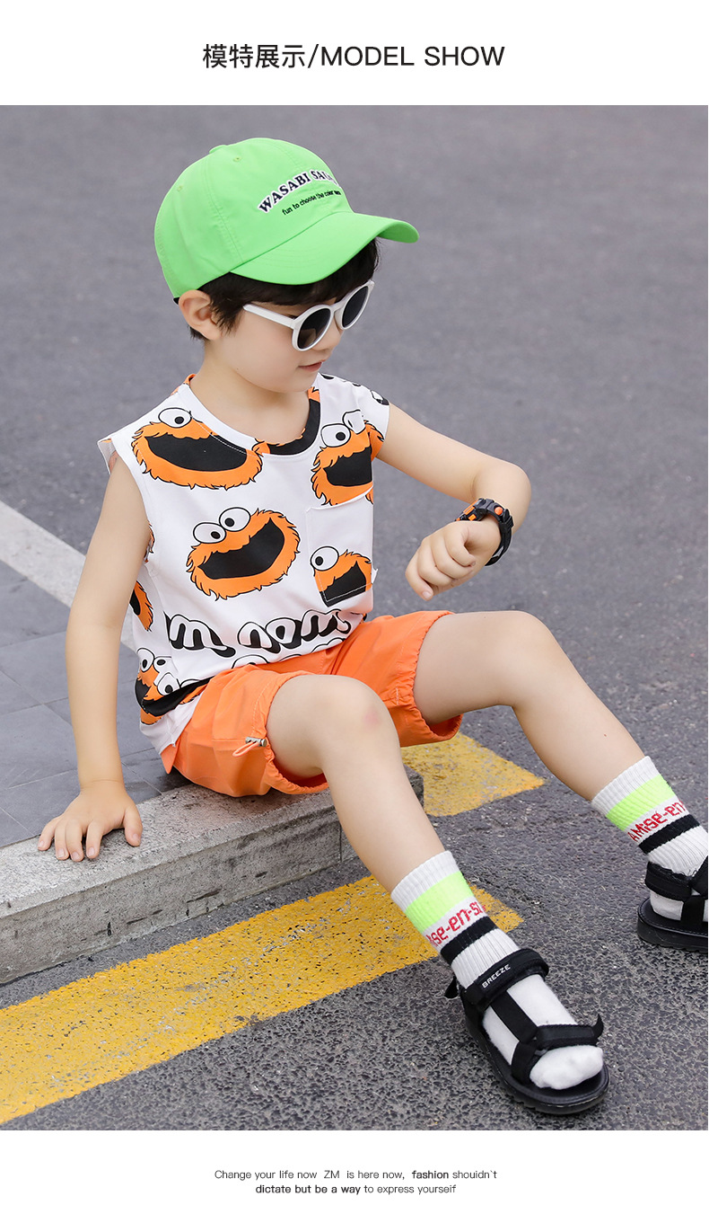XR-475A夏新款儿童运动套装 卡通无袖背心中小童韩版潮