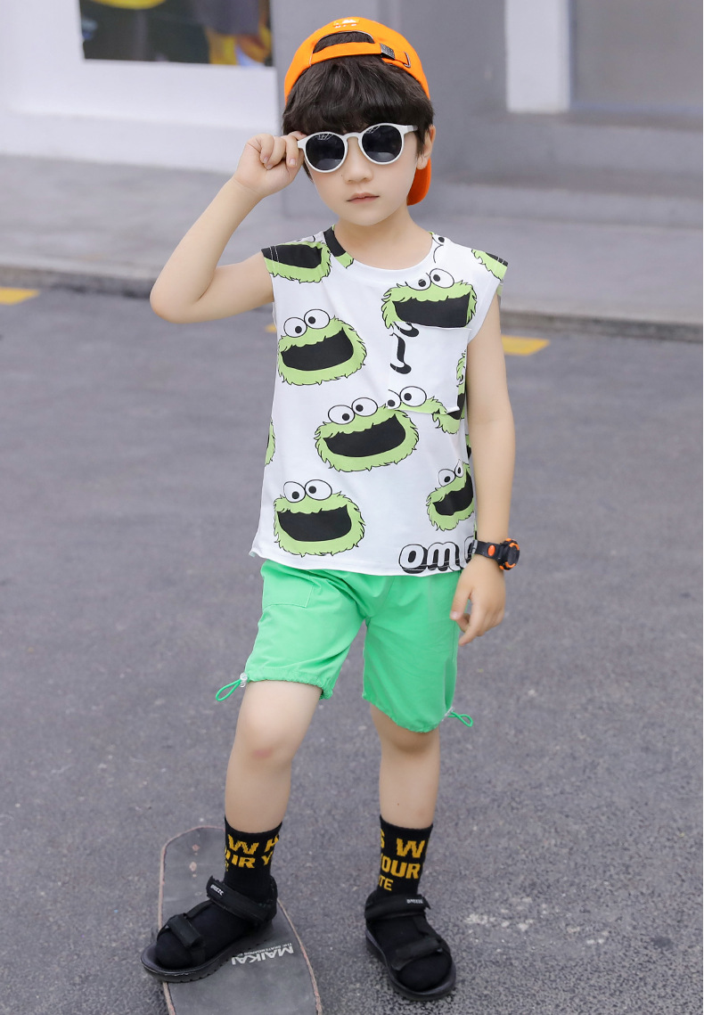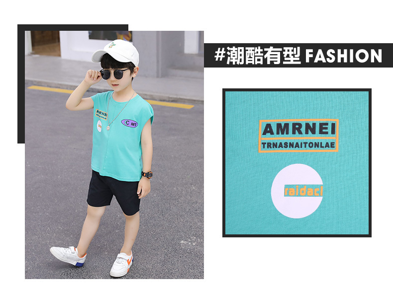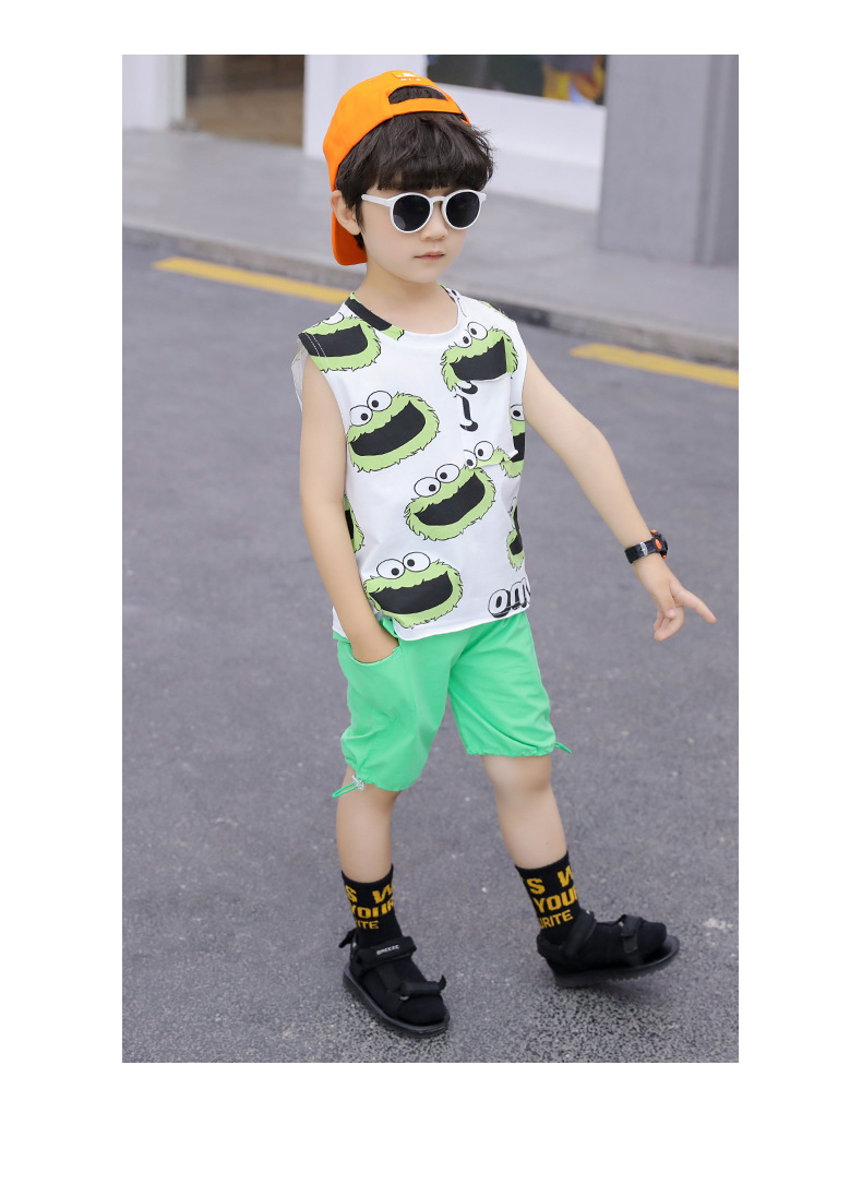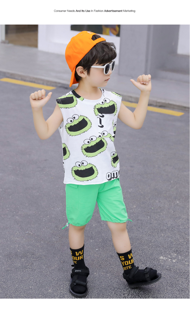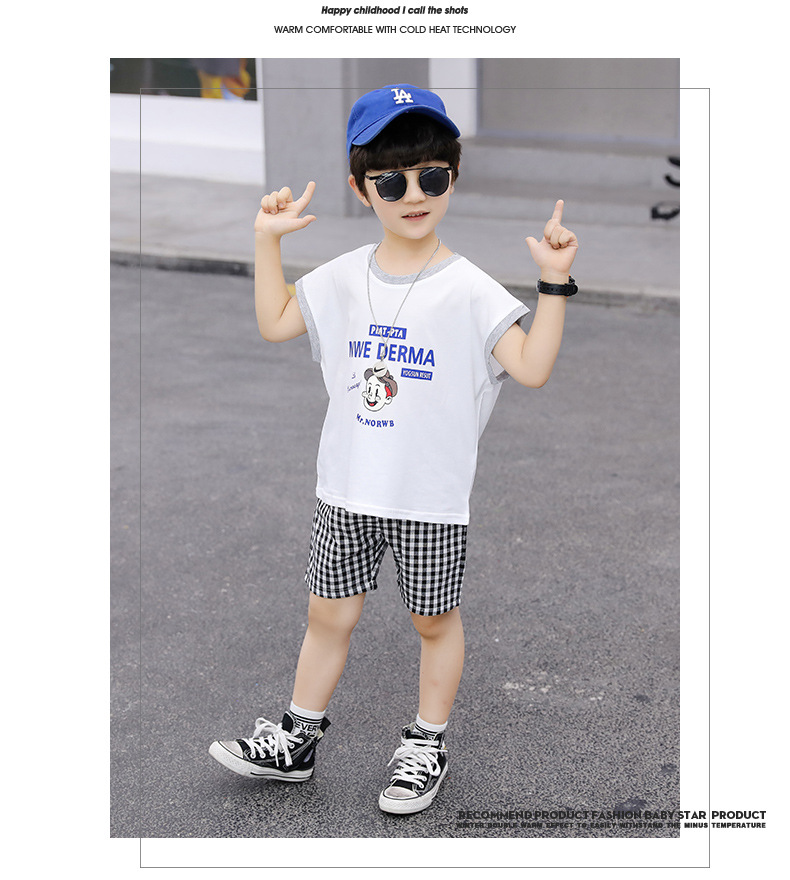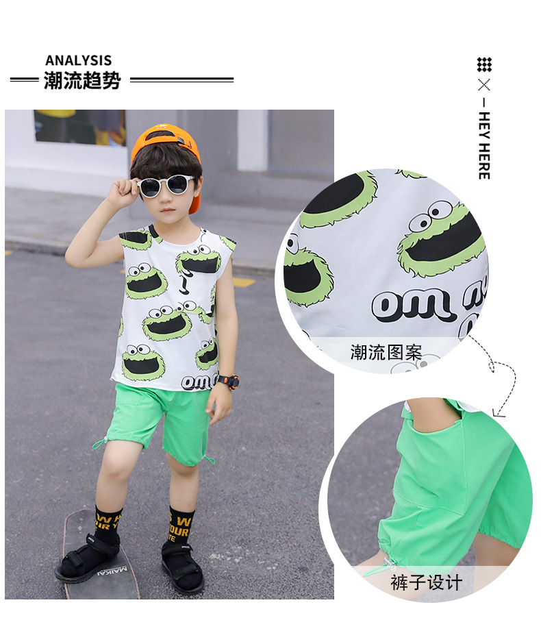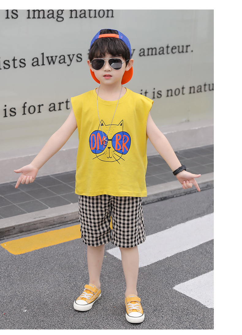 XR-475A夏新款儿童运动套装 卡通无袖背心中小童韩版潮