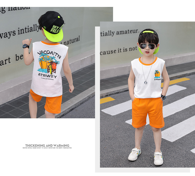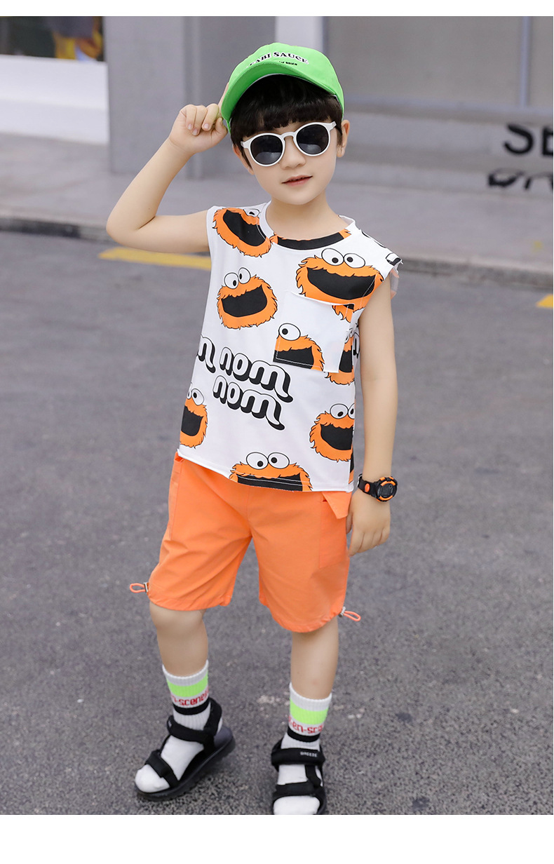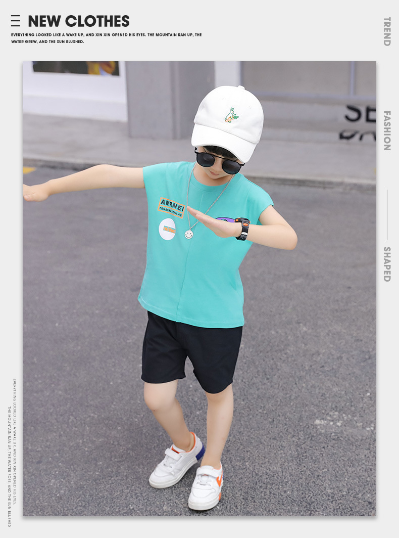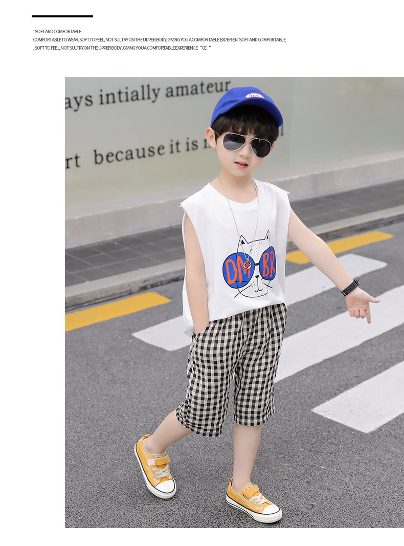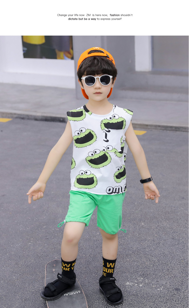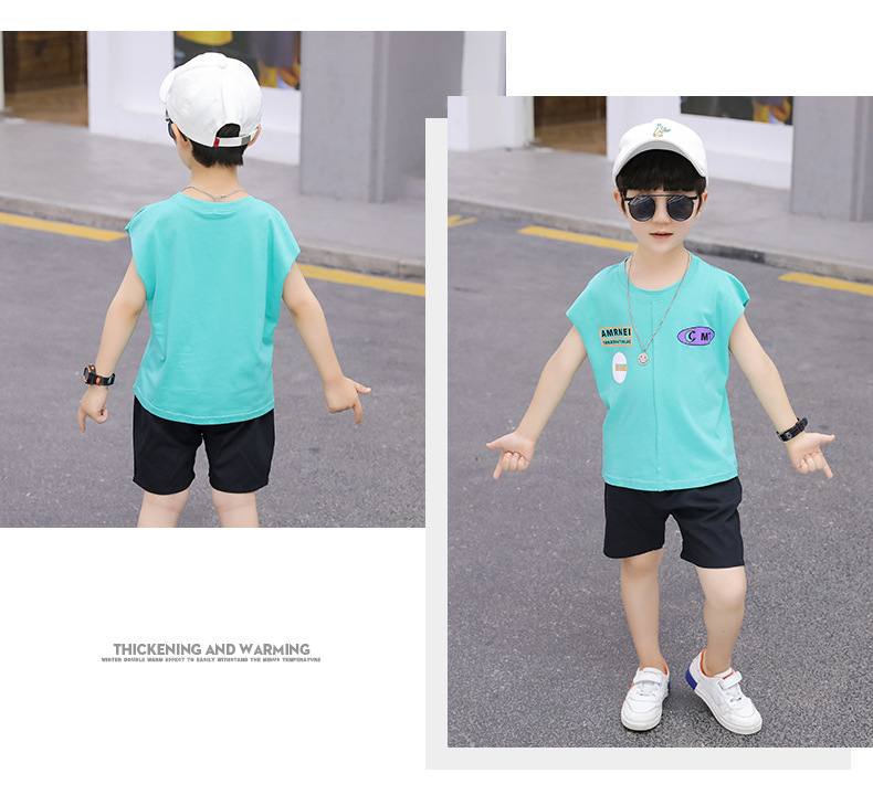 XR-475A夏新款儿童运动套装 卡通无袖背心中小童韩版潮