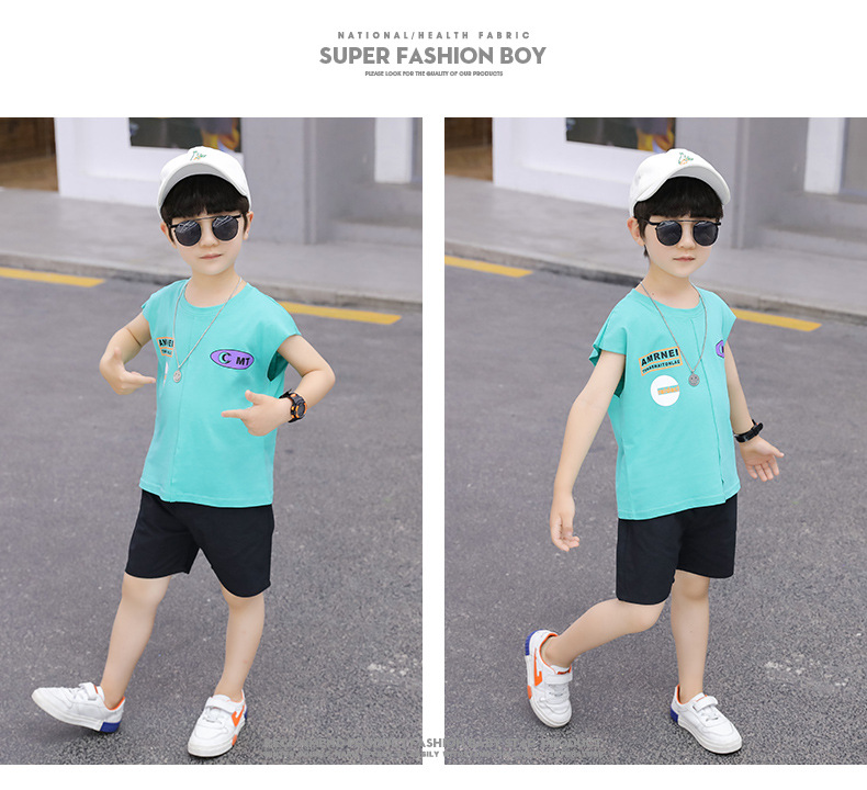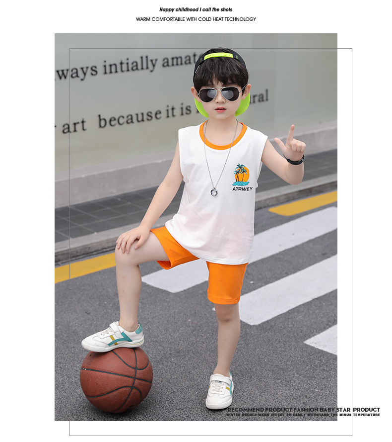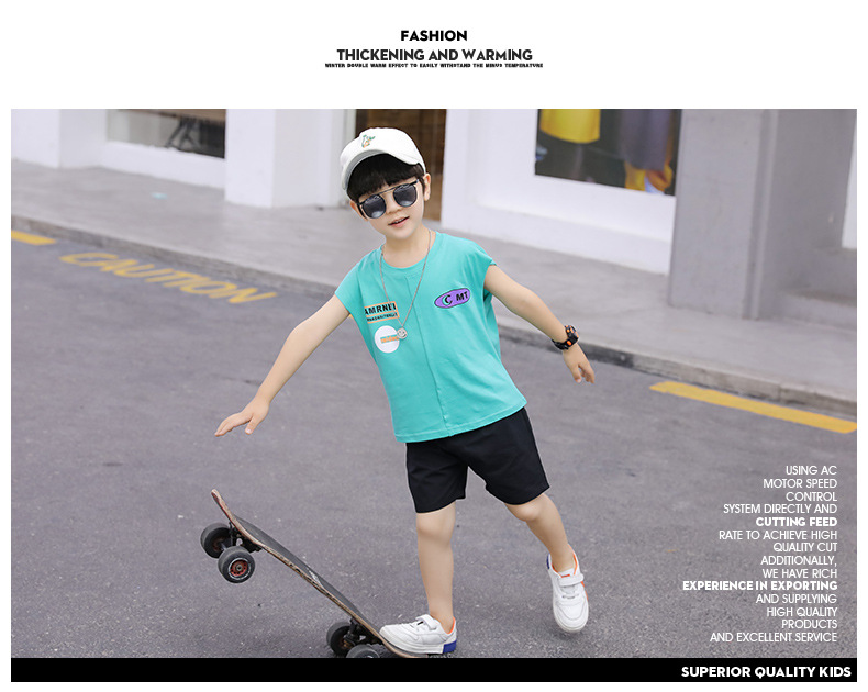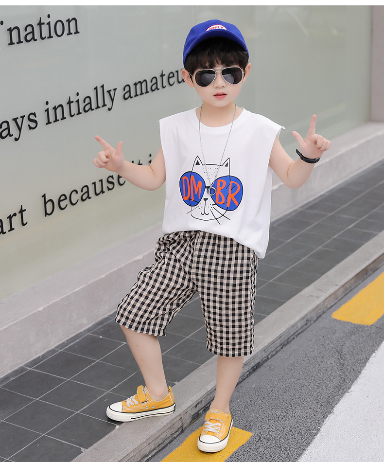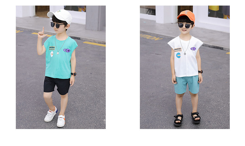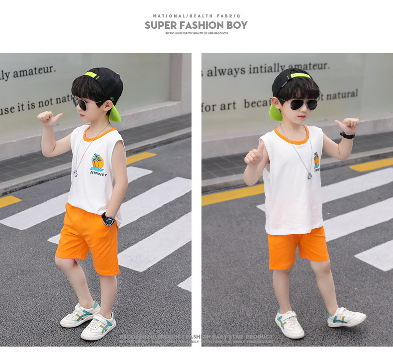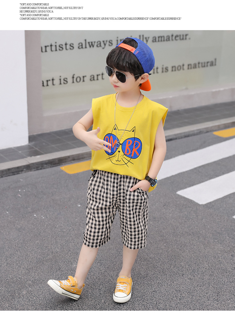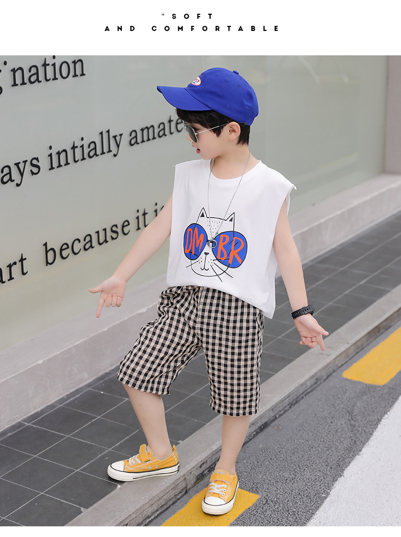 XR-475A夏新款儿童运动套装 卡通无袖背心中小童韩版潮