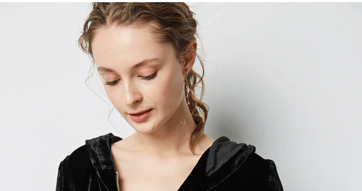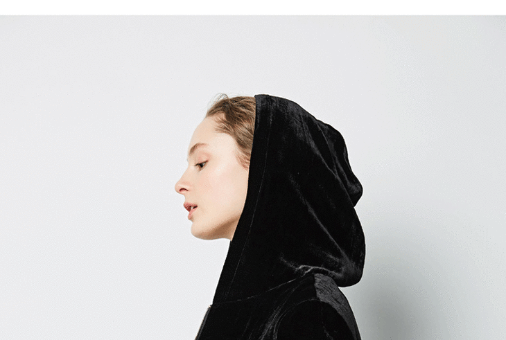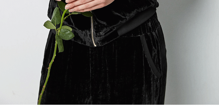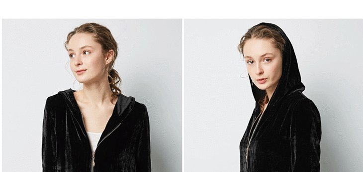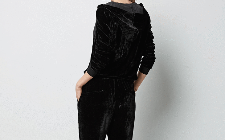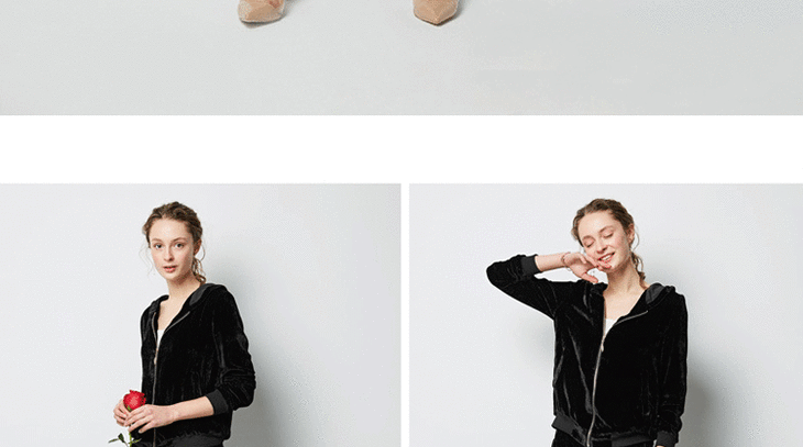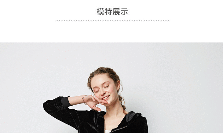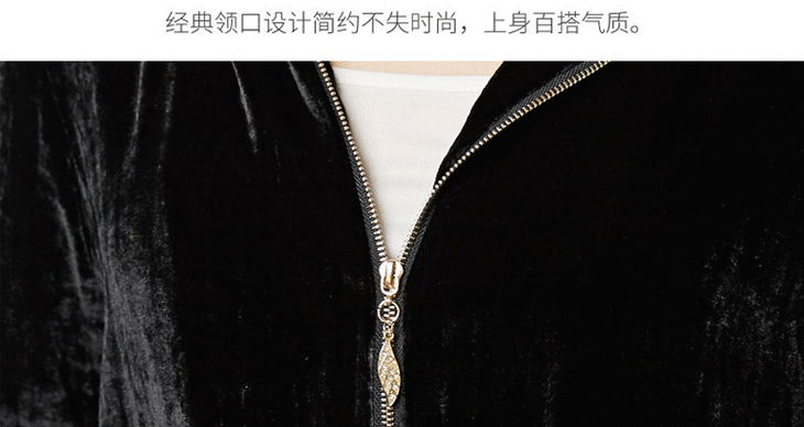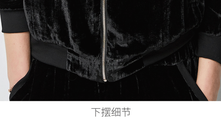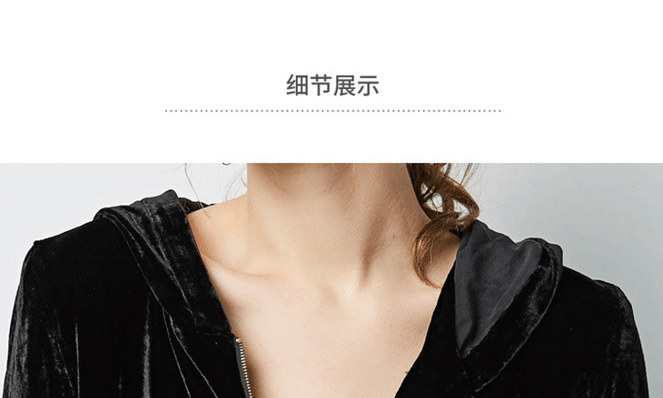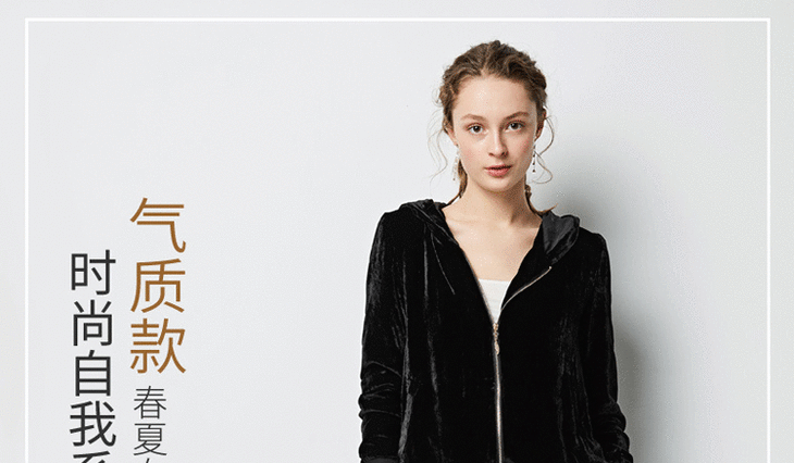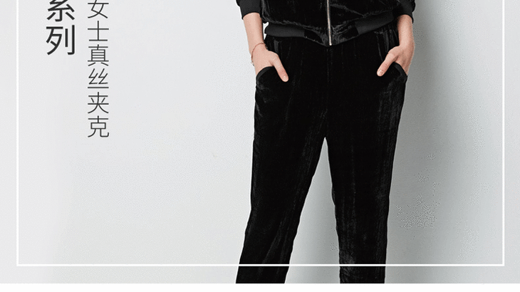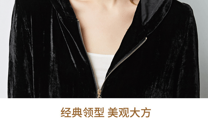 丁摩 春秋真丝丝绒七分袖桑蚕丝连帽卫衣直筒卫裤套装两件套女20-214DL699