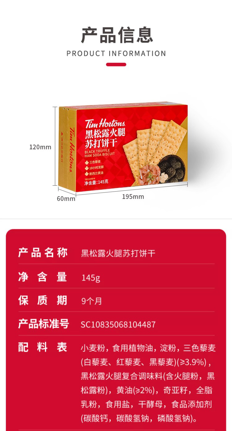 中国Tims黑松露火腿苏打饼干盒装-145g