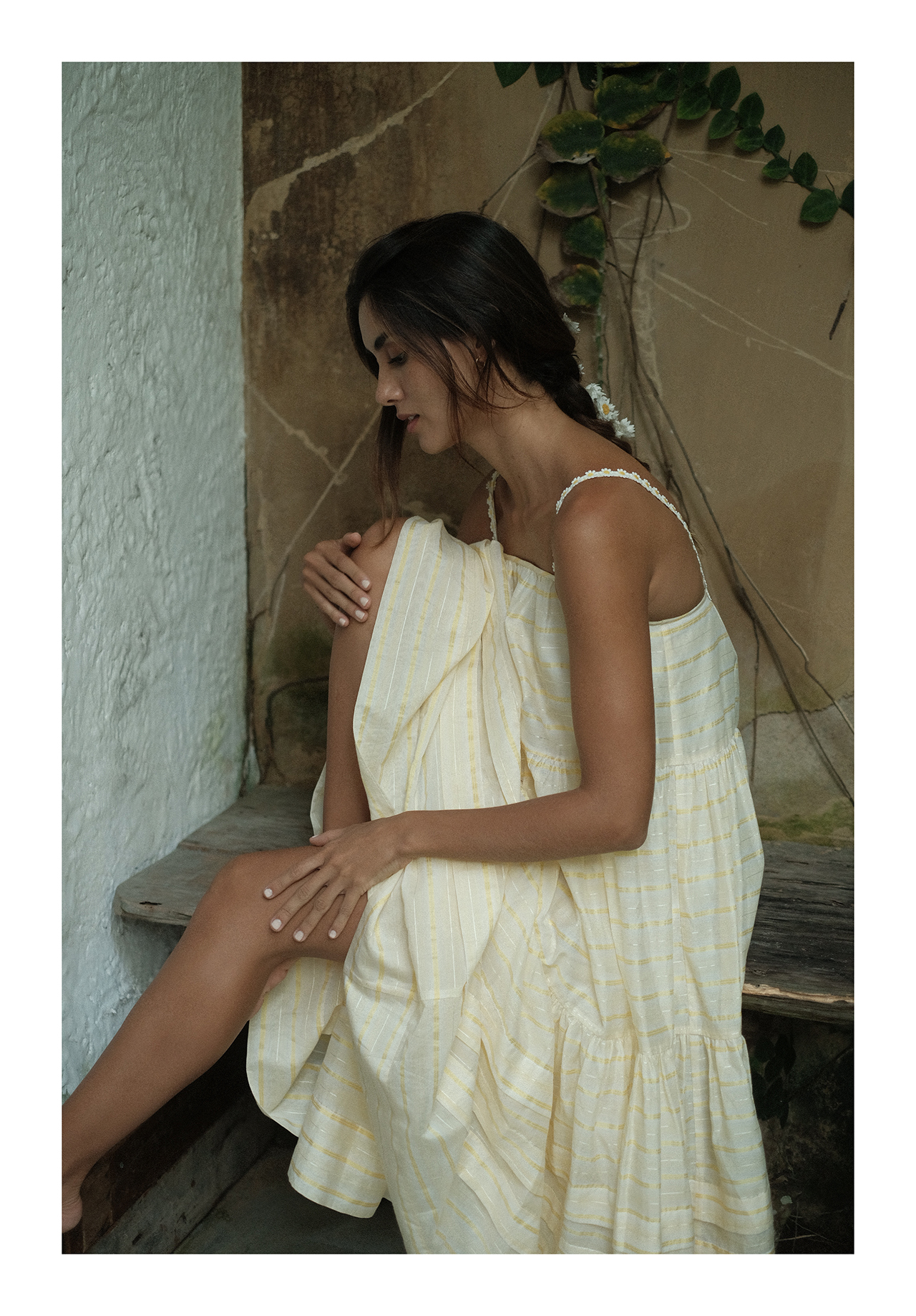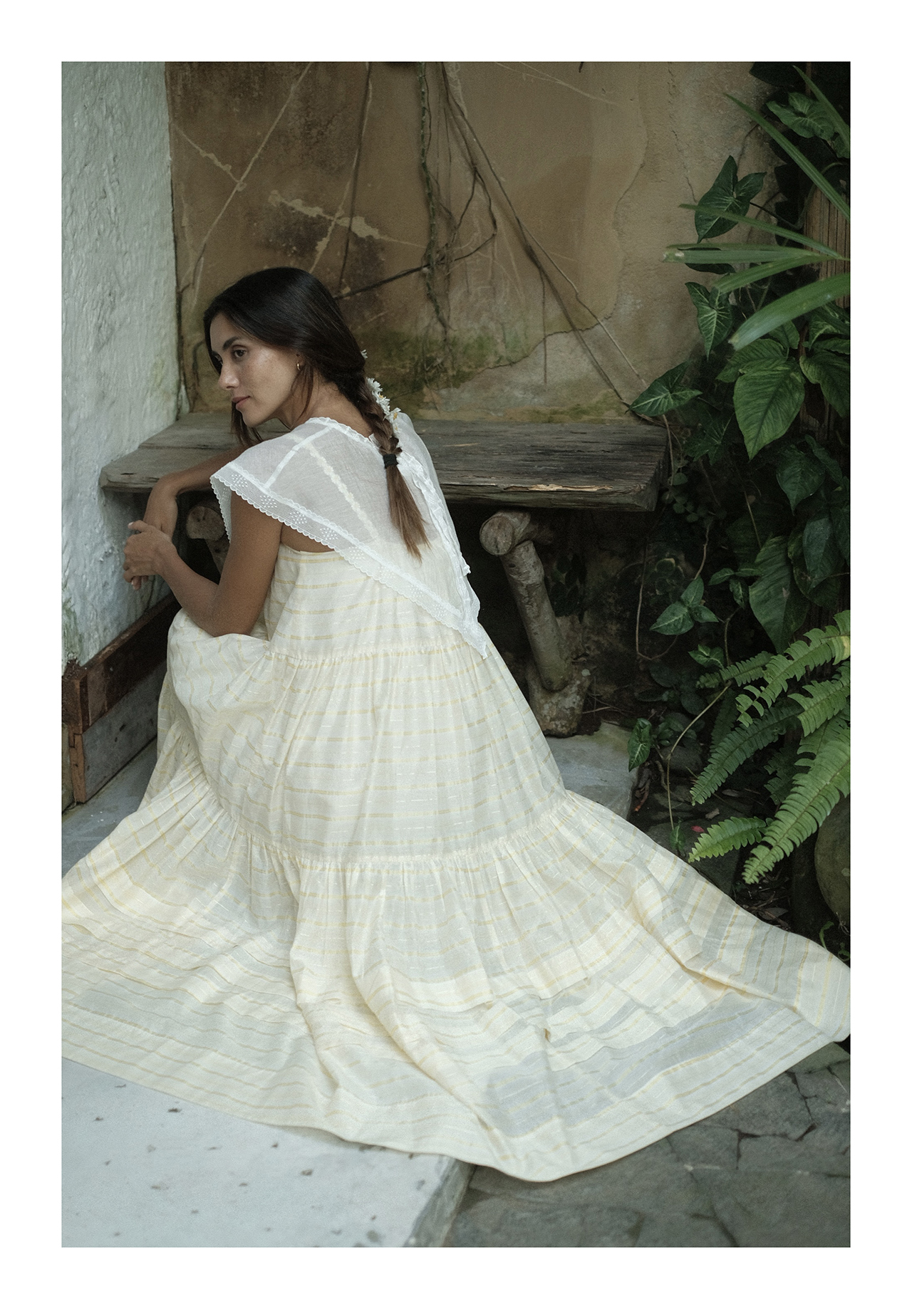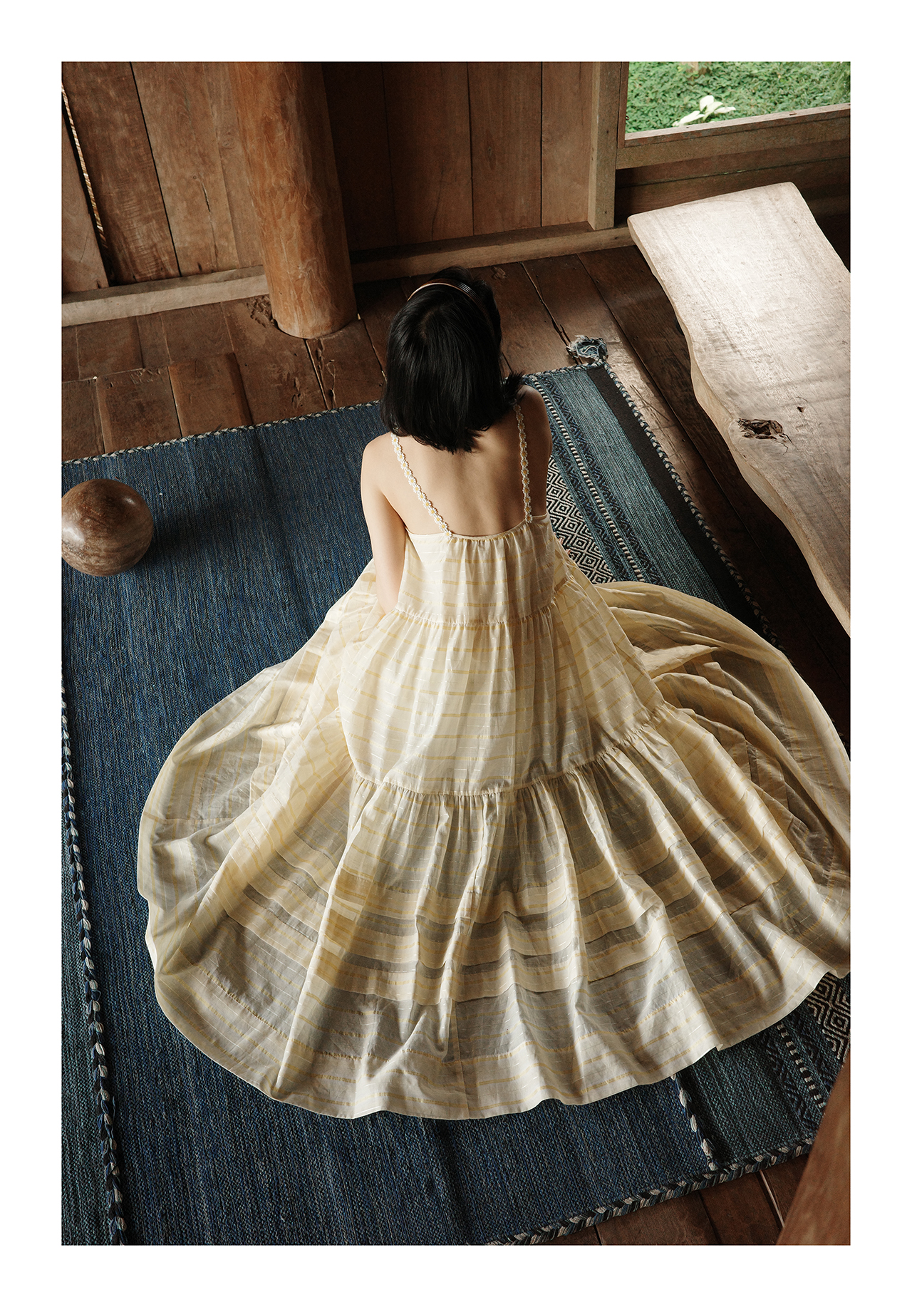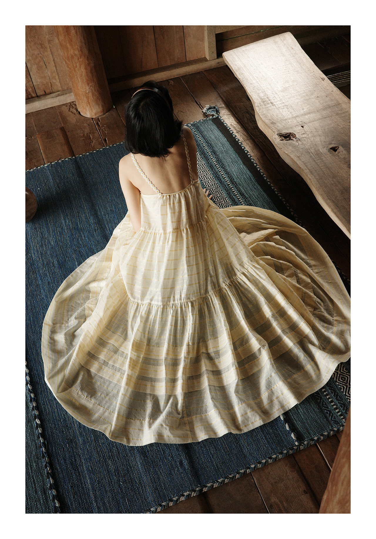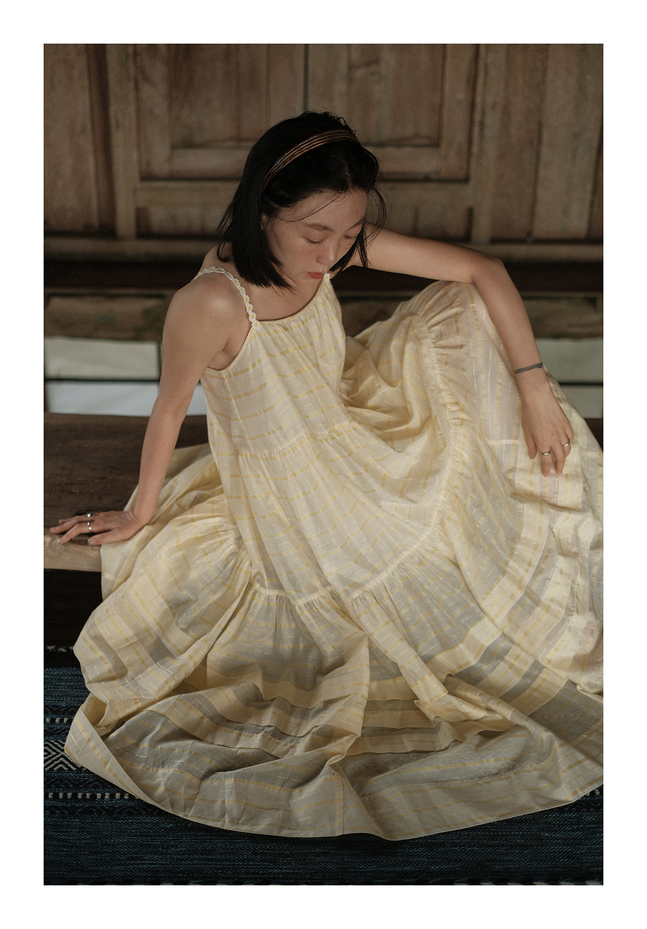 “小雏菊”真丝棉色织-超大幅摆裙