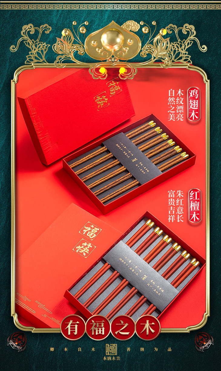 BN-新款筷子家庭定制防霉防滑实木筷(10双装)