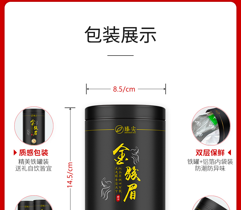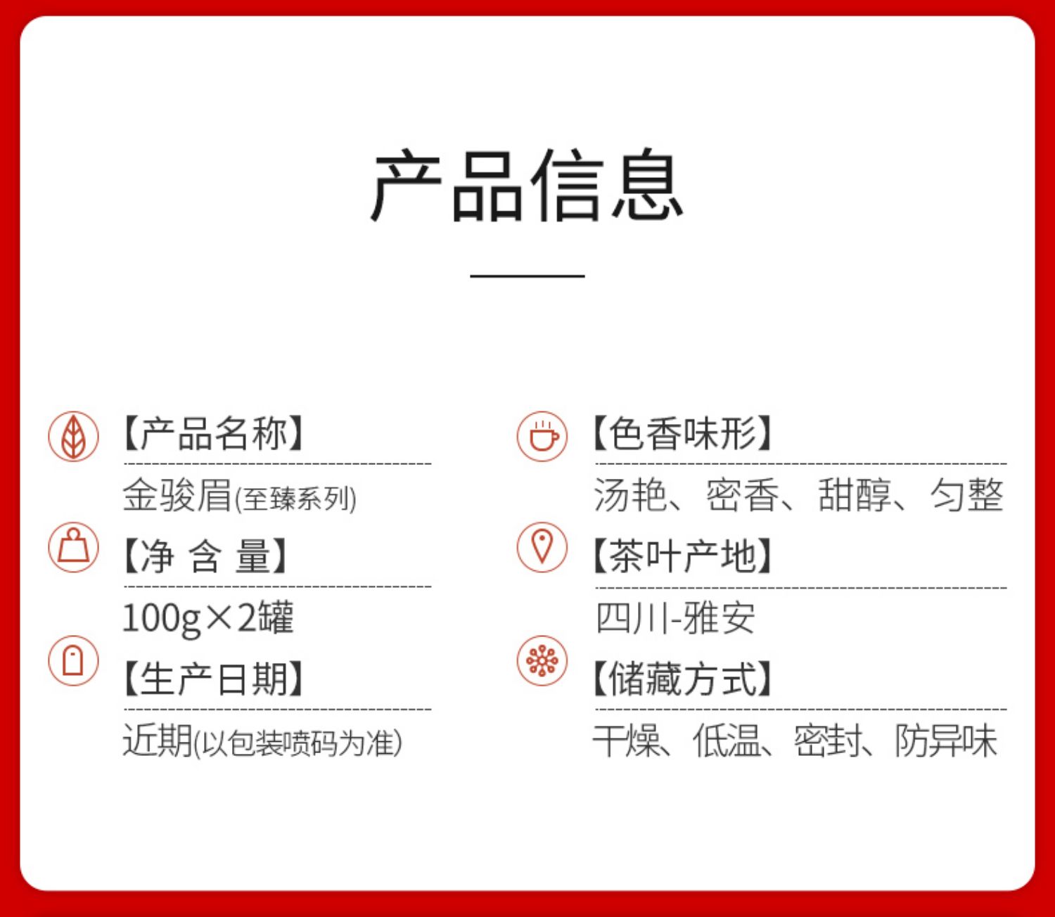 【臻尖-金骏眉至臻】 新茶金骏眉红茶 特级正宗散装茶叶100g*2罐