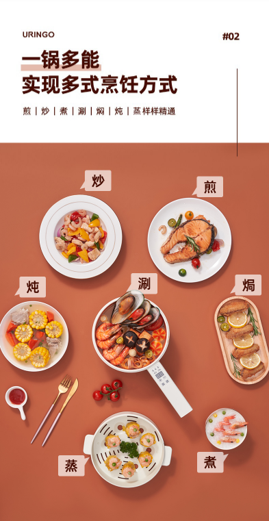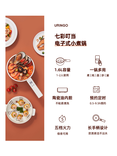 七彩叮当电煮锅SD01宿舍学生2L家用多功能电热火锅