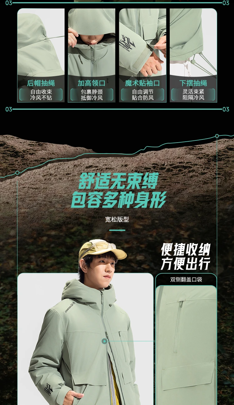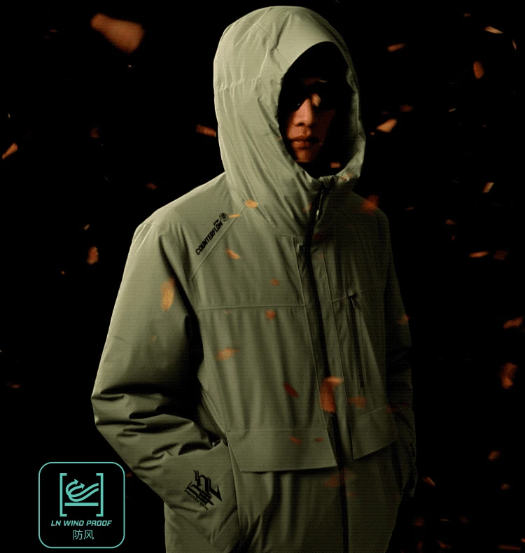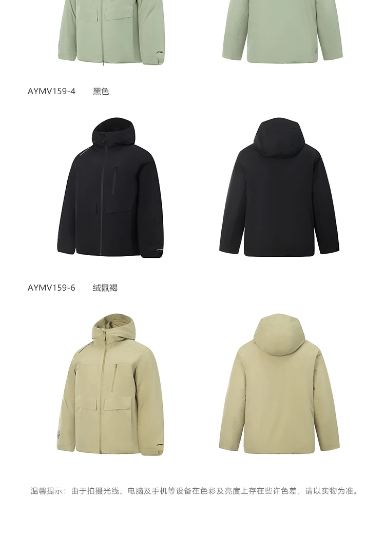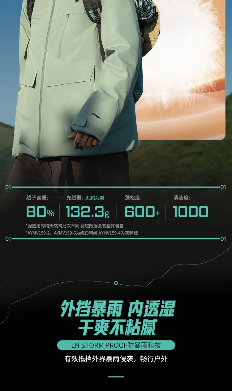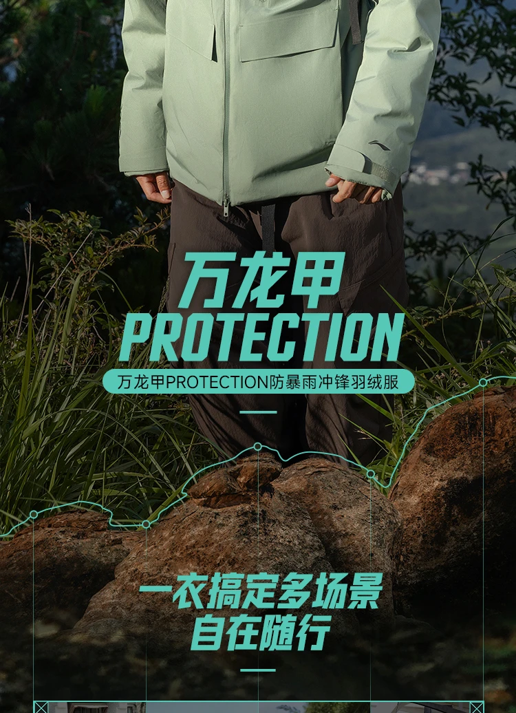 李宁户外CF溯万龙甲冲锋羽绒服黑龘男子反光防风防泼水宽松鸭绒冲锋羽绒服AYMV159