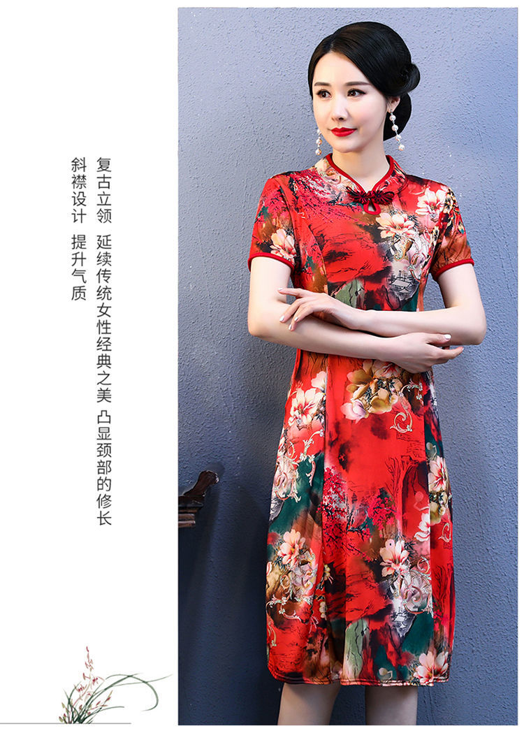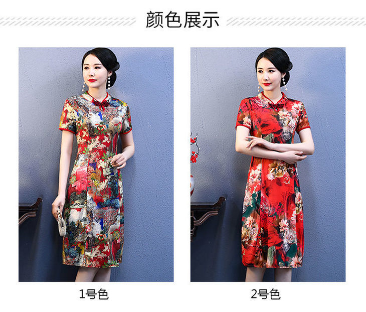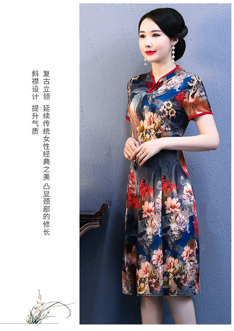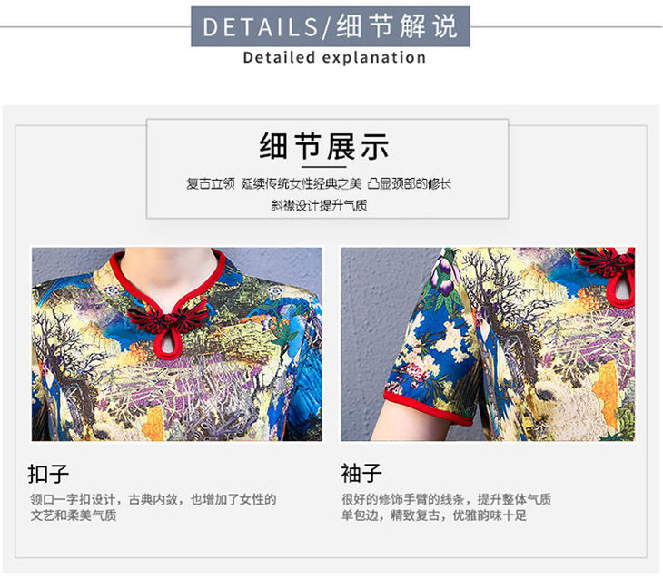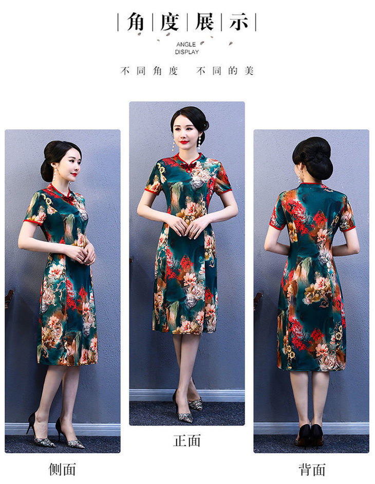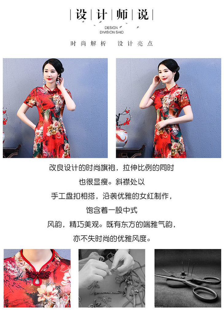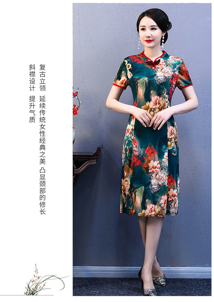 JXG-新款妈妈女装改良旗袍无开衩短袖礼服女连衣裙中老年复古洋气夏装