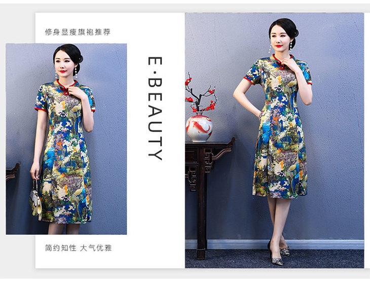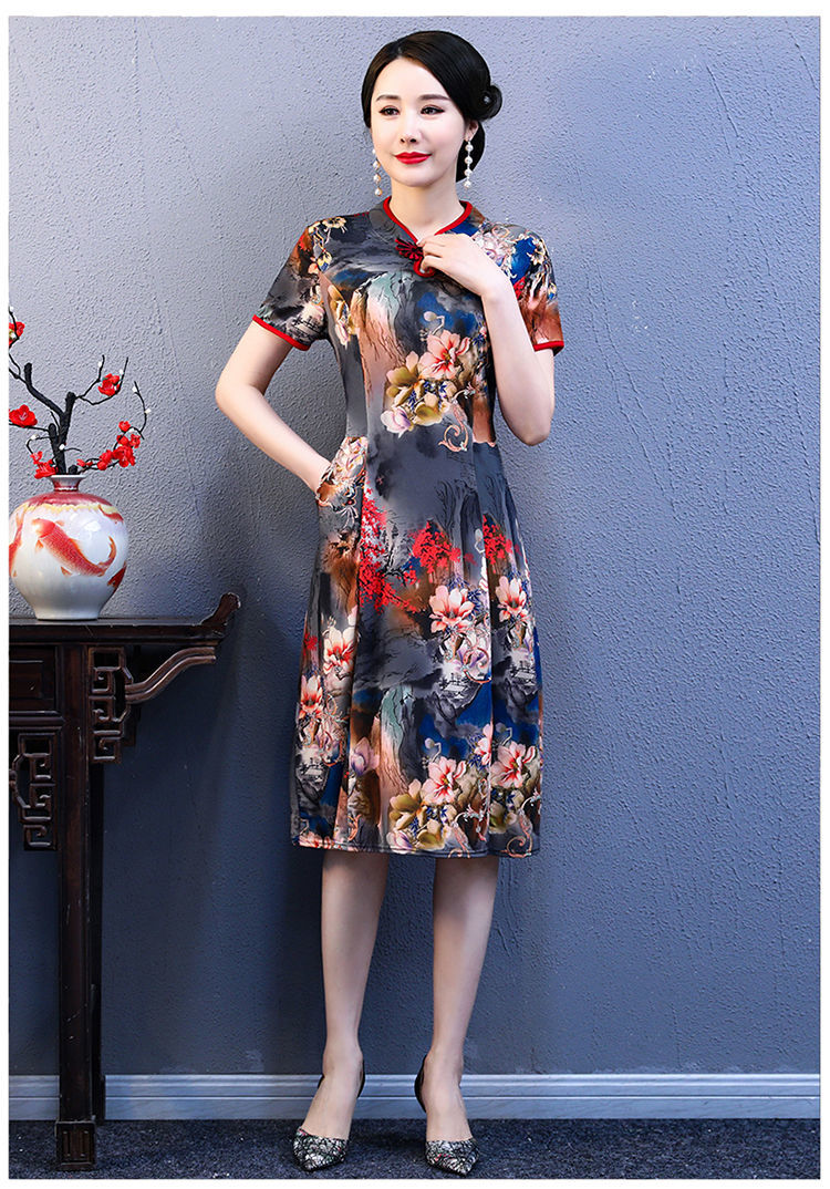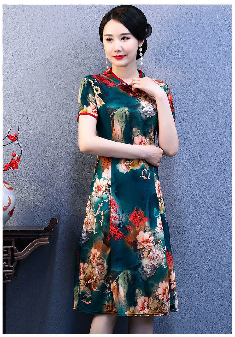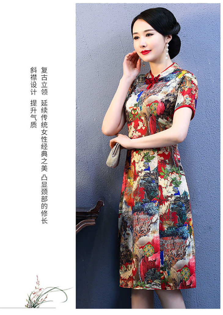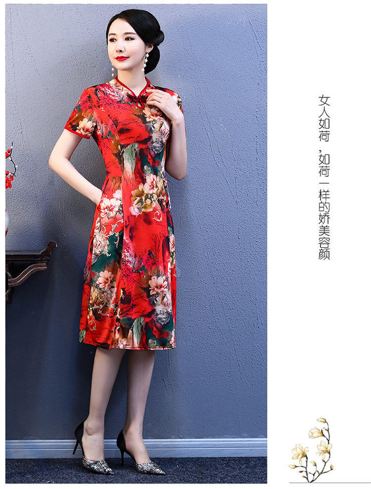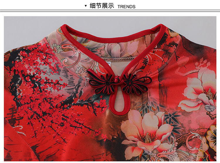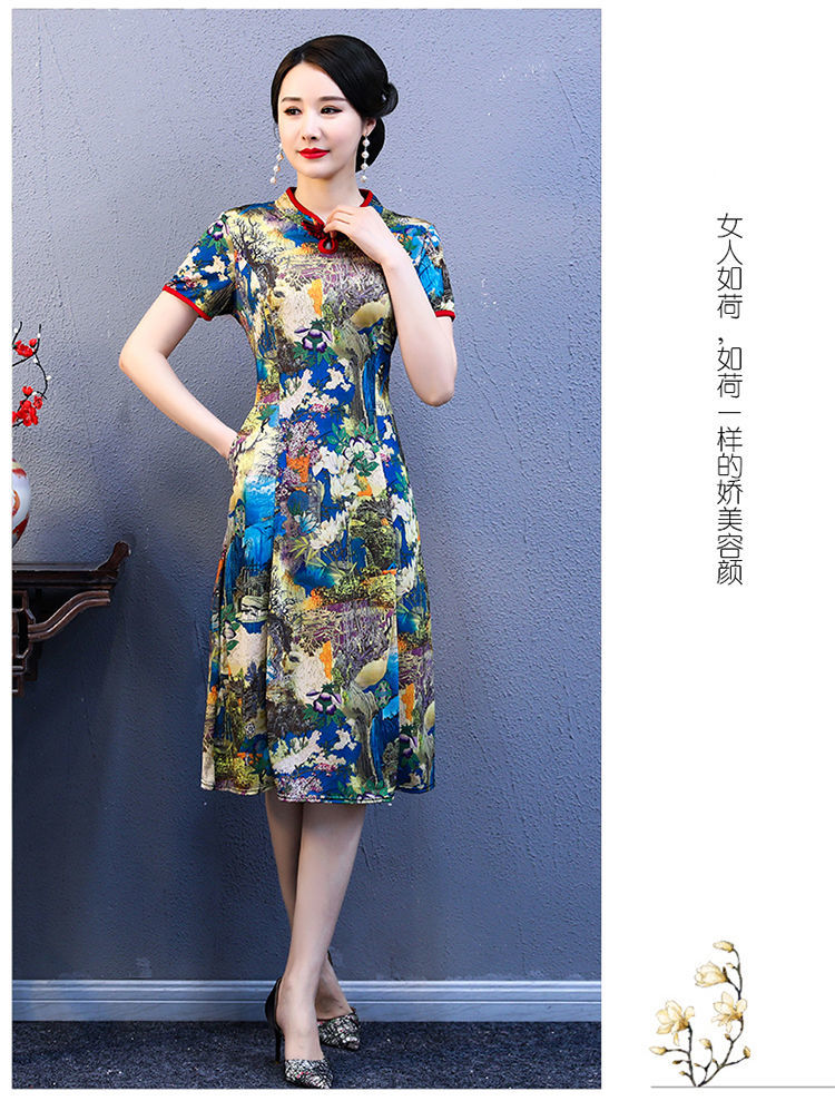 JXG-新款妈妈女装改良旗袍无开衩短袖礼服女连衣裙中老年复古洋气夏装